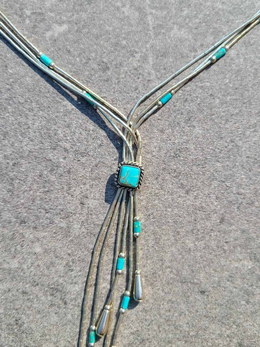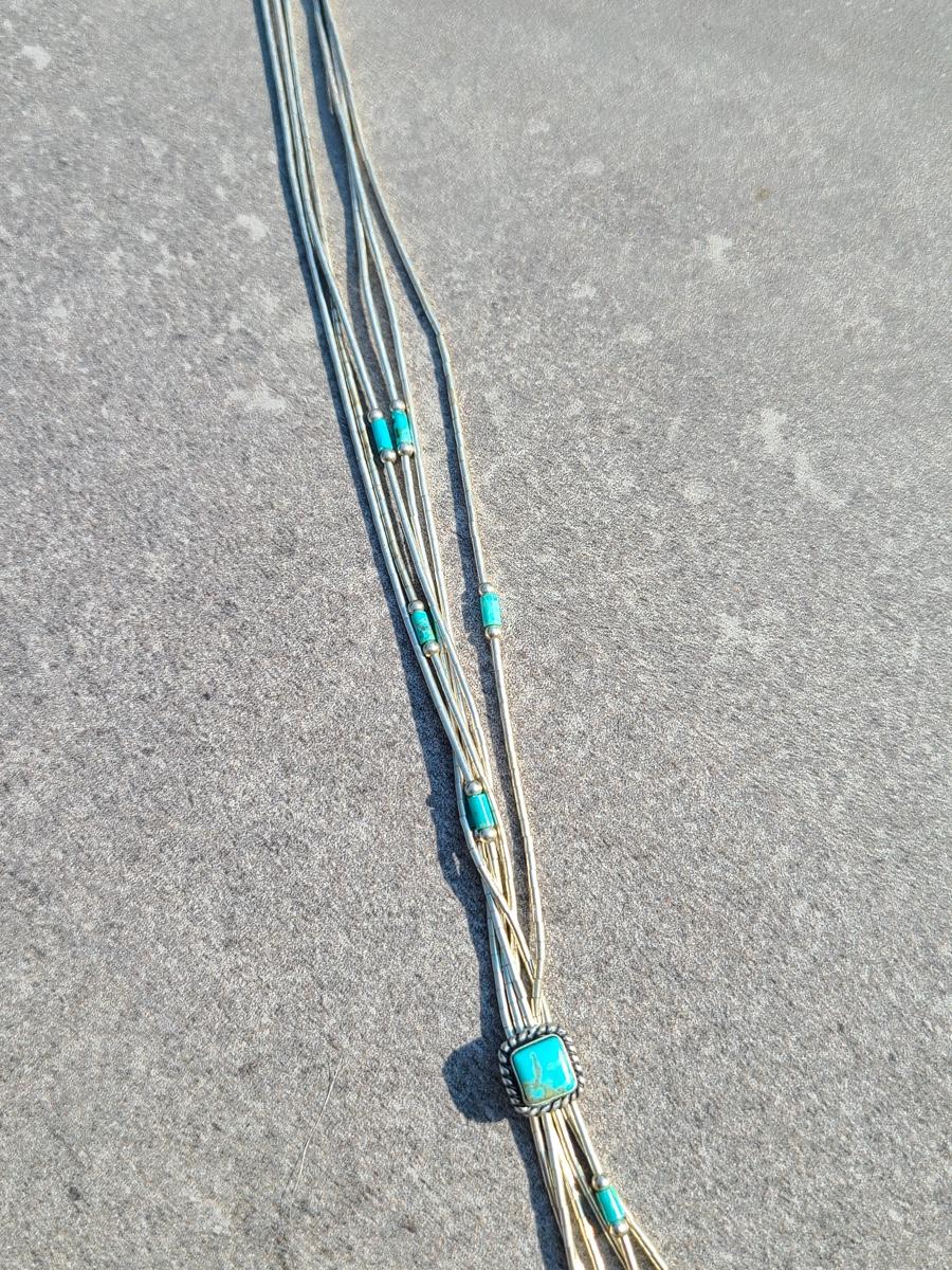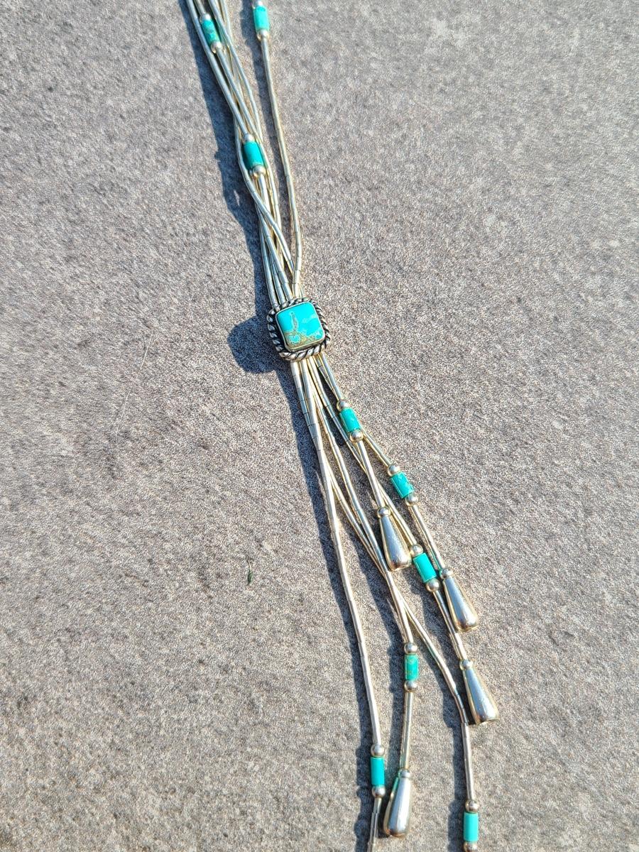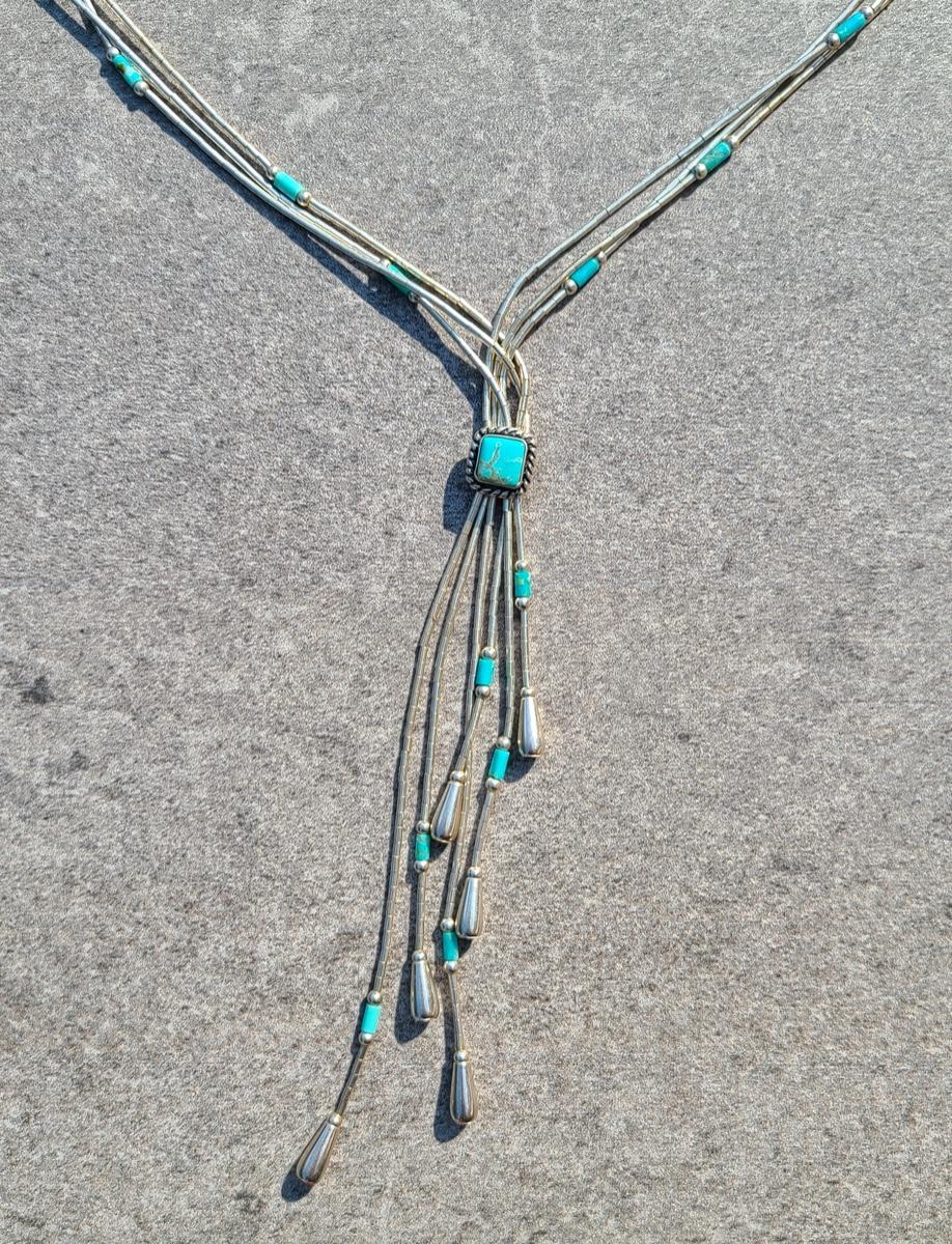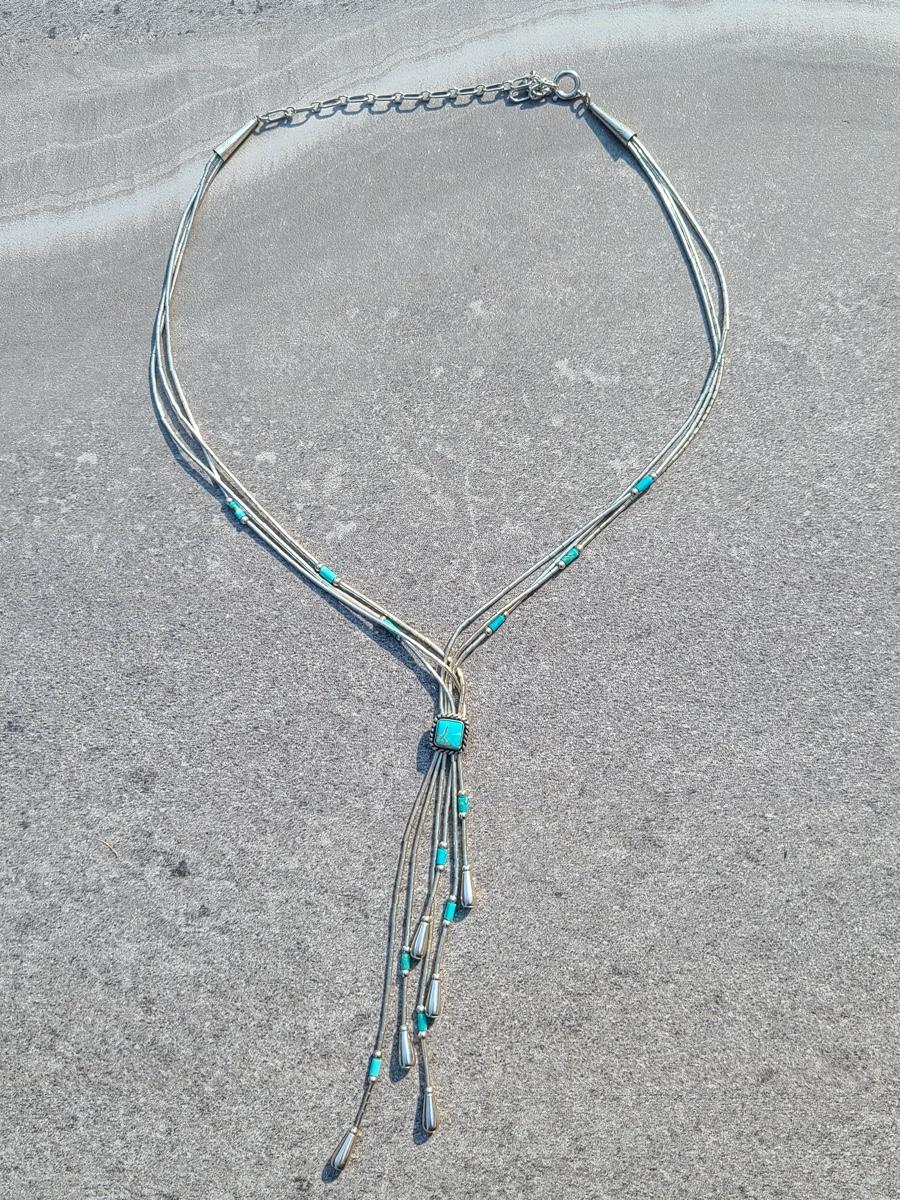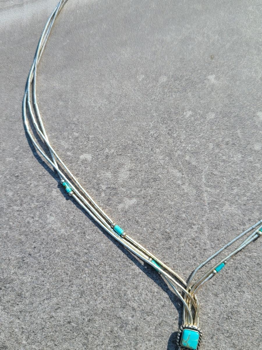 Lot J11: Vintage "Liquid Silver" Sterling Necklace w/Turquoise