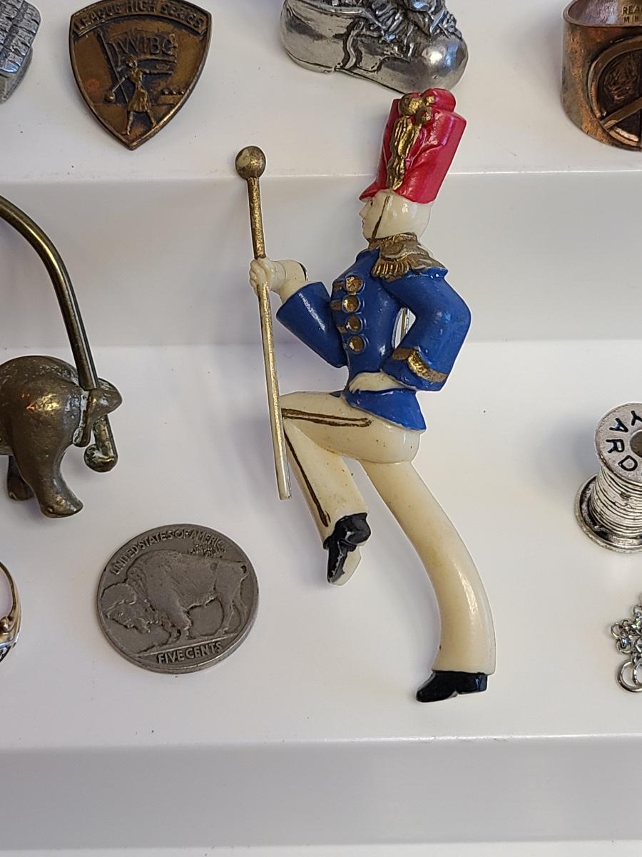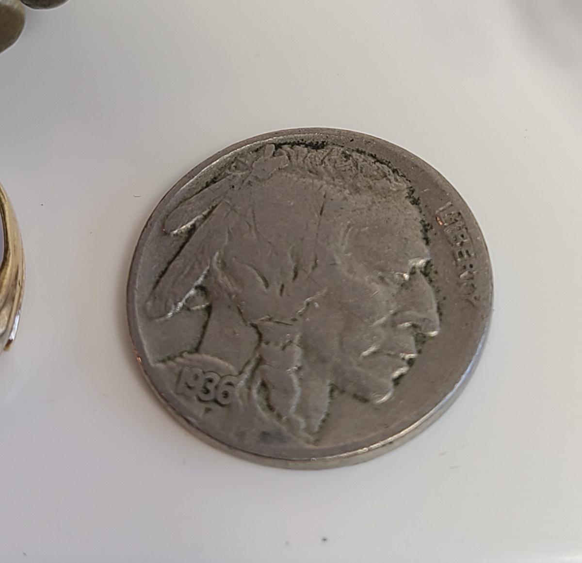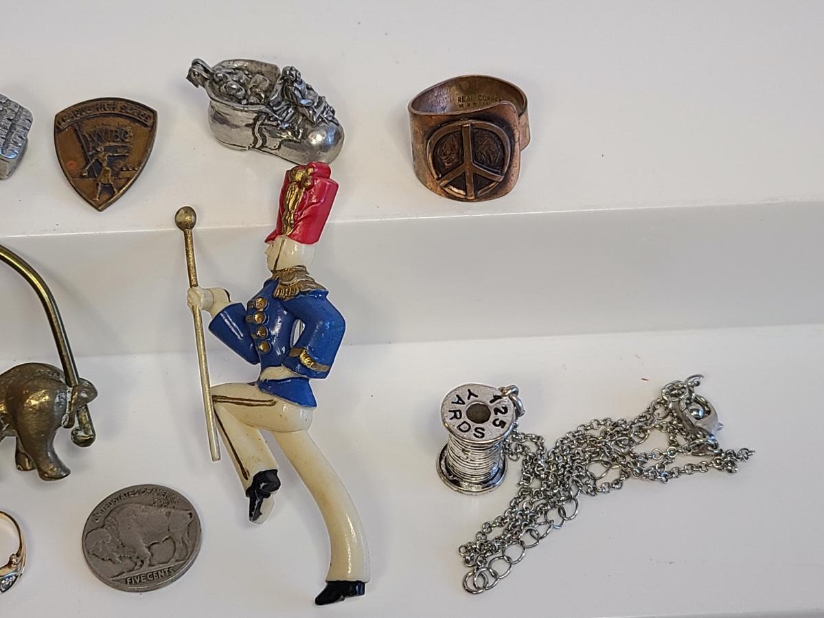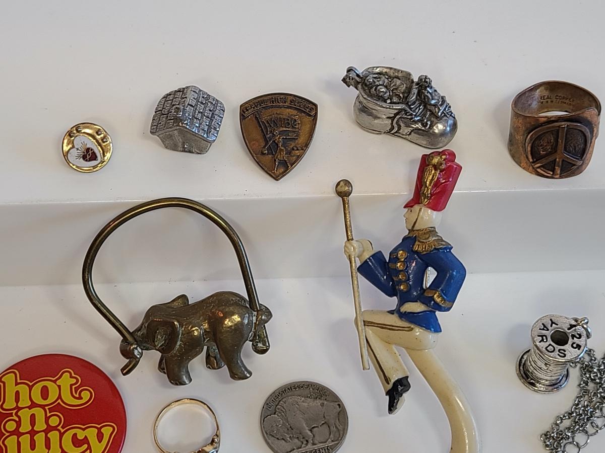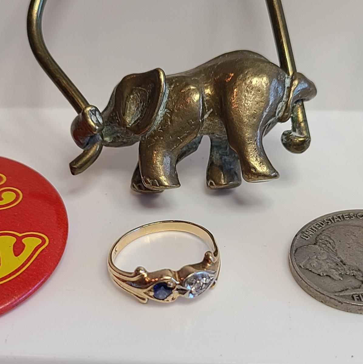Lot J12: Brass Elephant France Lock, 14k Baby Ring, Buffalo Nickel & More