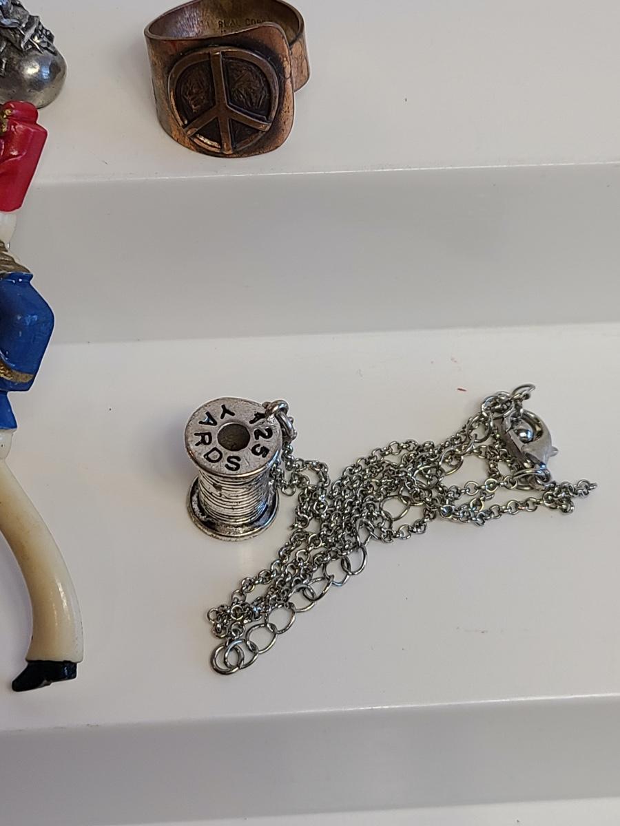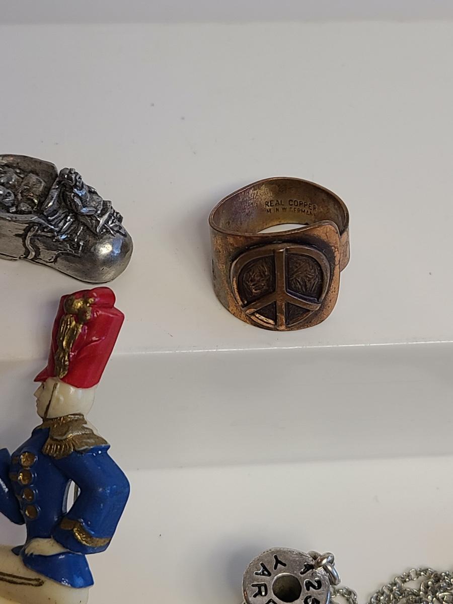 Fun lot of jewelry box finds: brass, France, elephant lock, copper vintage peace ring, thread costume pendant, hot n juicy button, buffalo nicker, and baby 14kt gold ring with diamond and sapphire chip (tiny ring) and more. Please see all pictures as they are the best representation of the items. The pictures show condition, measurements if taken, and what is included in the lot. Due to the large amount that we photograph and the time frame, we are not always able to take measurements. All items unless noted, are pre-owned and have been used. If you purchased furniture, you must bring help. We do not allow one person to carry large furniture out on their own. Any damage to the walls, floors, or property is the buyers responsibility to fix, and the damage will be noted and you will charged for repairs, your bidding constitutes your understanding of these terms. Bring help, tools and a truck for the safety of our client’s homes, and your personal safety. Company policy. Thank you.