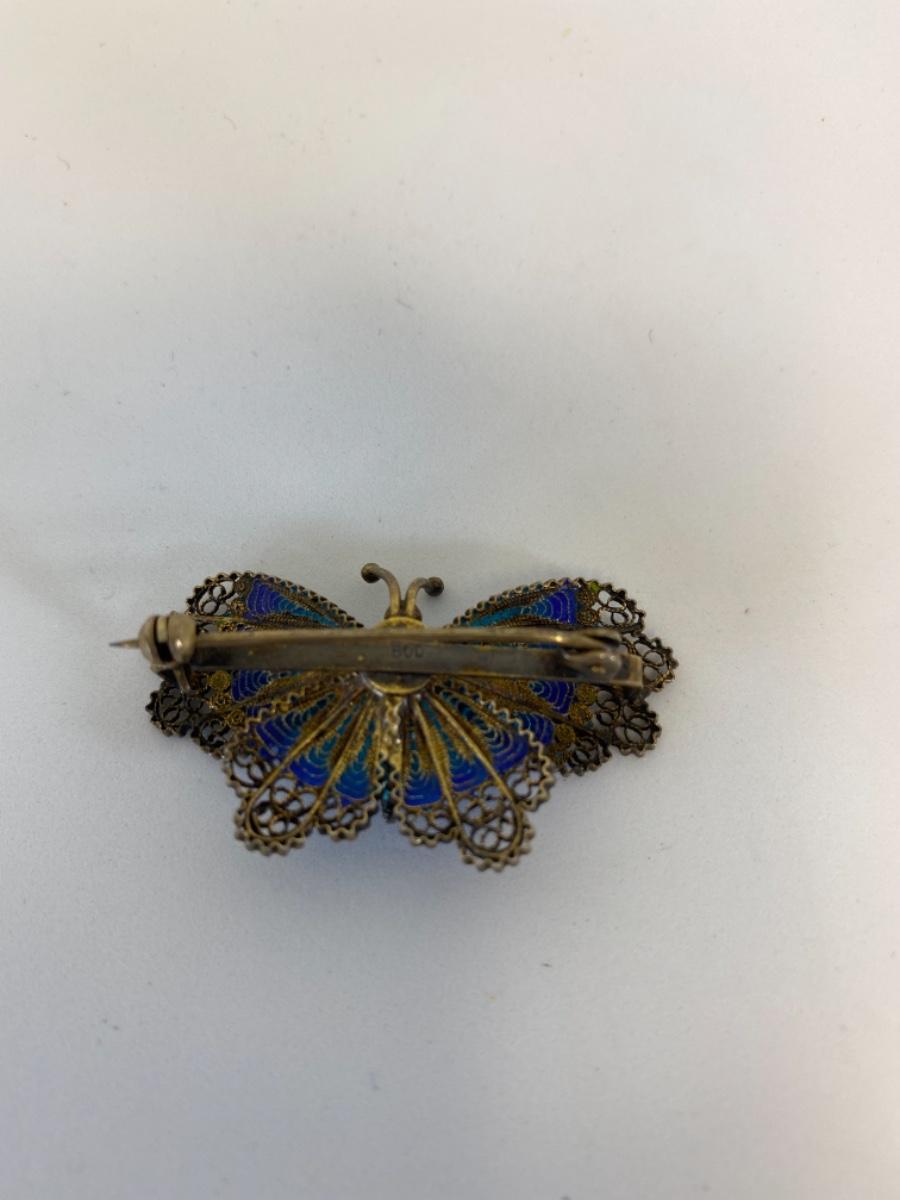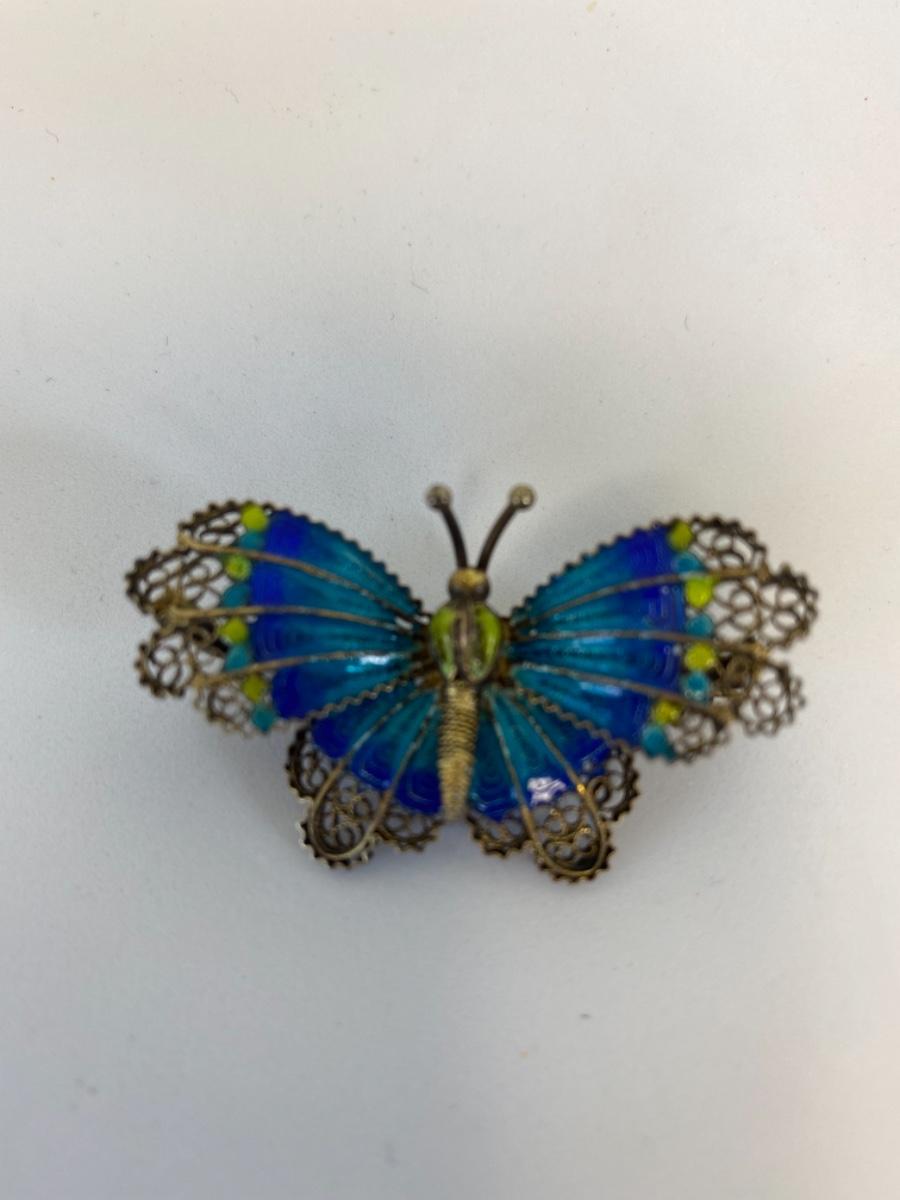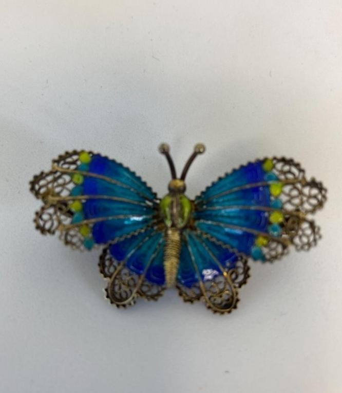 Lot J12 - Silver enameled fillagree Butterfly brooch. 1 3/4” wide