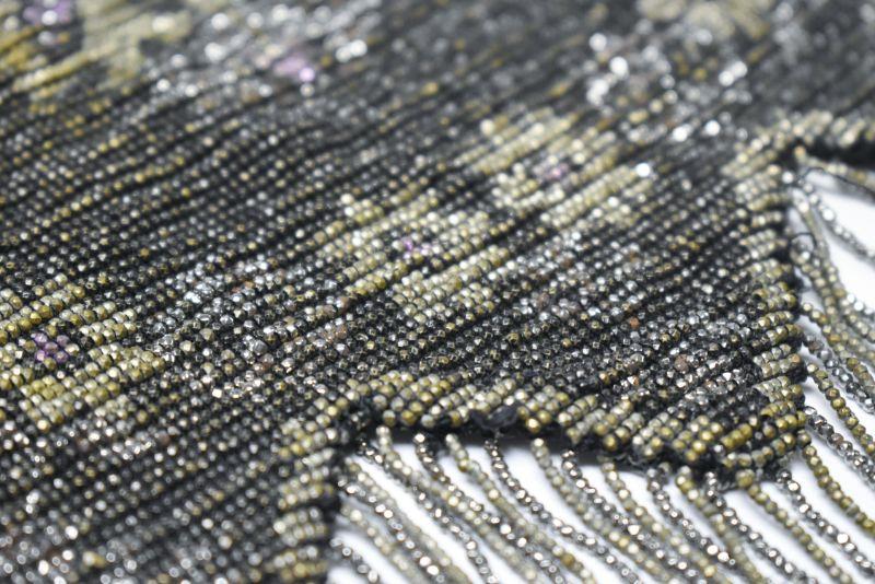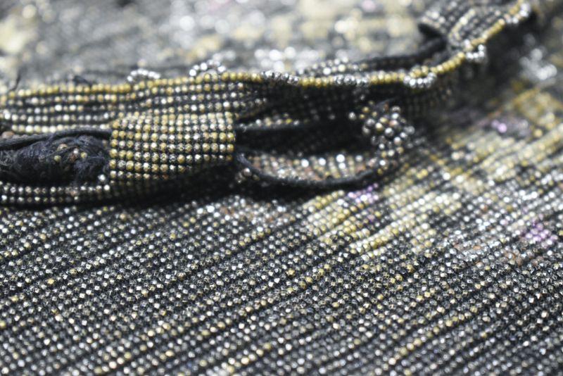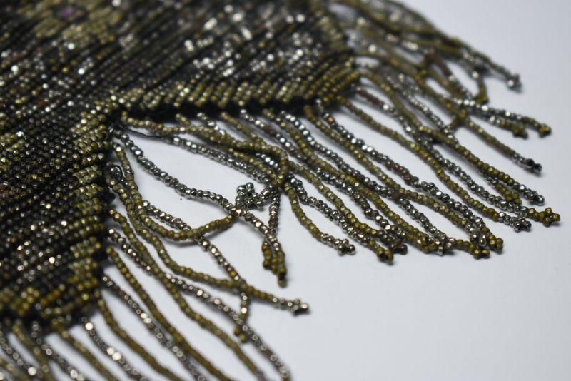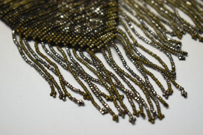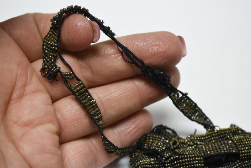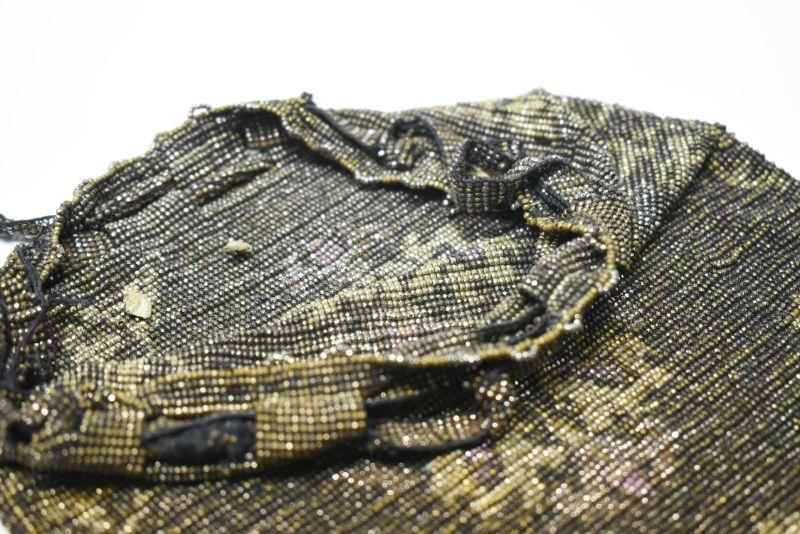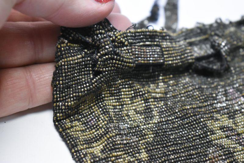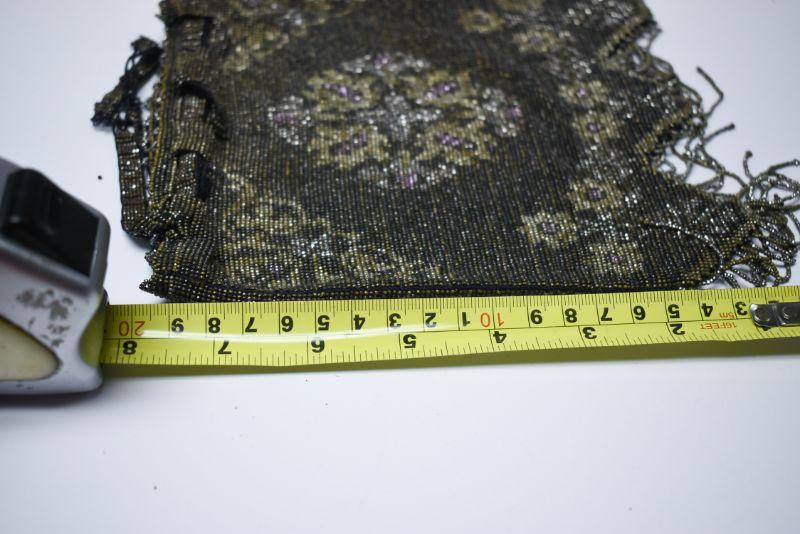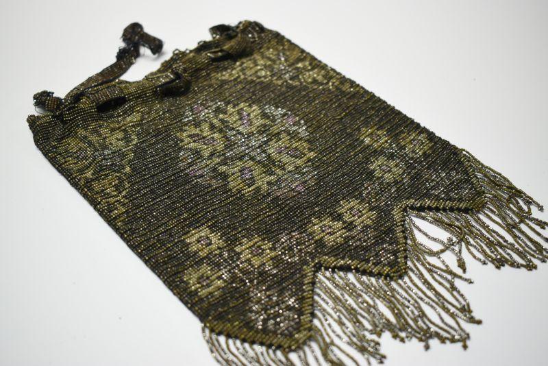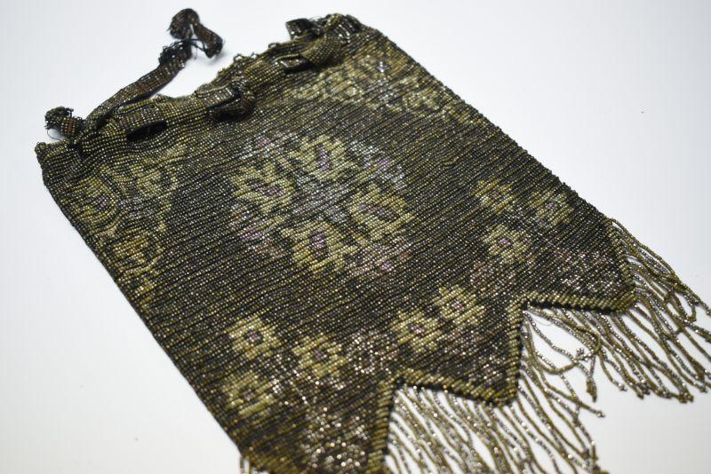 Lot J-14: Antique Microbeaded Fringed Drawstring Bag