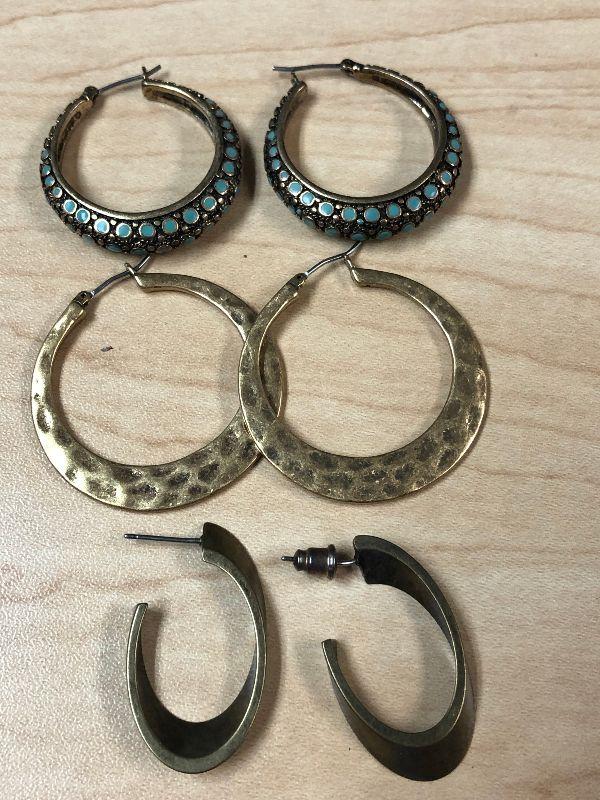 Lot J14: Lot of 3 Pair Brass-tone Earings