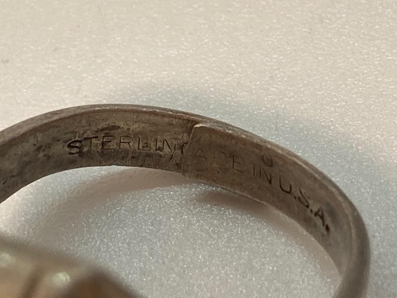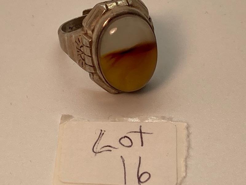 Lot J-16 Vintage Two Tone Agate Ring Sterling Silver