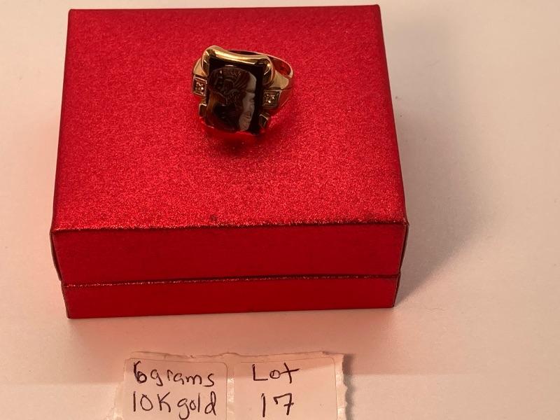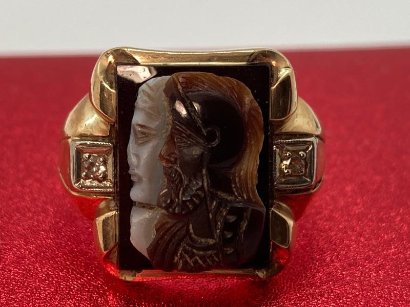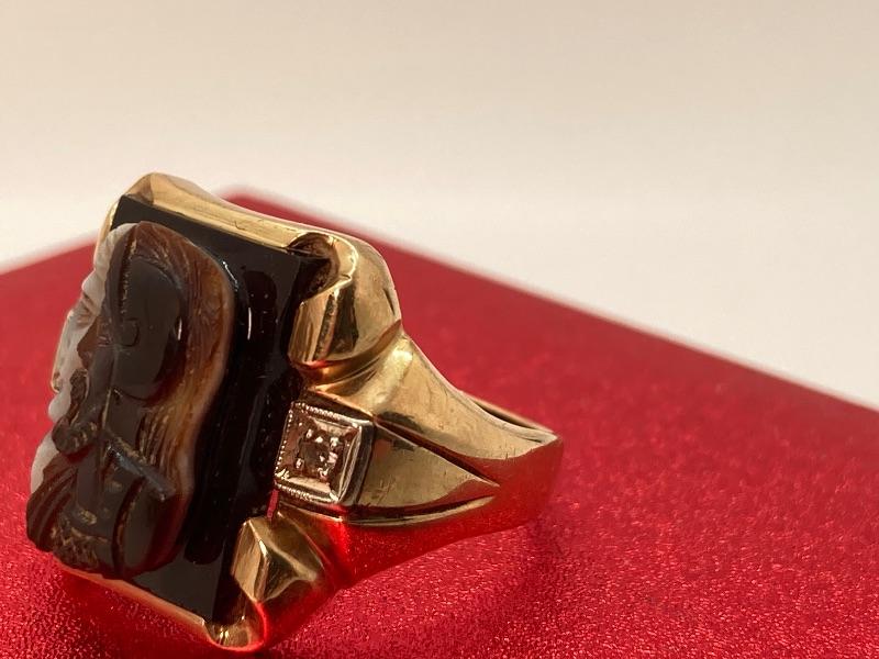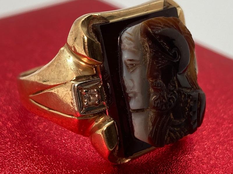 Lot J-17 10k gold Diamond cameo ring two-faced Roman Art Deco
