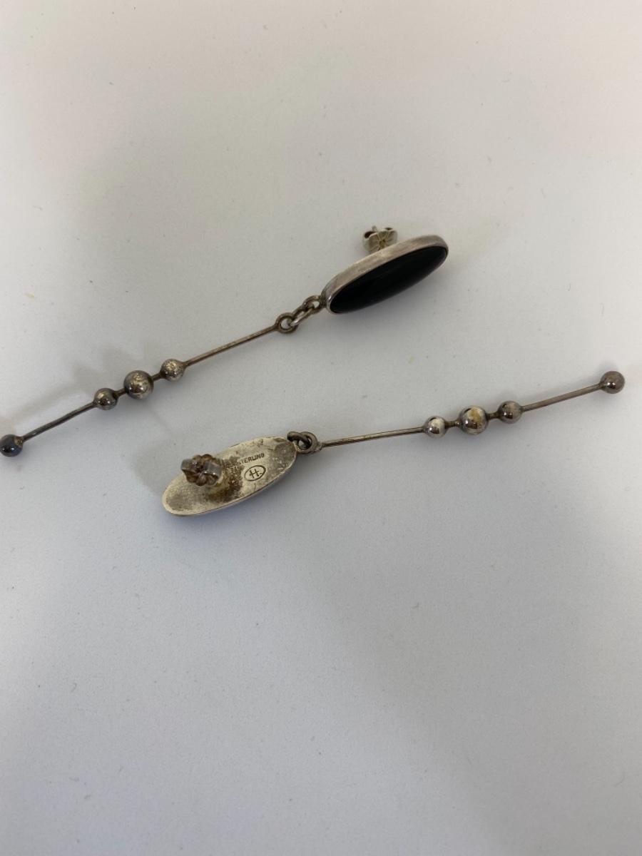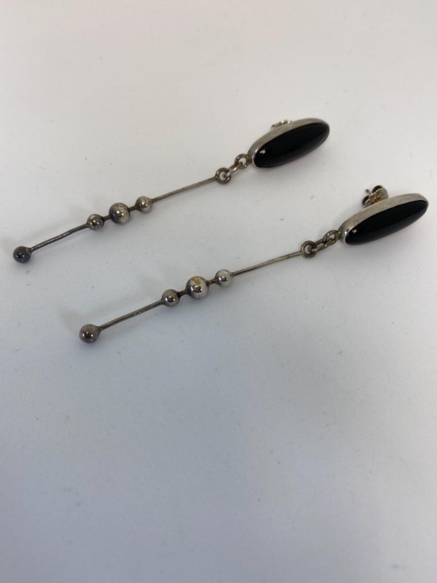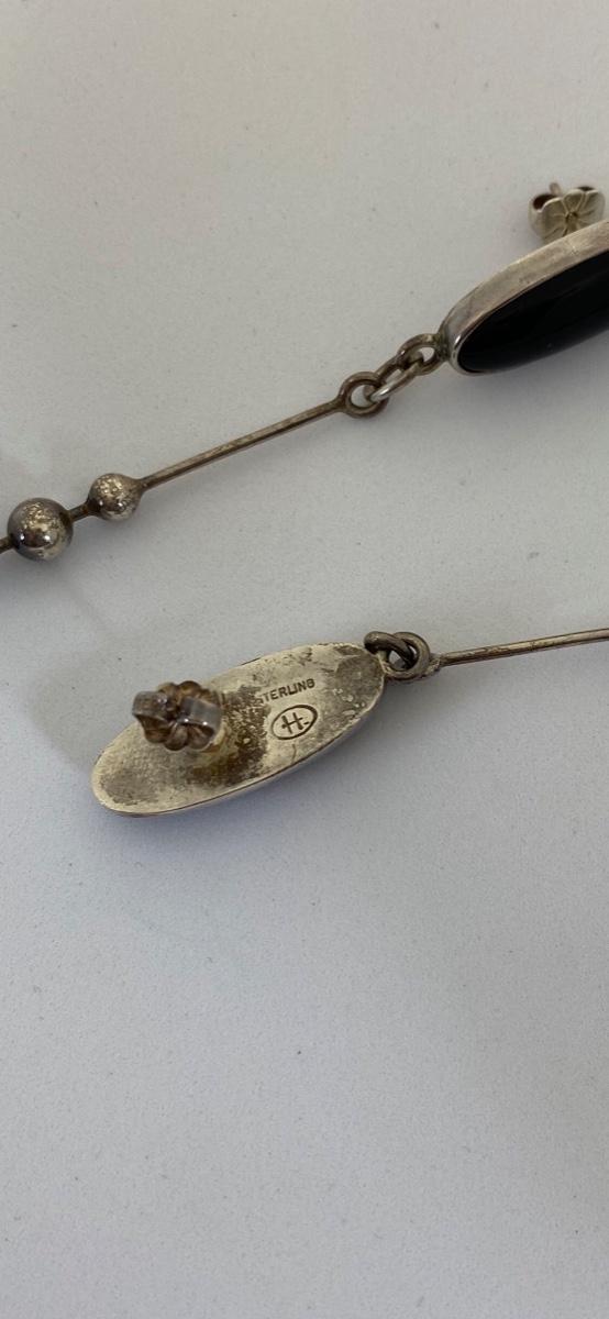Lot J17 - Sterling silver and black onyx pierced dangle earrings