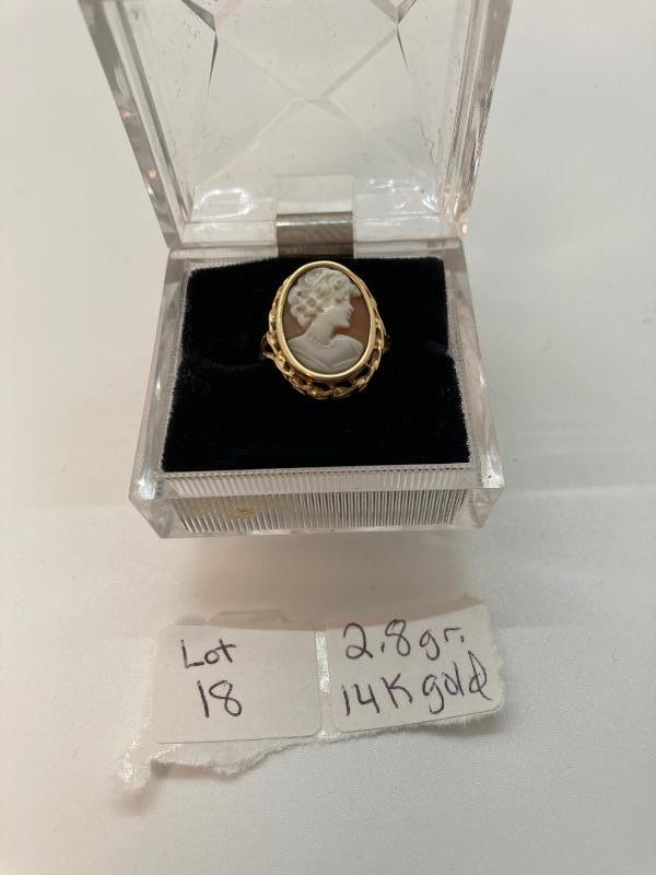 Beautiful Tested 14 karat gold cameo ring. Weighs 2.8 grams.