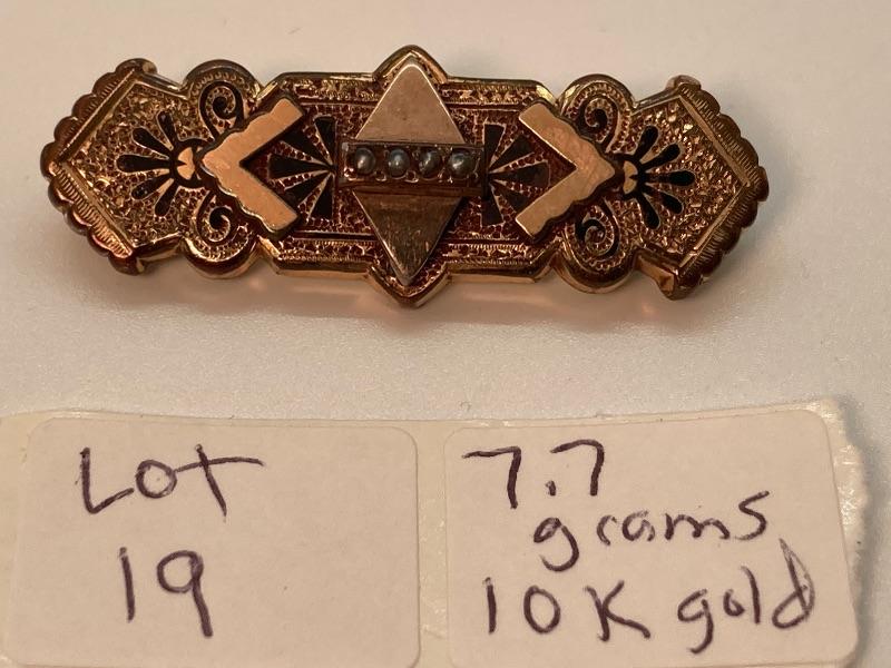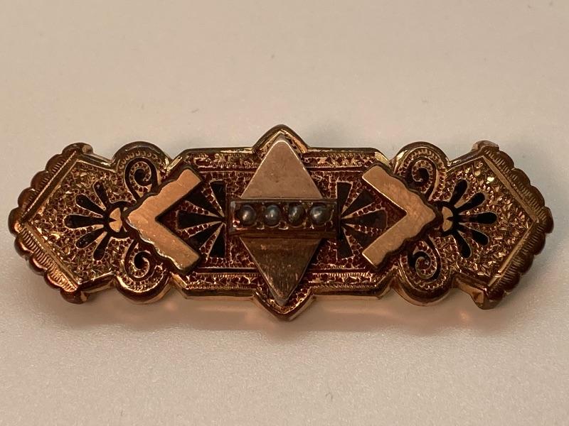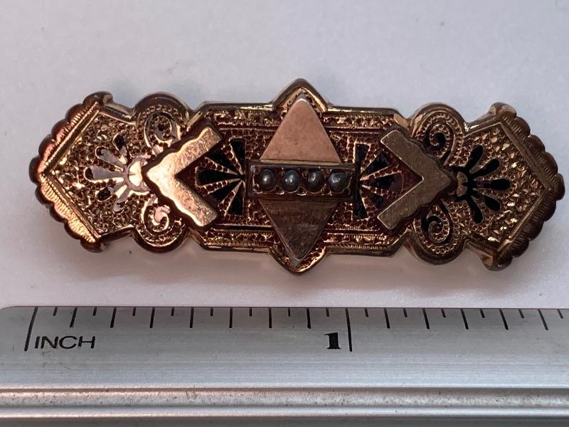 Lot J-19 Antique 10k GOLD Ornate antique bar pin with seed beads
