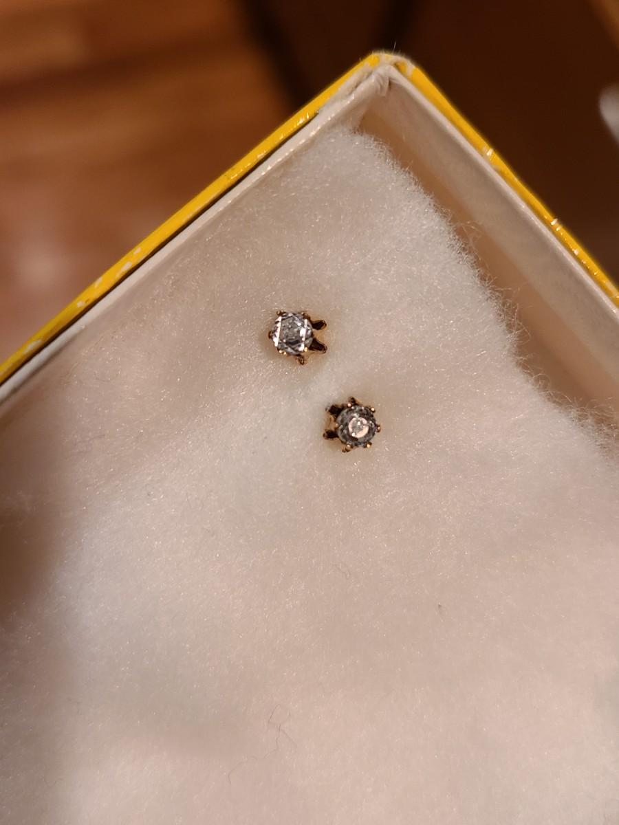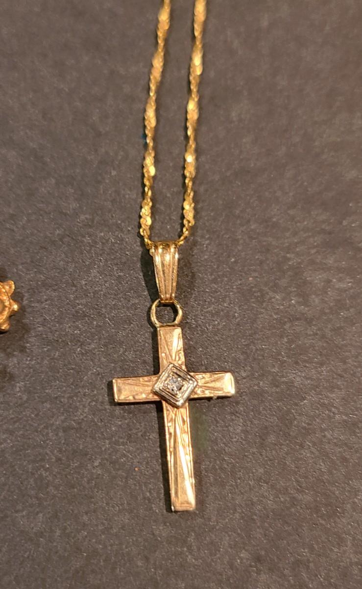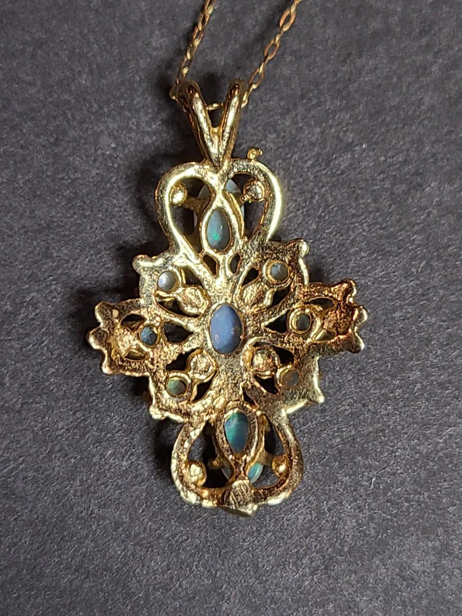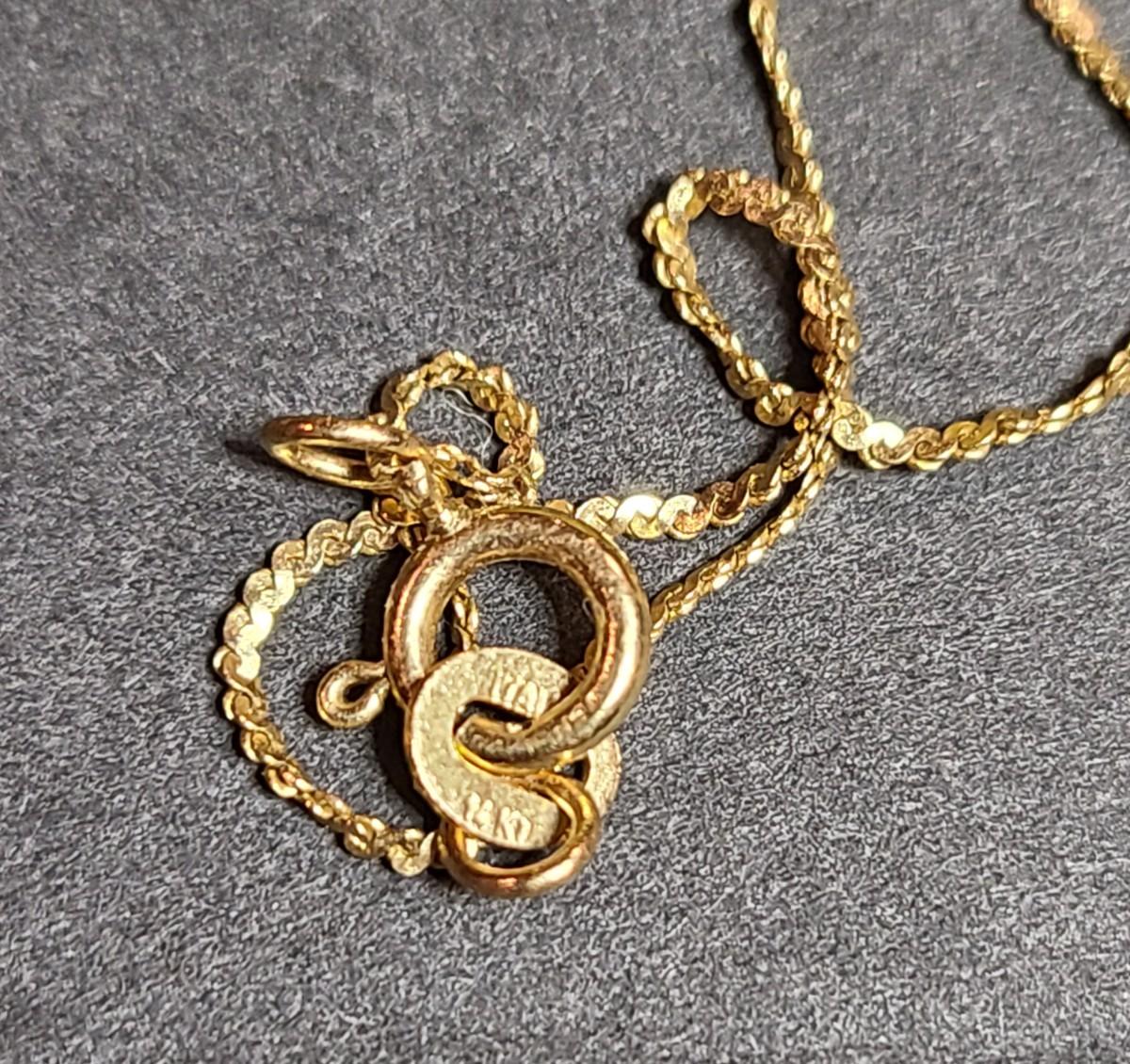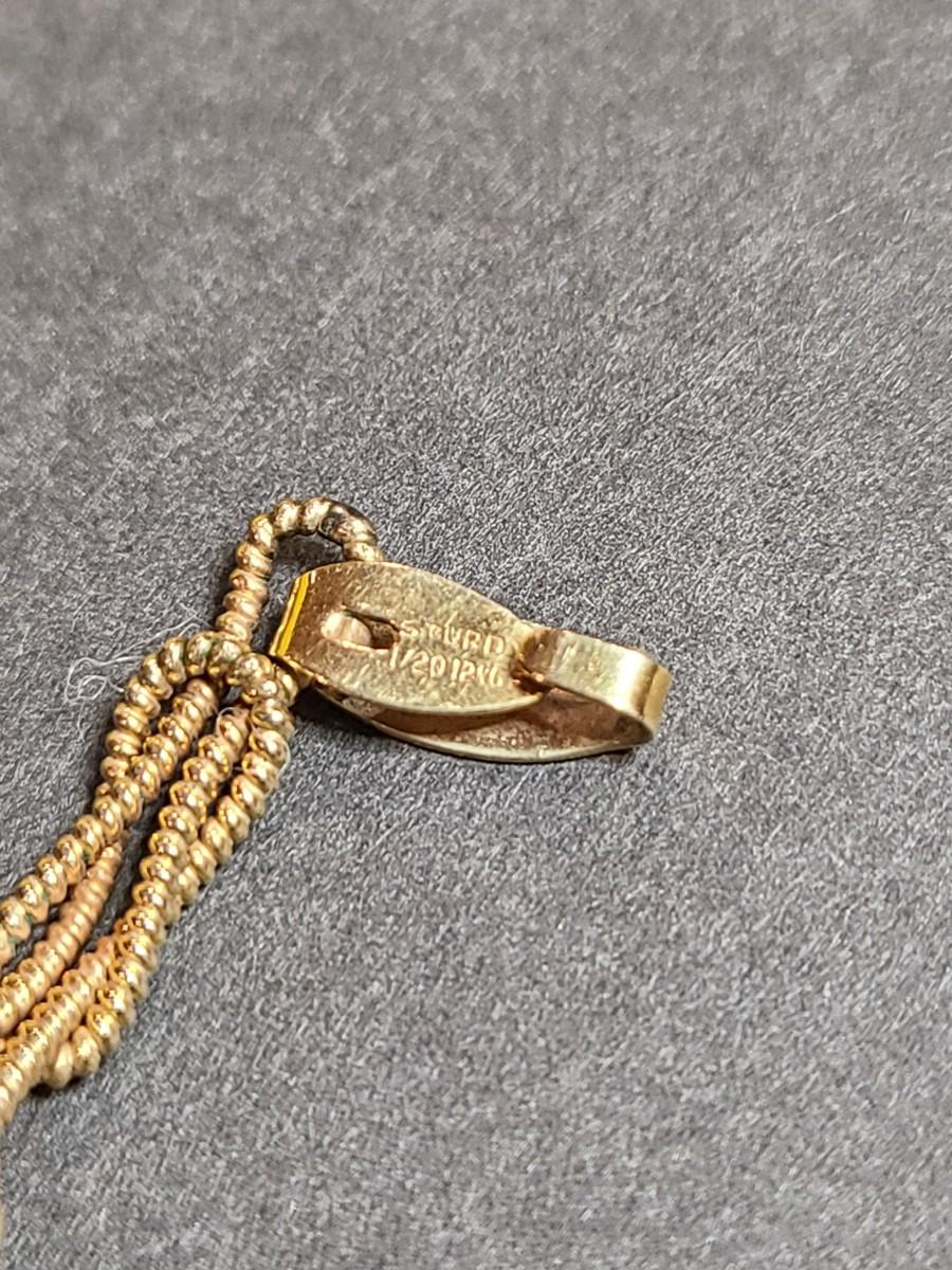 14kt thin delicate gold chains, with unmarked pendants. One is a gorgeous opal pendant with no markings. The vintage bracelet is 1/20 gold filled. The earrings are very small diamond chips. The weight is for everything except the earrings and pendant. Please see all pictures for the content and condition of the items. Lovely lot of delicate jewelry pieces.