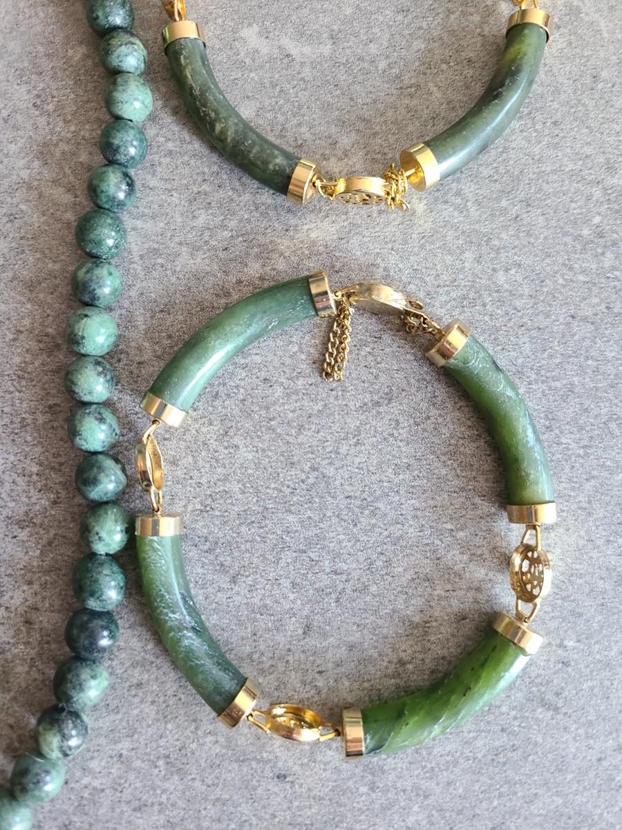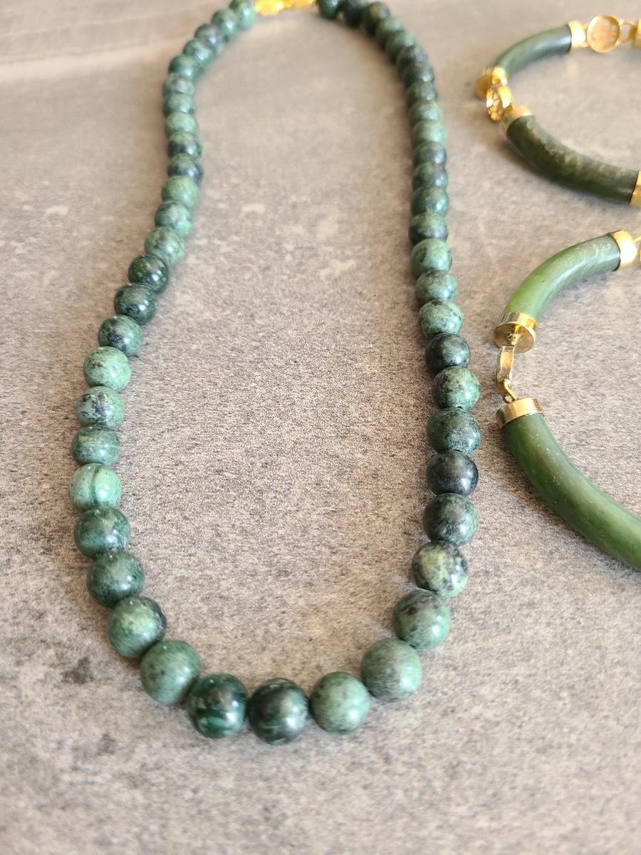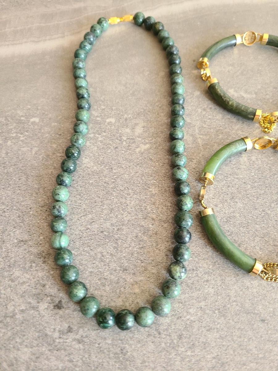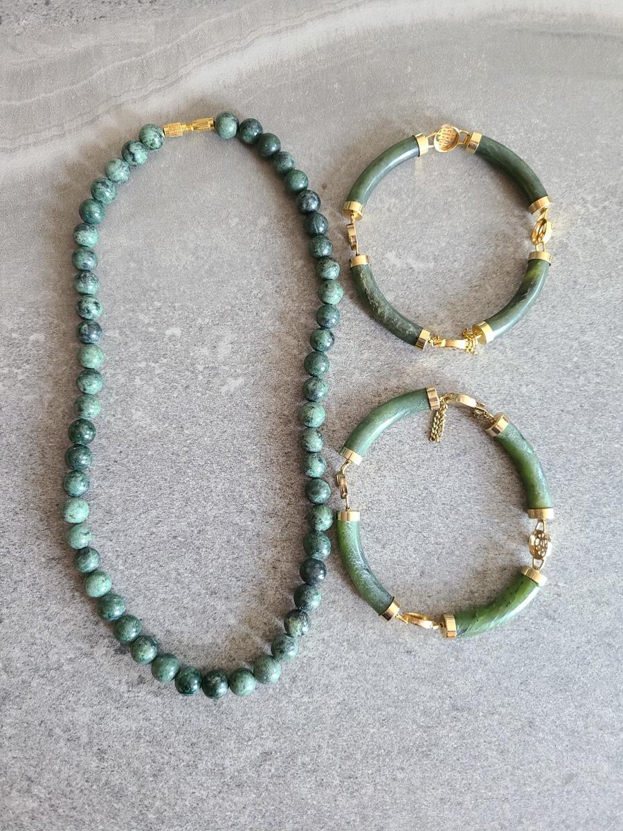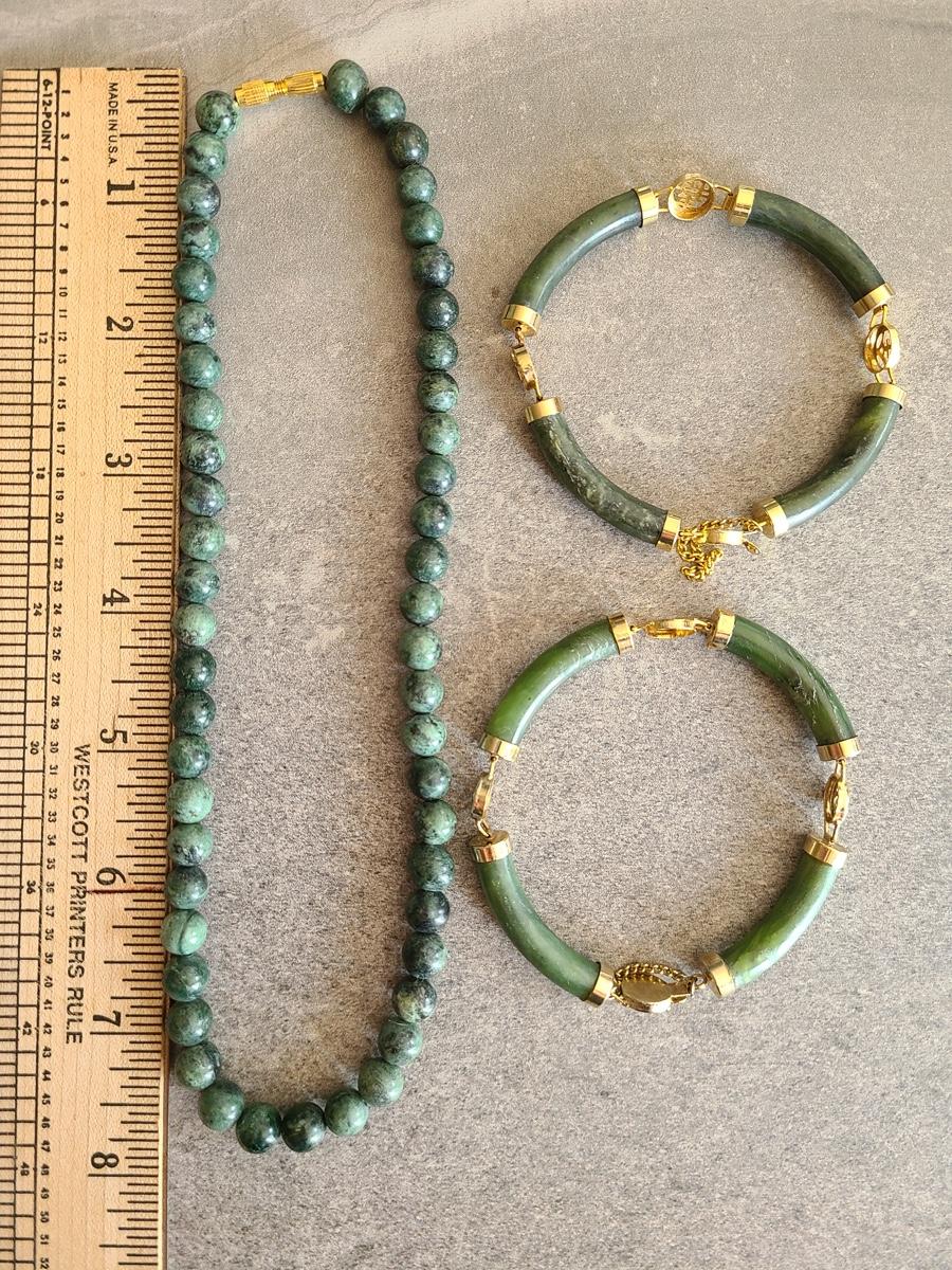 Lot J2: Vintage Dark Jade/Natural Stone Bracelet and Necklace Set