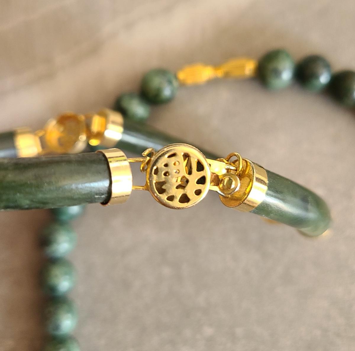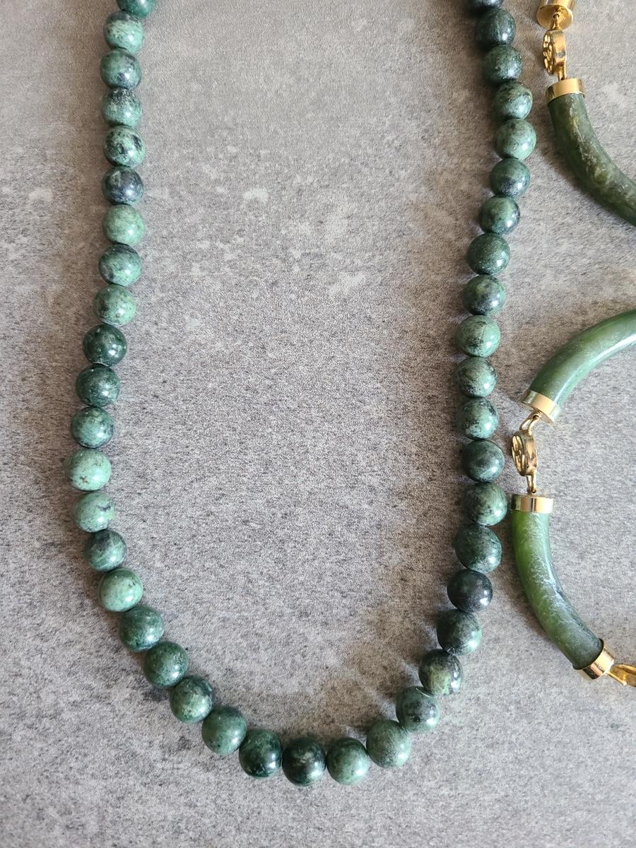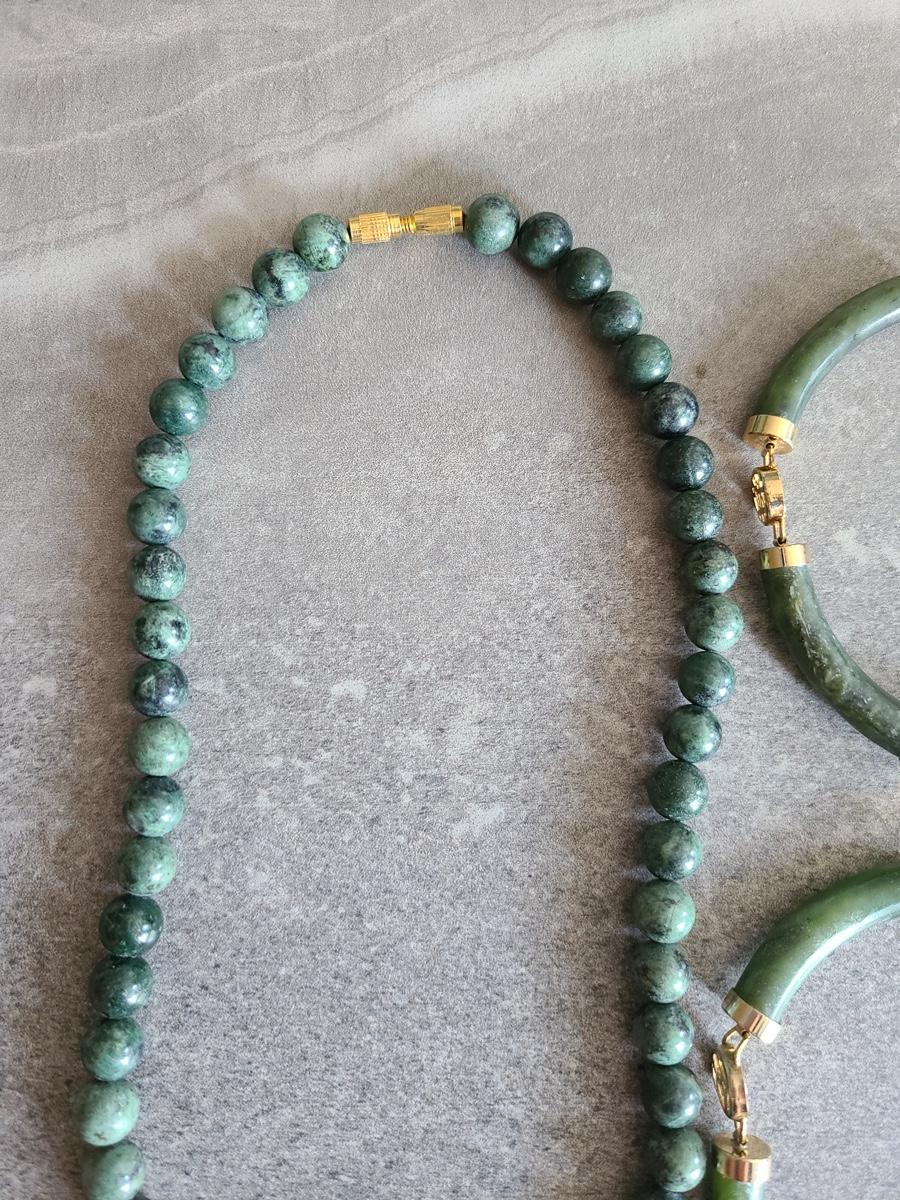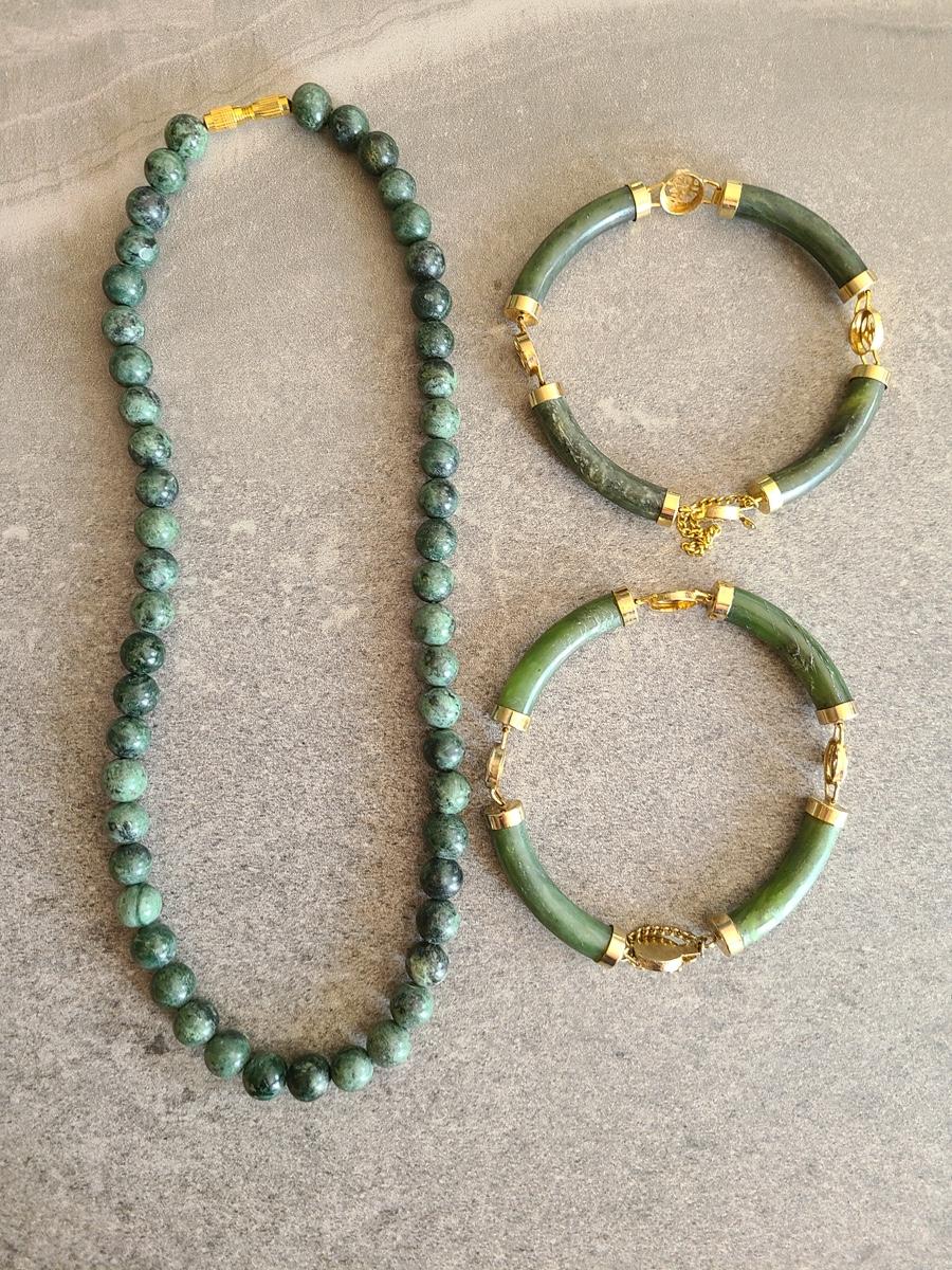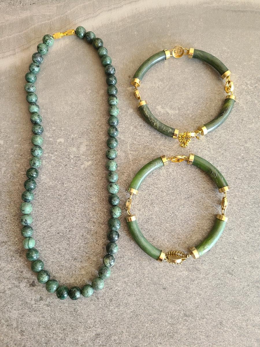 Lot J2: Vintage Dark Jade/Natural Stone Bracelet and Necklace Set