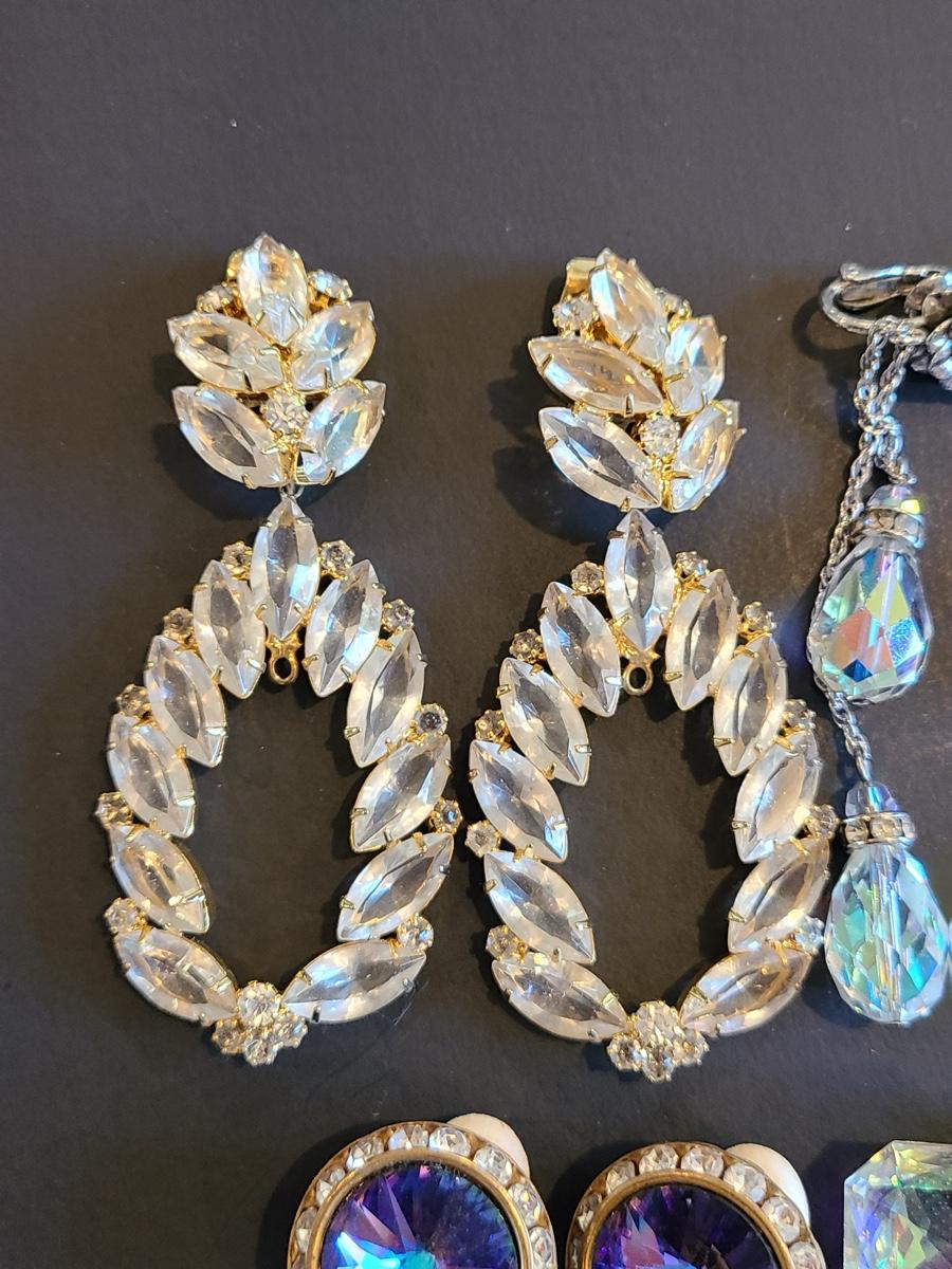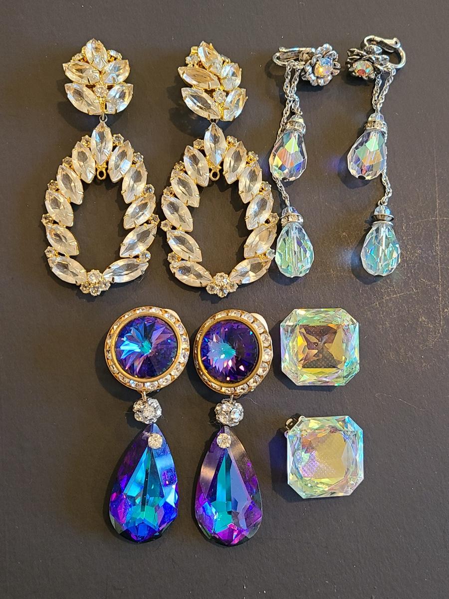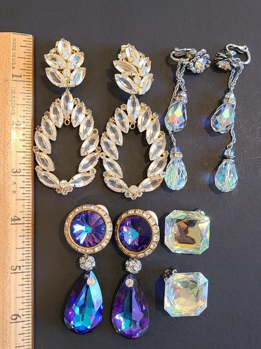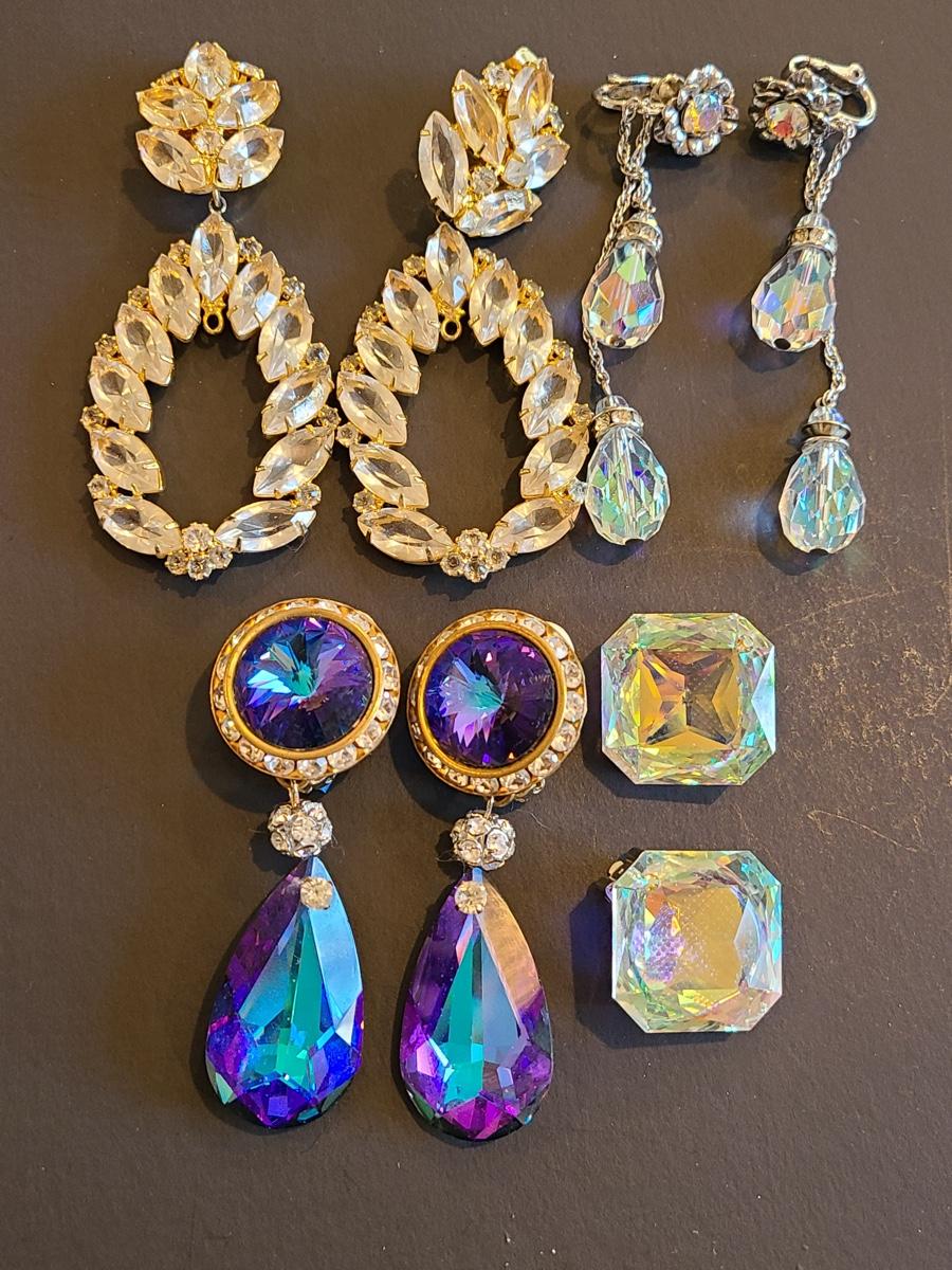 Gorgeous lot of vintage clip-ons. The flower top, double strand droplets are marked Napier. The others are not marked. The purple, teal are stunning! This is a fun lot of bling! Please see all pictures. The pictures show condition, measurements if taken, and what is included in the lot. Due to the large amount that we photograph and the time frame, we are not always able to take measurements. All items unless noted, are pre-owned and have been used. If you purchased furniture, you must bring help. We do not allow one person to carry large furniture out on their own. Bring help, tools and a truck for the safety of our client’s homes, and your personal safety. Company policy. Thank you