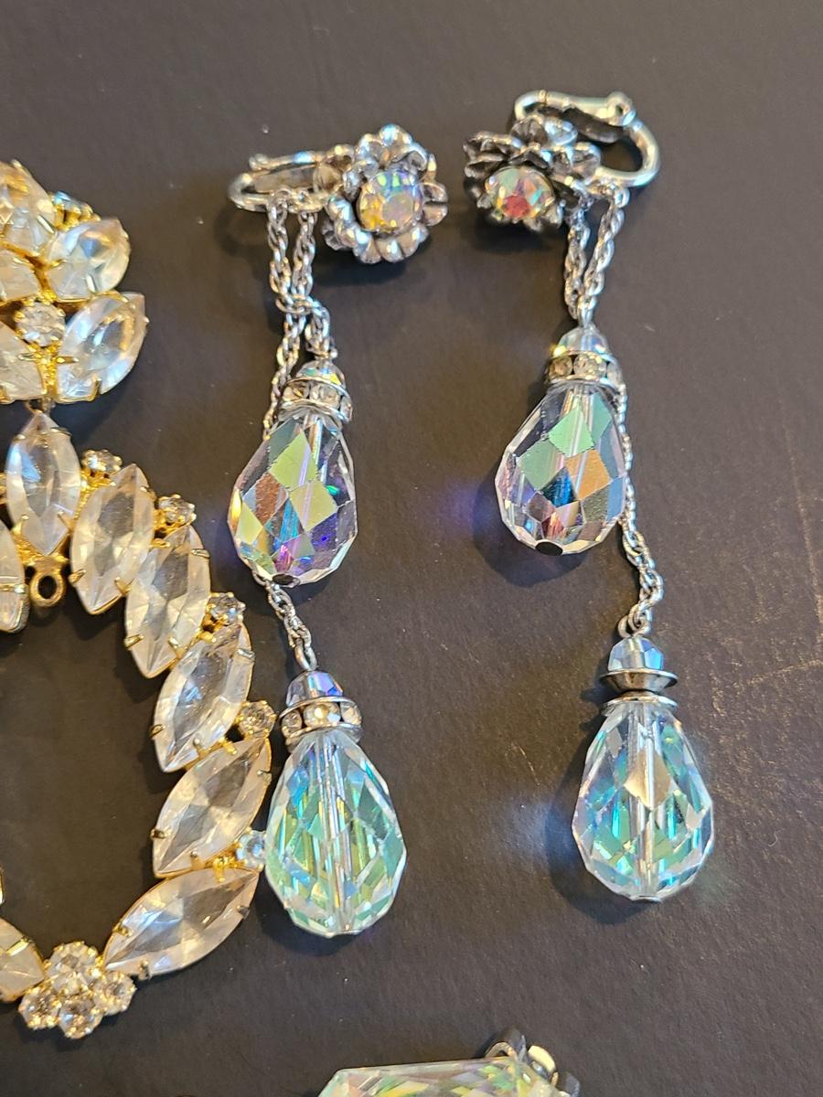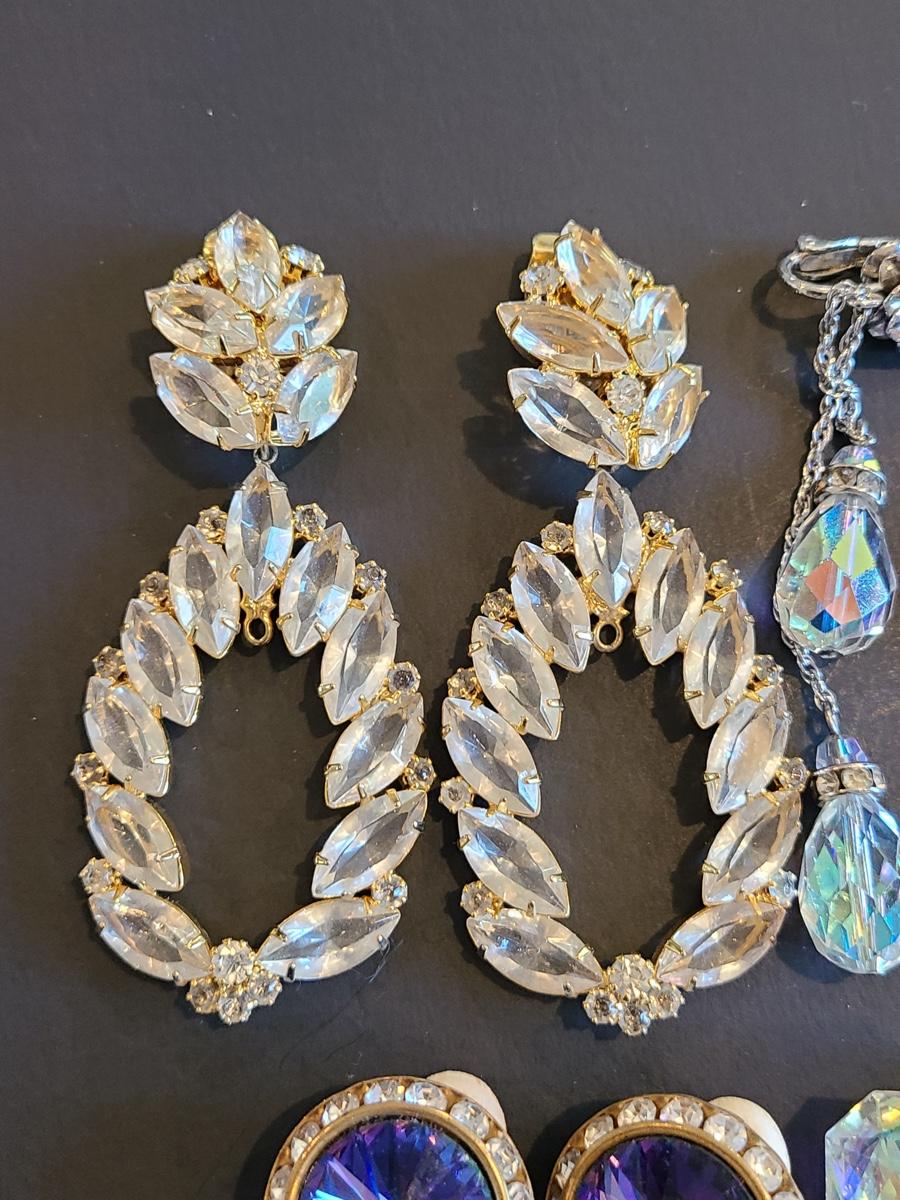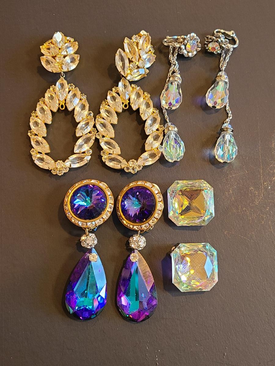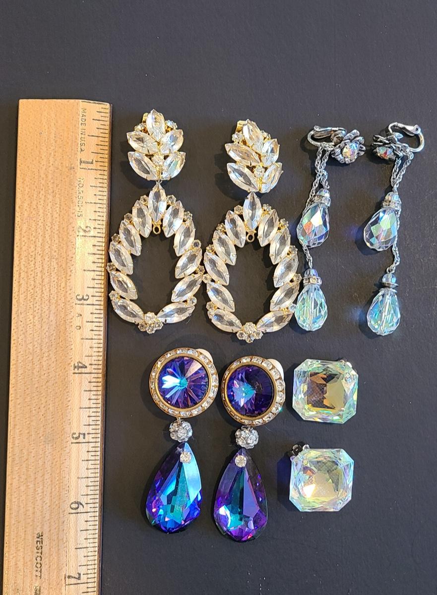 Gorgeous lot of vintage clip-ons. The flower top, double strand droplets are marked Napier. The others are not marked. The purple, teal are stunning! This is a fun lot of bling! Please see all pictures. The pictures show condition, measurements if taken, and what is included in the lot. Due to the large amount that we photograph and the time frame, we are not always able to take measurements. All items unless noted, are pre-owned and have been used. If you purchased furniture, you must bring help. We do not allow one person to carry large furniture out on their own. Bring help, tools and a truck for the safety of our client’s homes, and your personal safety. Company policy. Thank you