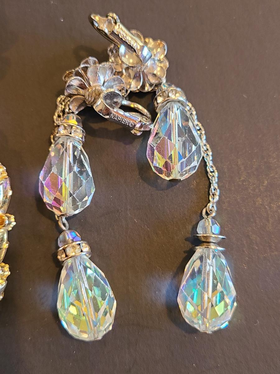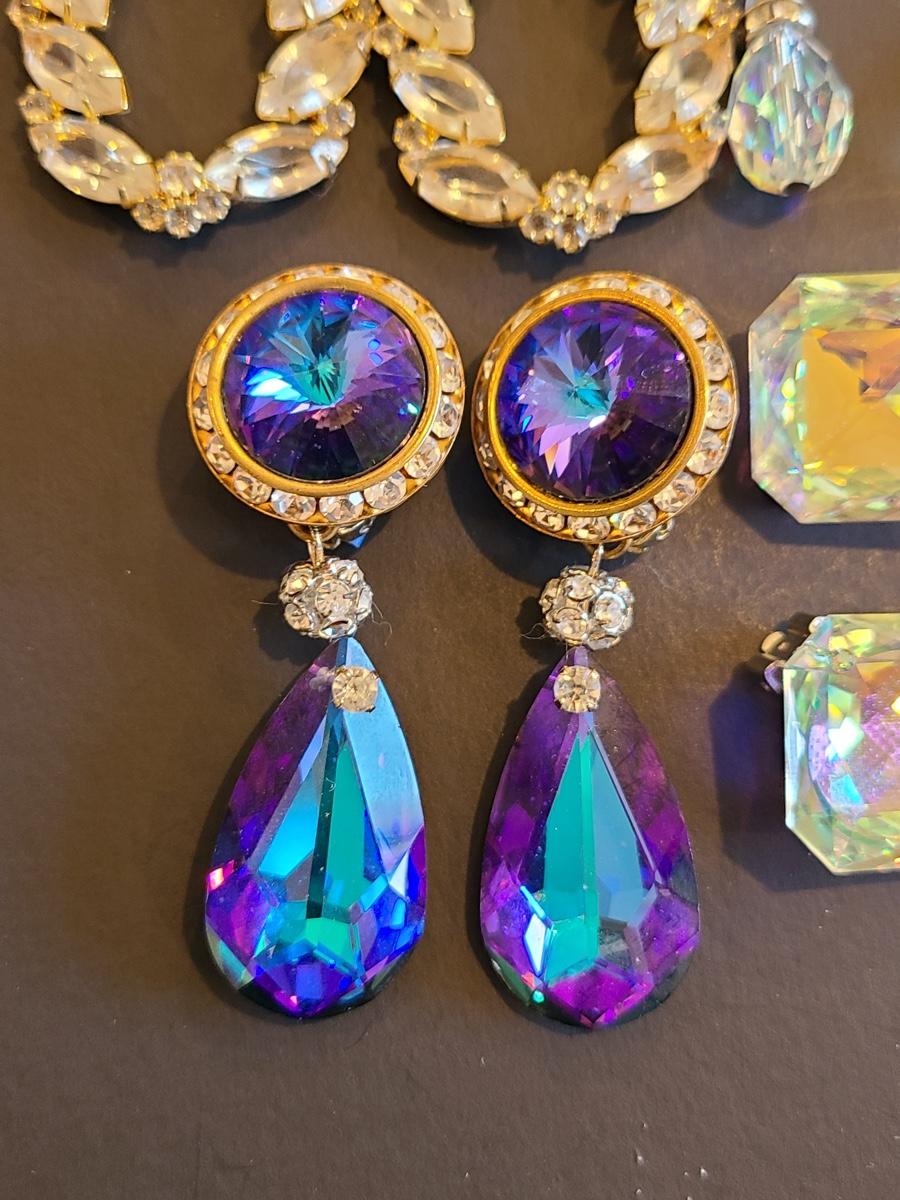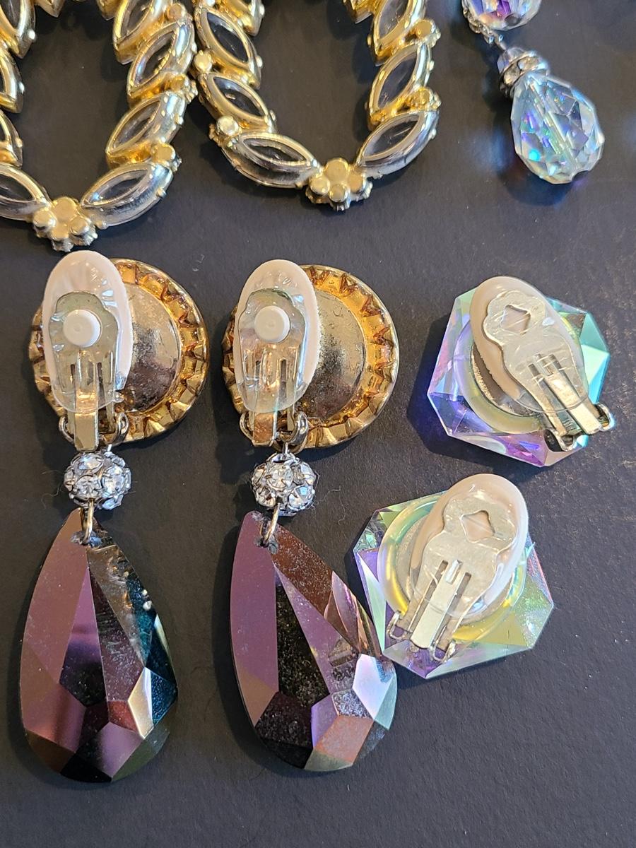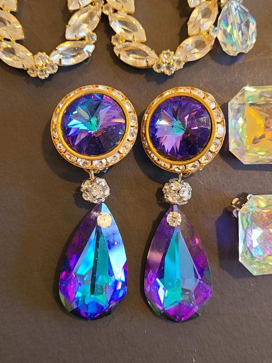 Gorgeous lot of vintage clip-ons. The flower top, double strand droplets are marked Napier. The others are not marked. The purple, teal are stunning! This is a fun lot of bling! Please see all pictures. The pictures show condition, measurements if taken, and what is included in the lot. Due to the large amount that we photograph and the time frame, we are not always able to take measurements. All items unless noted, are pre-owned and have been used. If you purchased furniture, you must bring help. We do not allow one person to carry large furniture out on their own. Bring help, tools and a truck for the safety of our client’s homes, and your personal safety. Company policy. Thank you