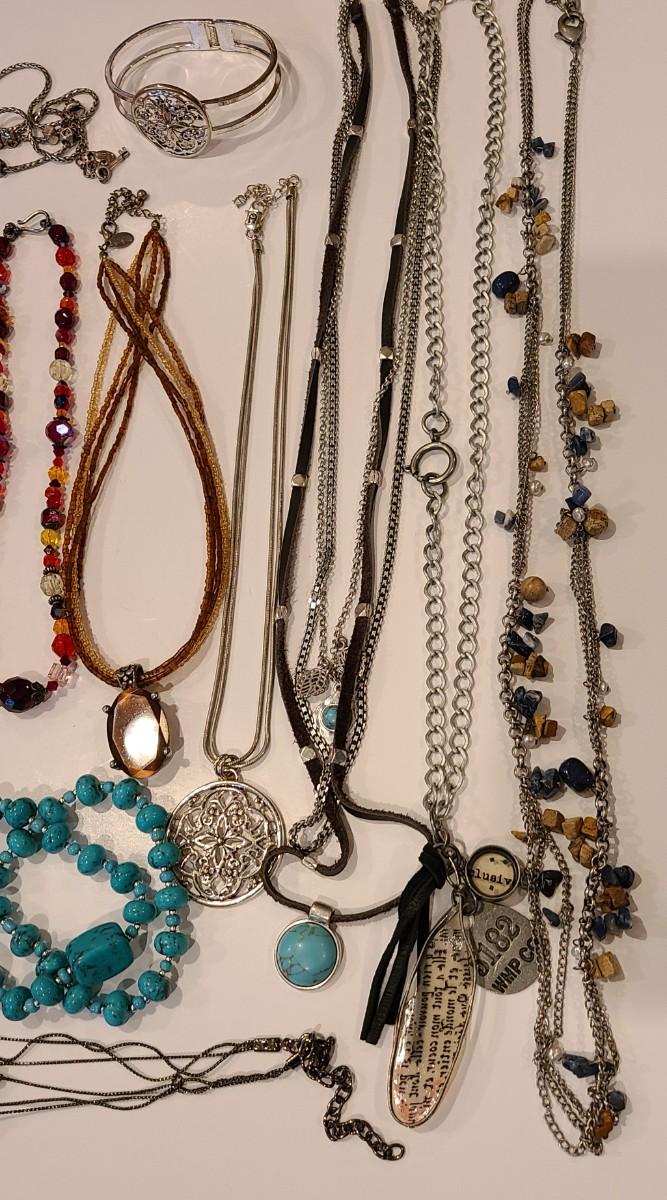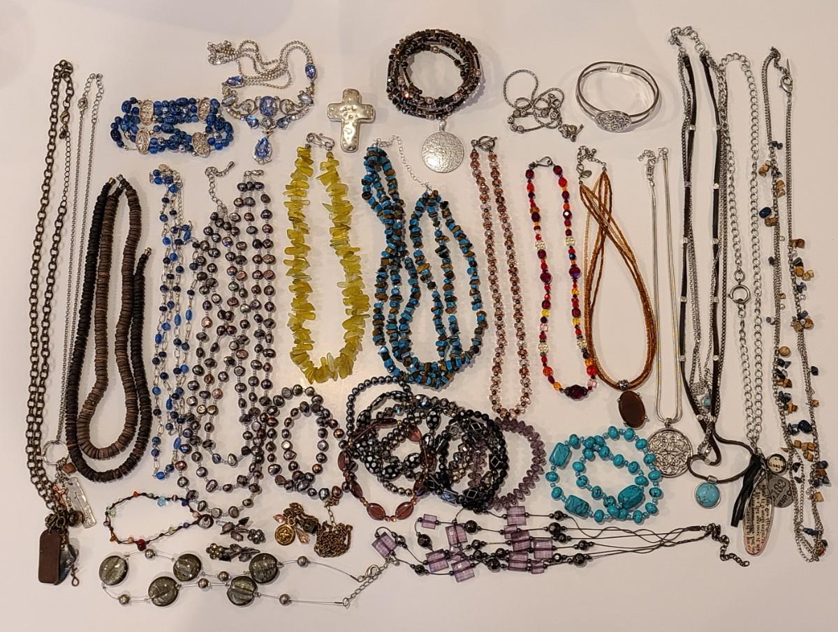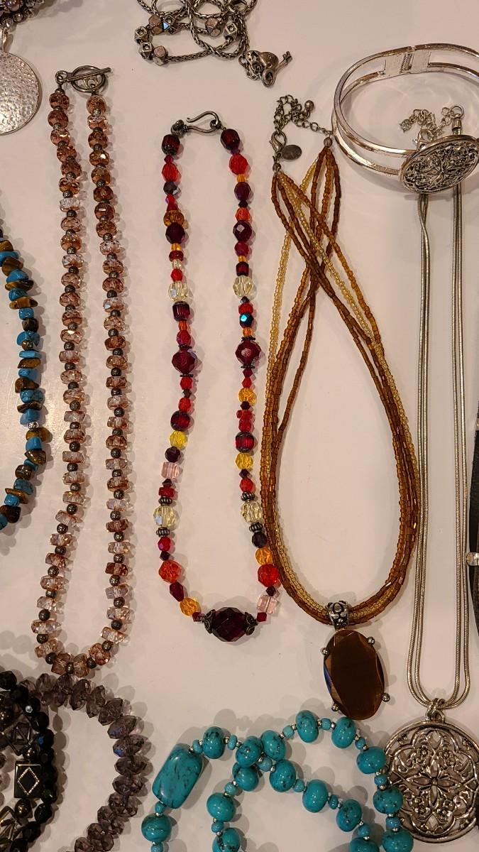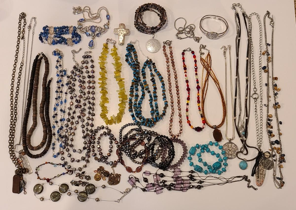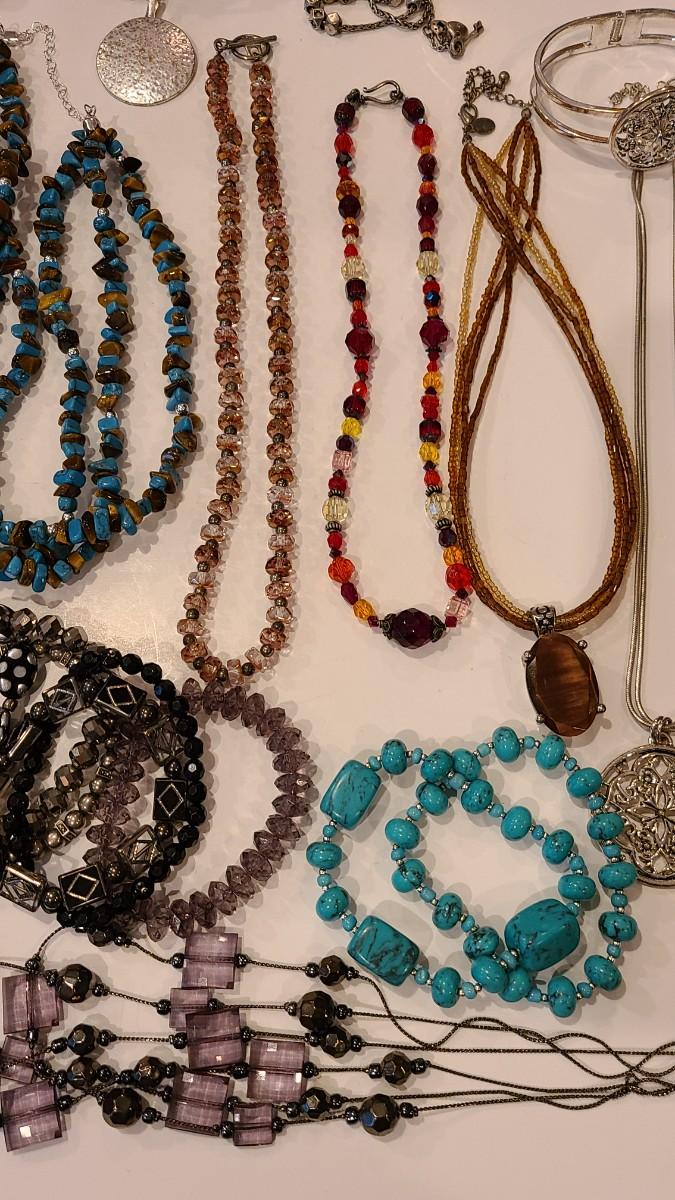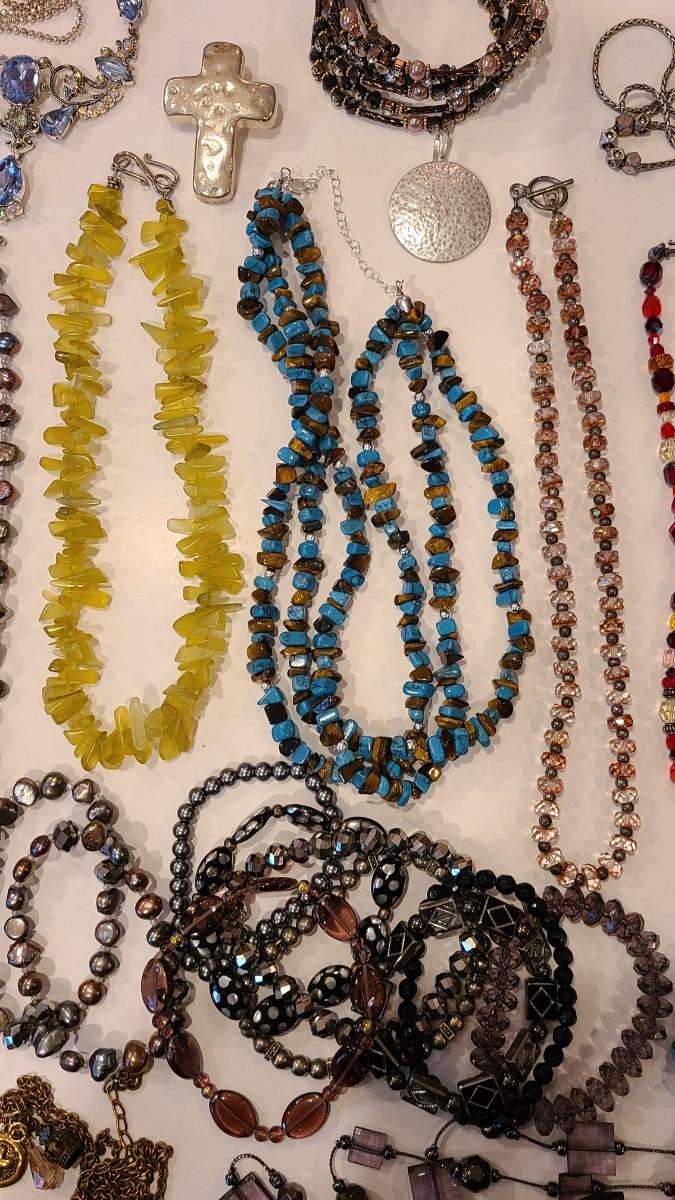 Costume, modern fashion jewelry lot. Some of these were handmade with natural stone. Please see all pictures for content of the lot, condition of the lot, and measurements if taken. Pictures are the best representation of the items listed and items are untested unless indicated in description. Thank you for looking and have fun bidding!