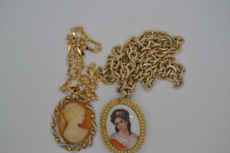 Lot J20: Vintage Van Del Cameo pendants secret compartment watch