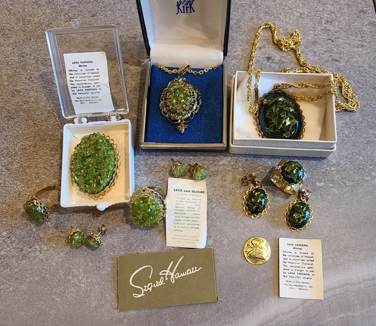 Lot J22: Vintage Hawaii Lava Fantasia Olivine Jewelry Lot