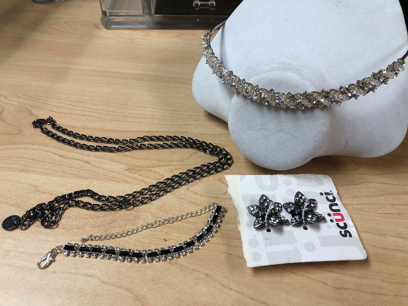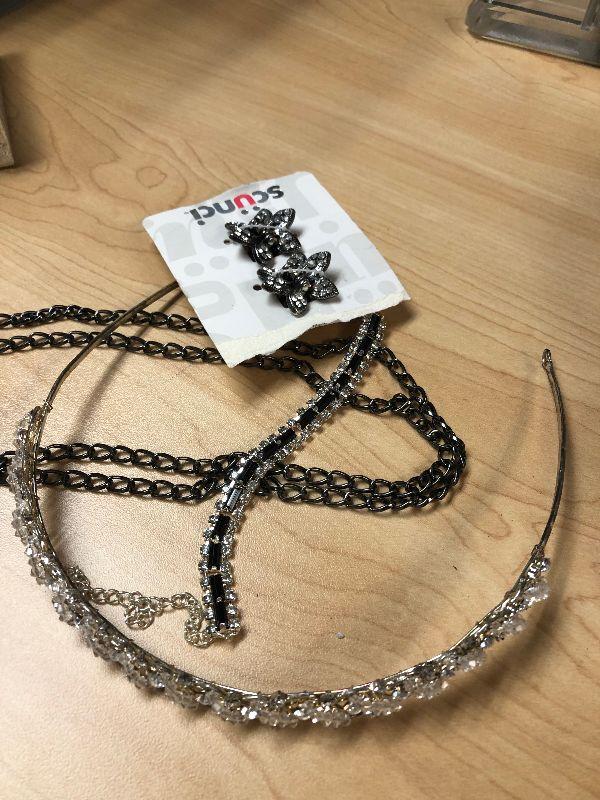 Black Chain Necklace. Costume Bracelet, Metal Hair Clips and a Tiar