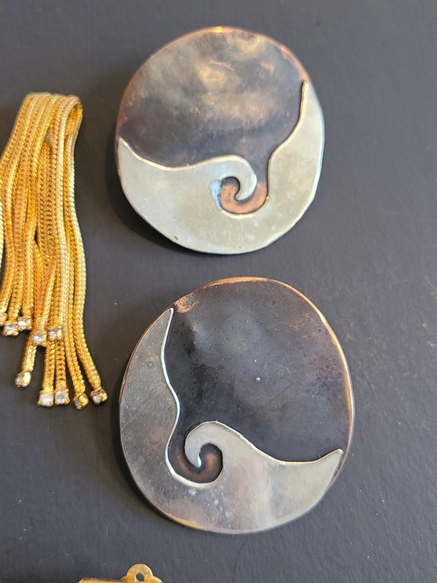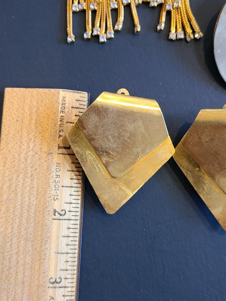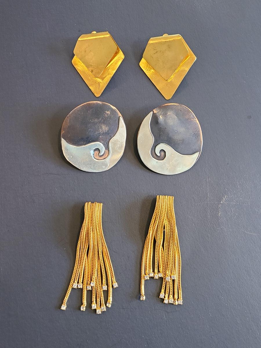 Three pairs of fun vintage earrings, these are large in size. Please see all pictures. The pictures show condition, measurements if taken, and what is included in the lot. Due to the large amount that we photograph and the time frame, we are not always able to take measurements. All items unless noted, are pre-owned and have been used. If you purchased furniture, you must bring help. We do not allow one person to carry large furniture out on their own. Bring help, tools and a truck for the safety of our client’s homes, and your personal safety. Company policy. Thank you