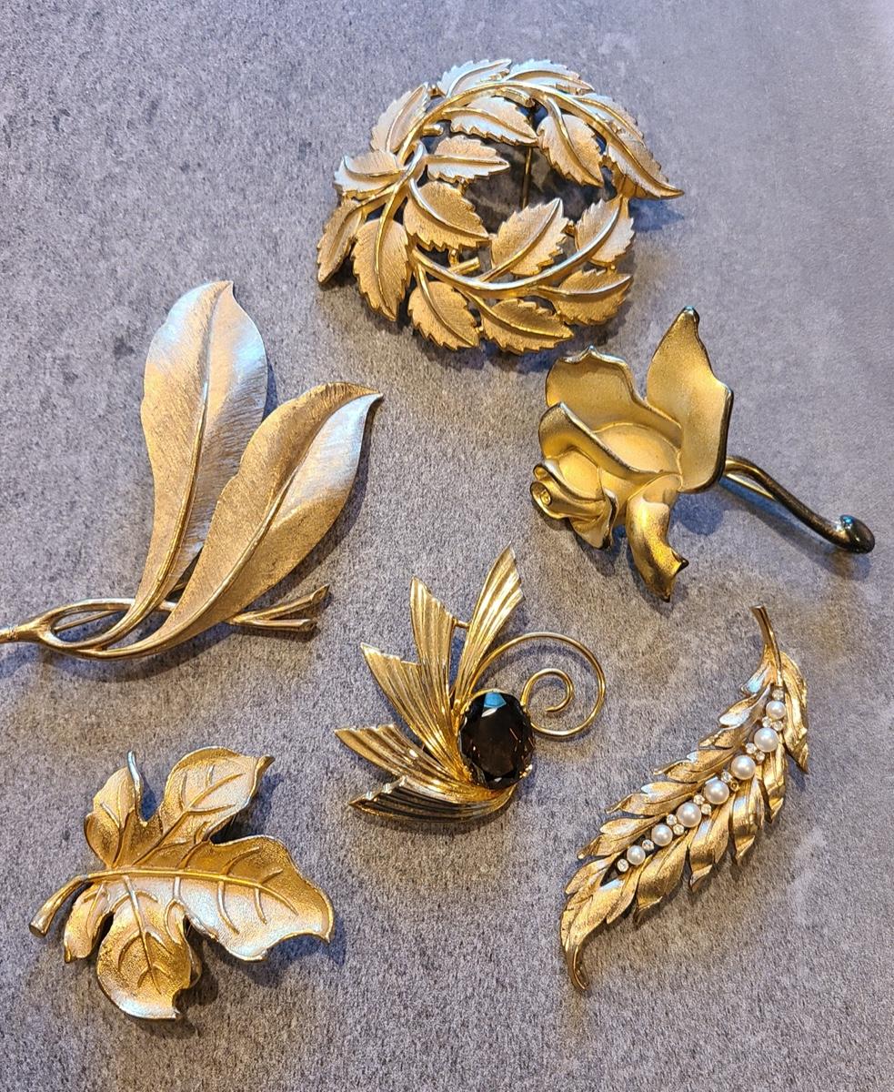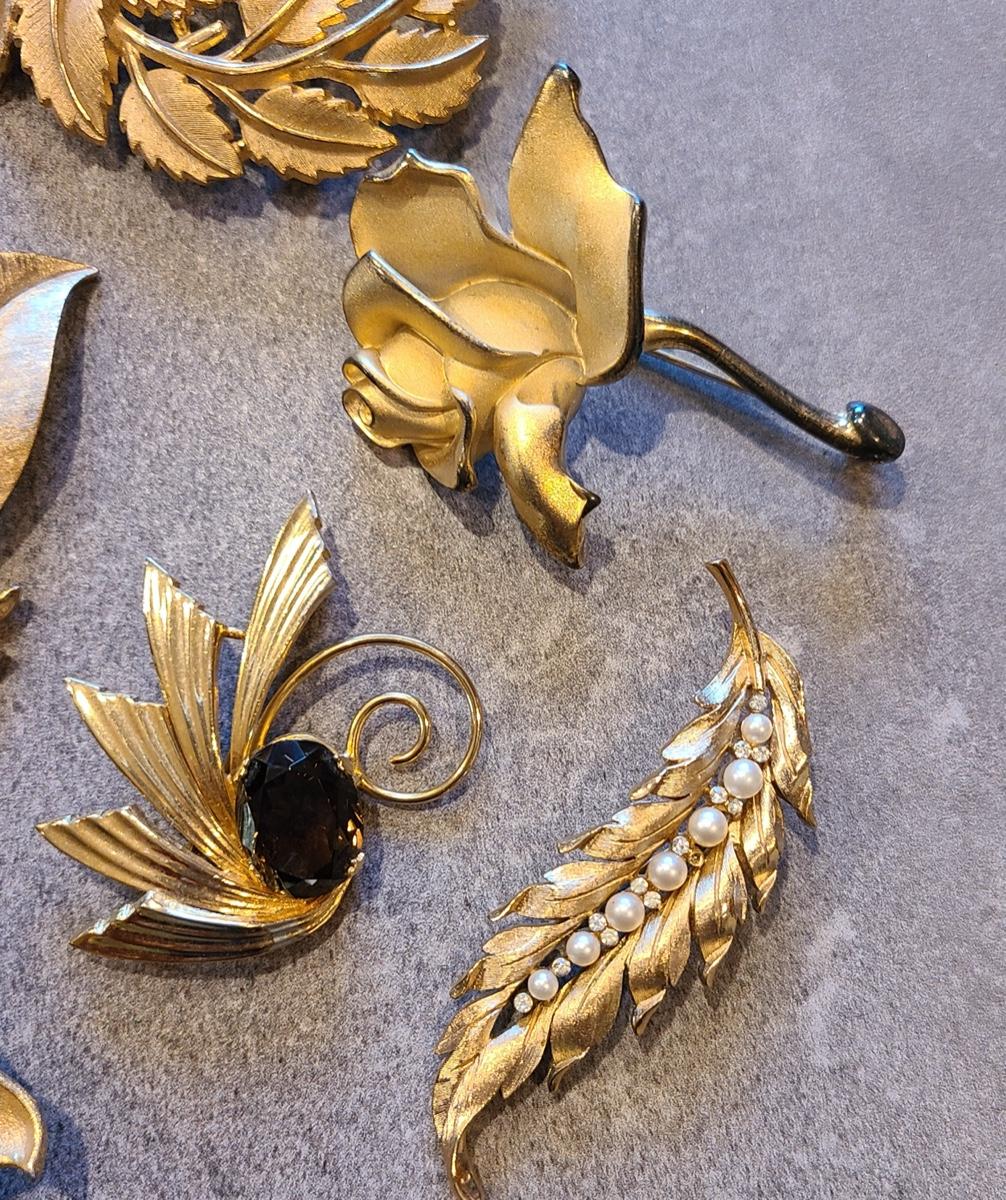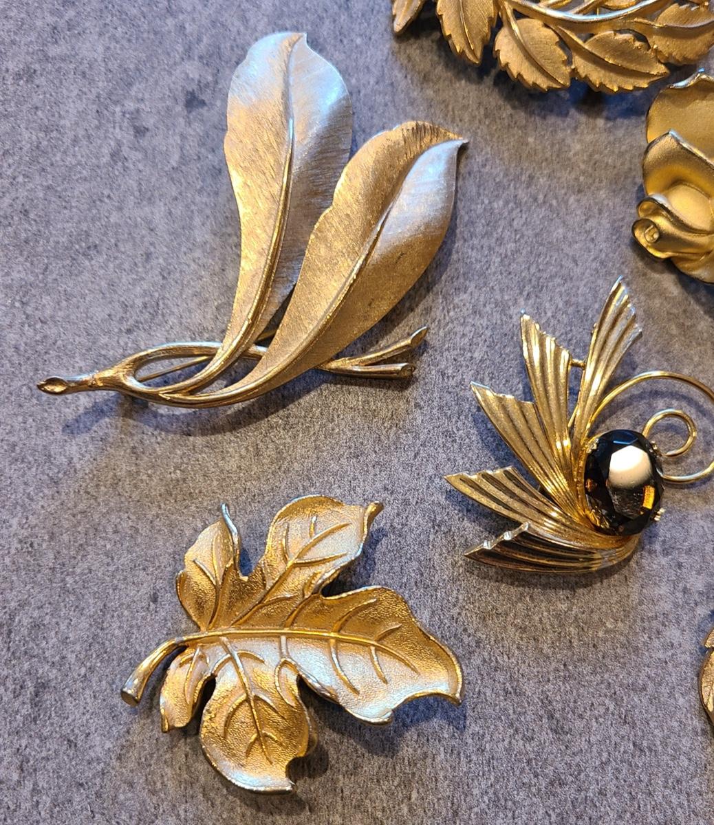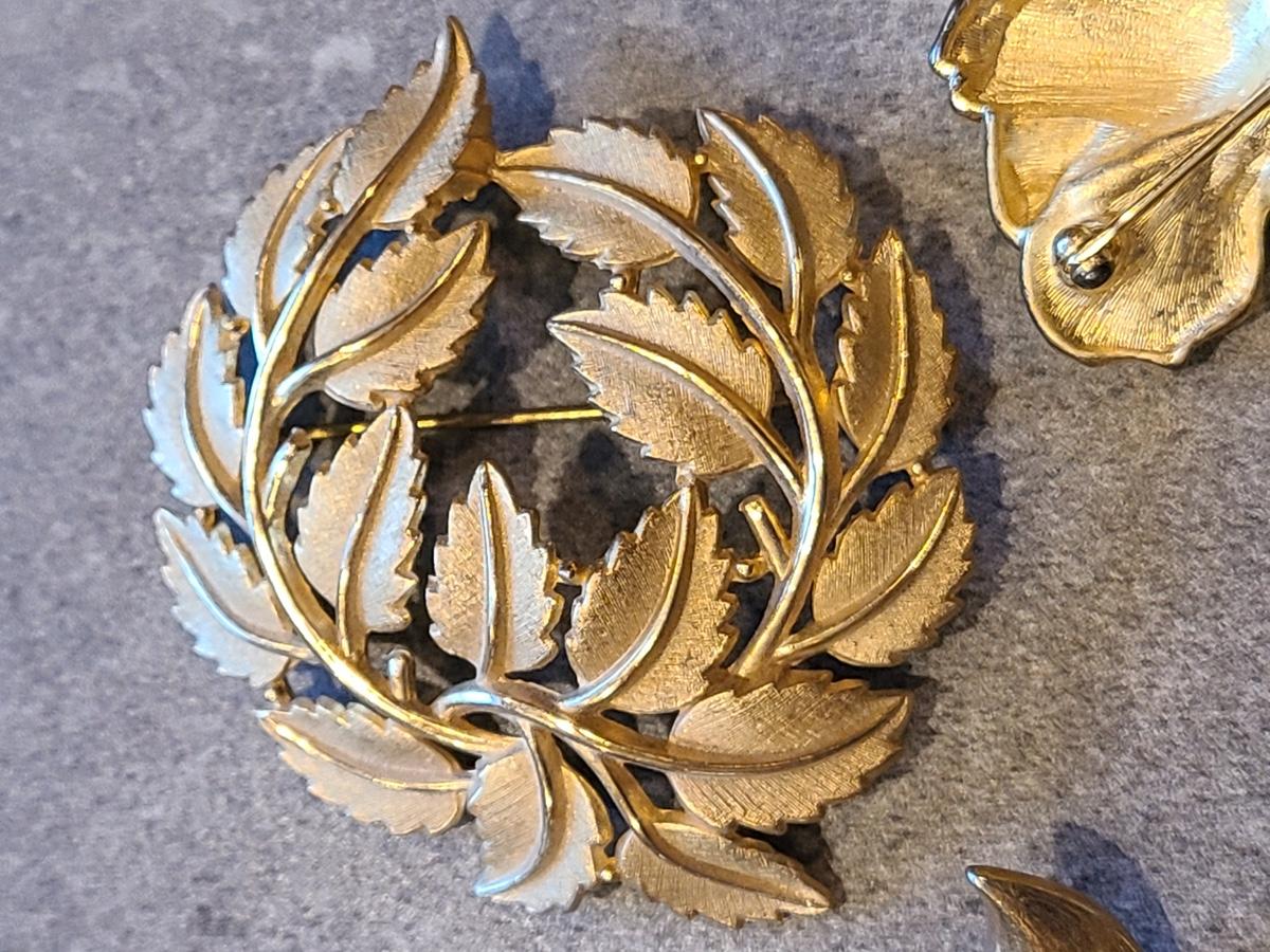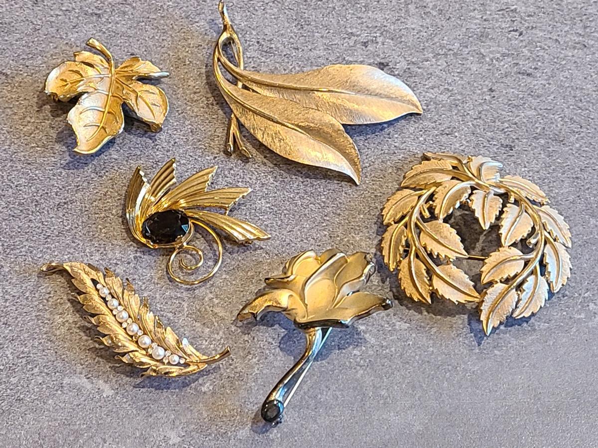Lot J25: Vintage Gold Tone Brooch Lot with Makers Marks
