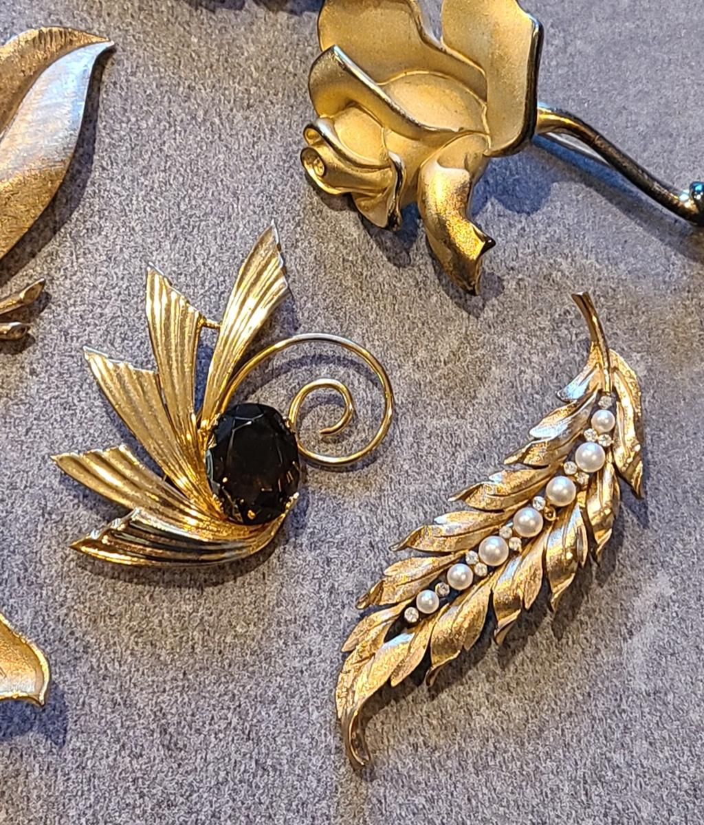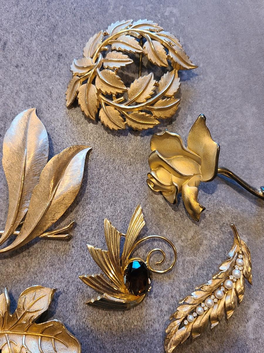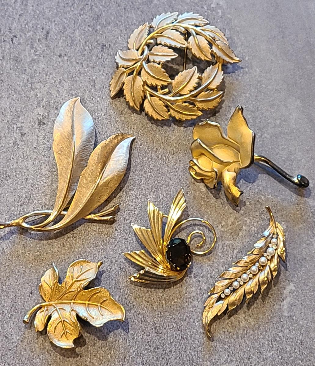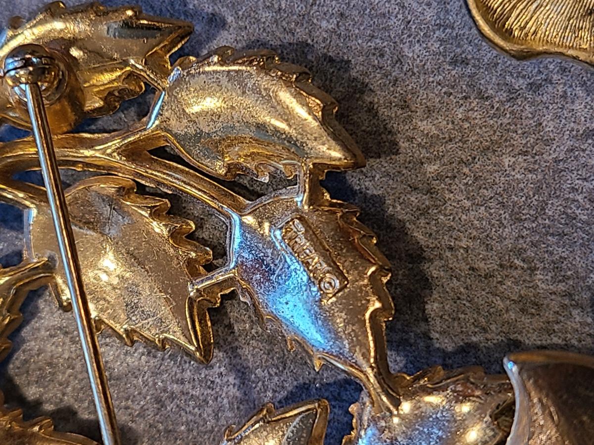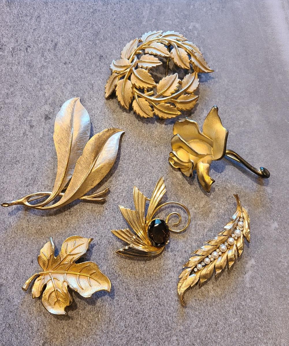 Lot J25: Vintage Gold Tone Brooch Lot with Makers Marks