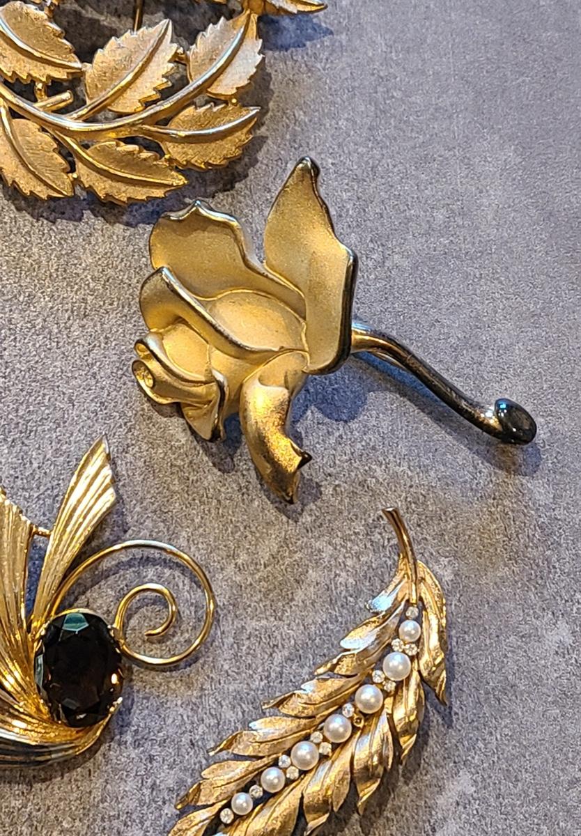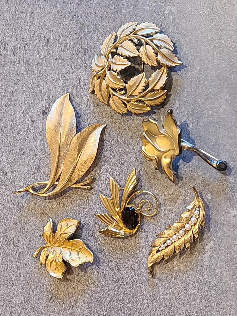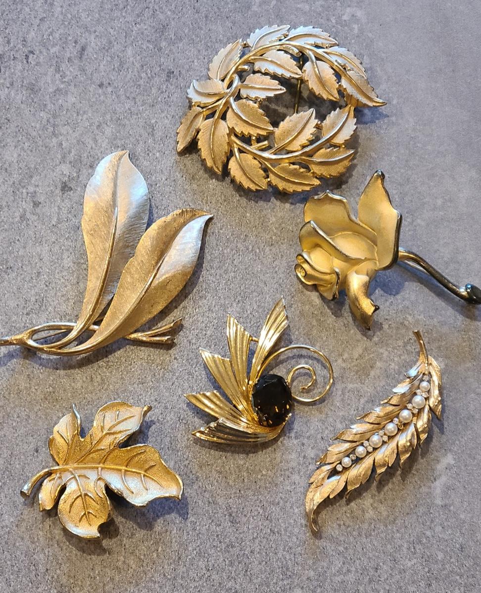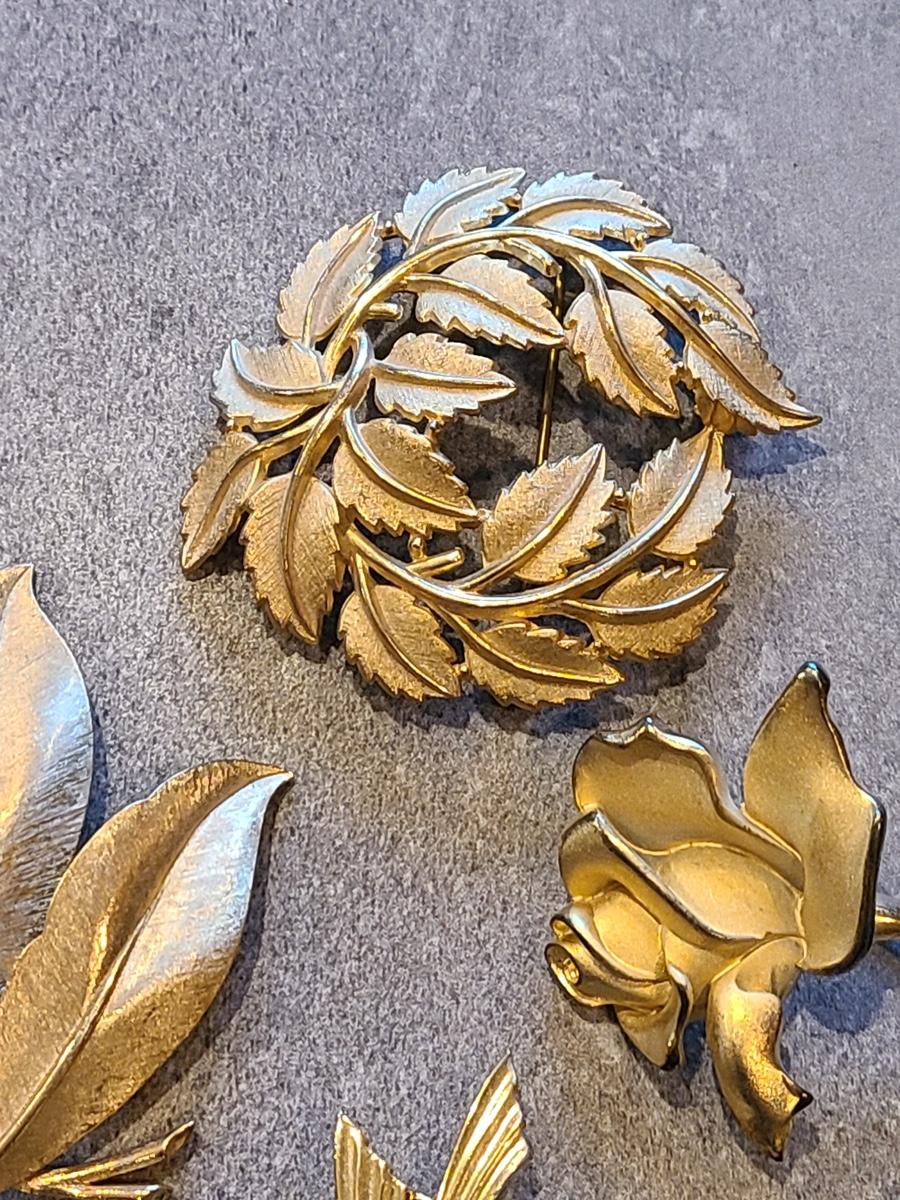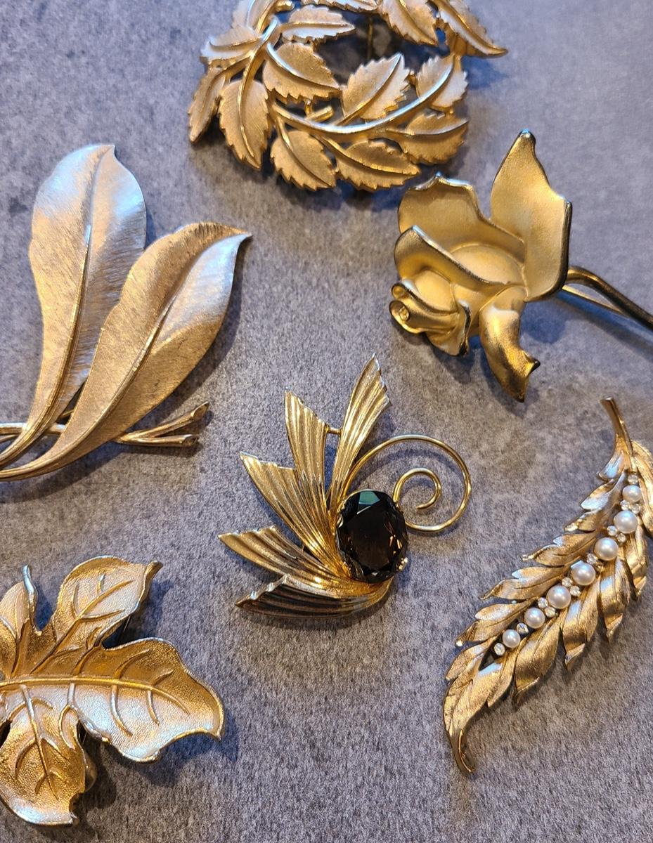 Lot J25: Vintage Gold Tone Brooch Lot with Makers Marks