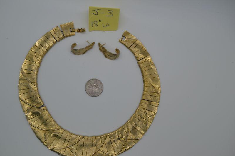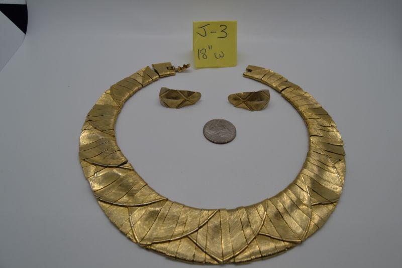 Lot J3: Necklace/Choker & Earrings Set Goldtone Vintage