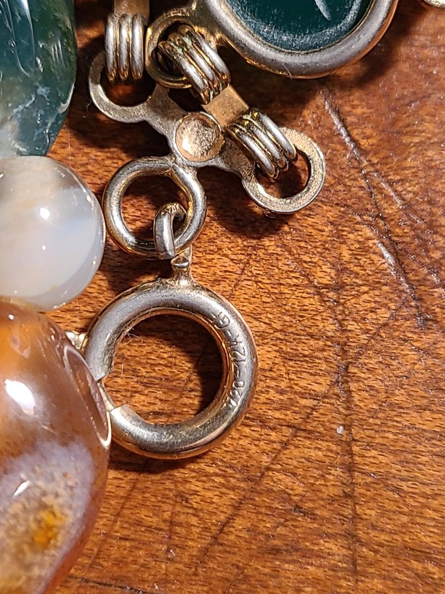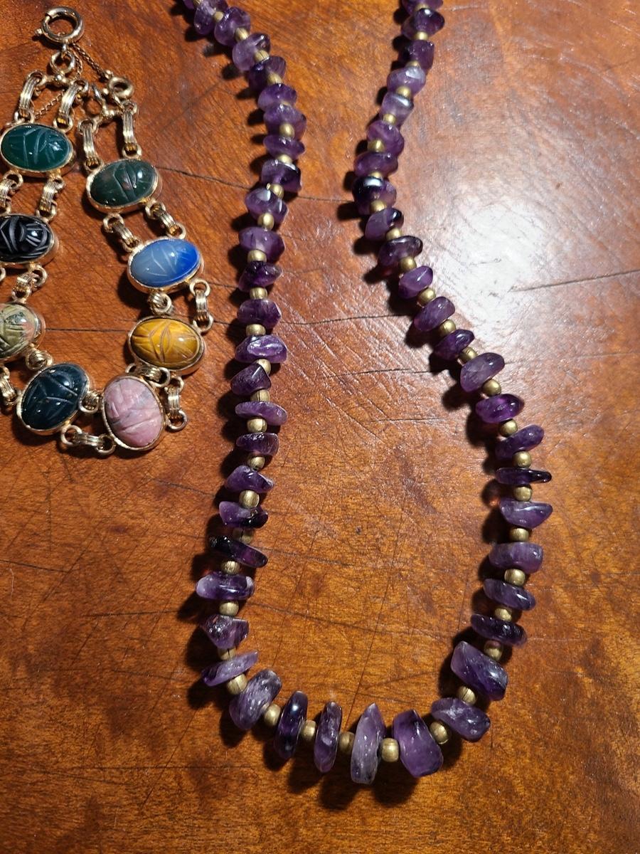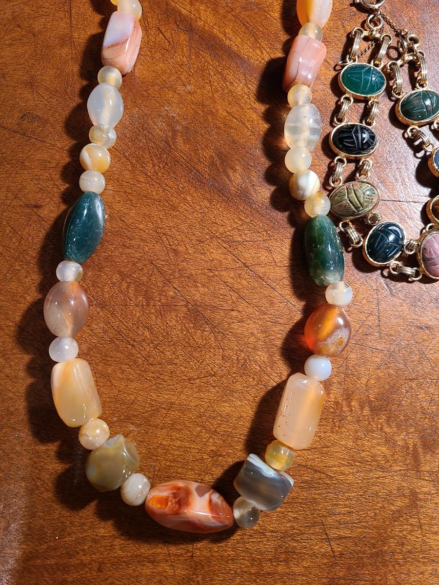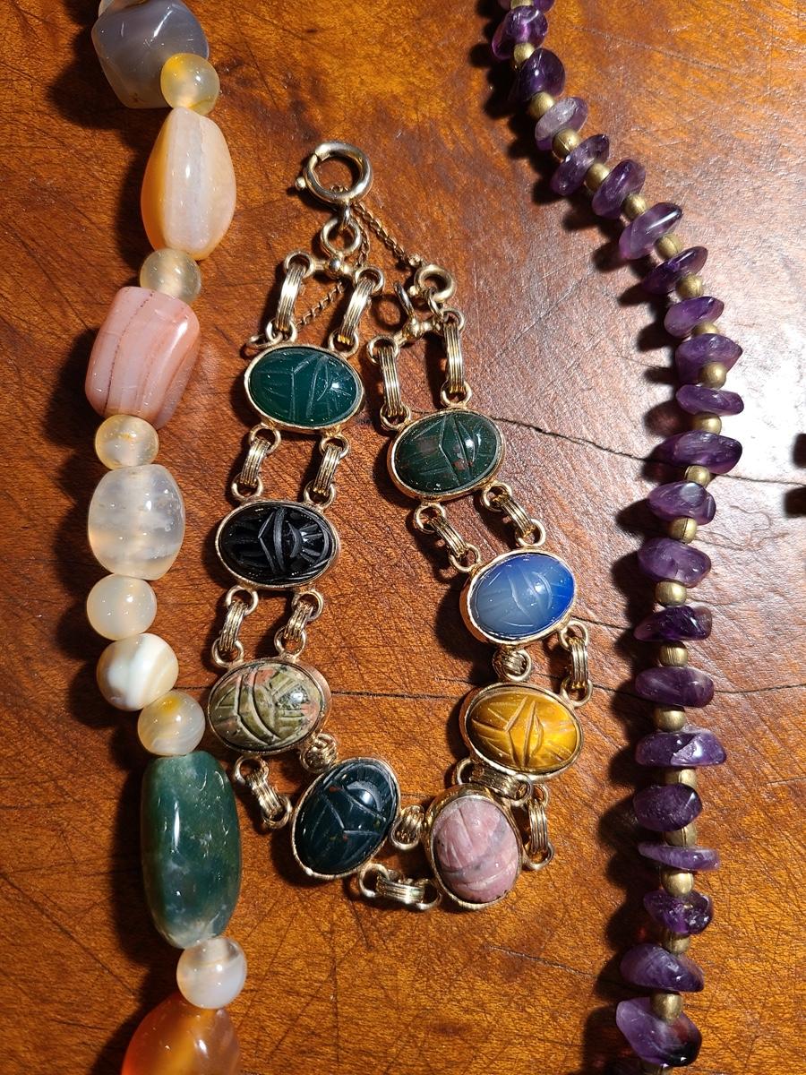 Lovely lot of natural stone necklaces with vibrant colors, and a bracelet marked gold filled.
