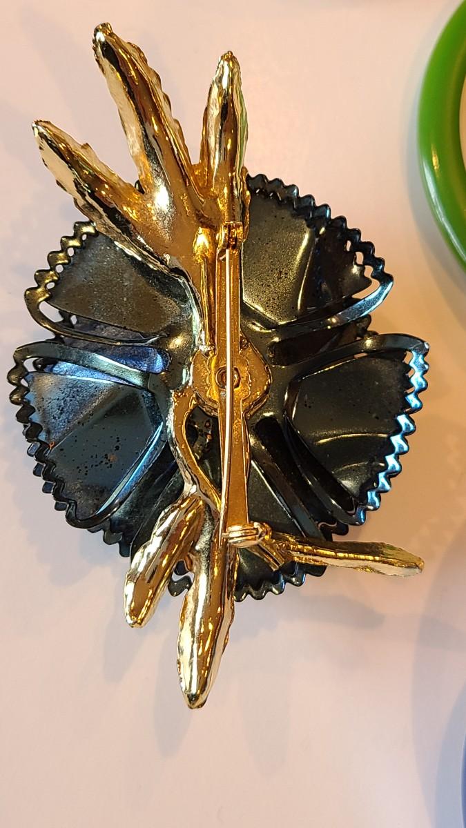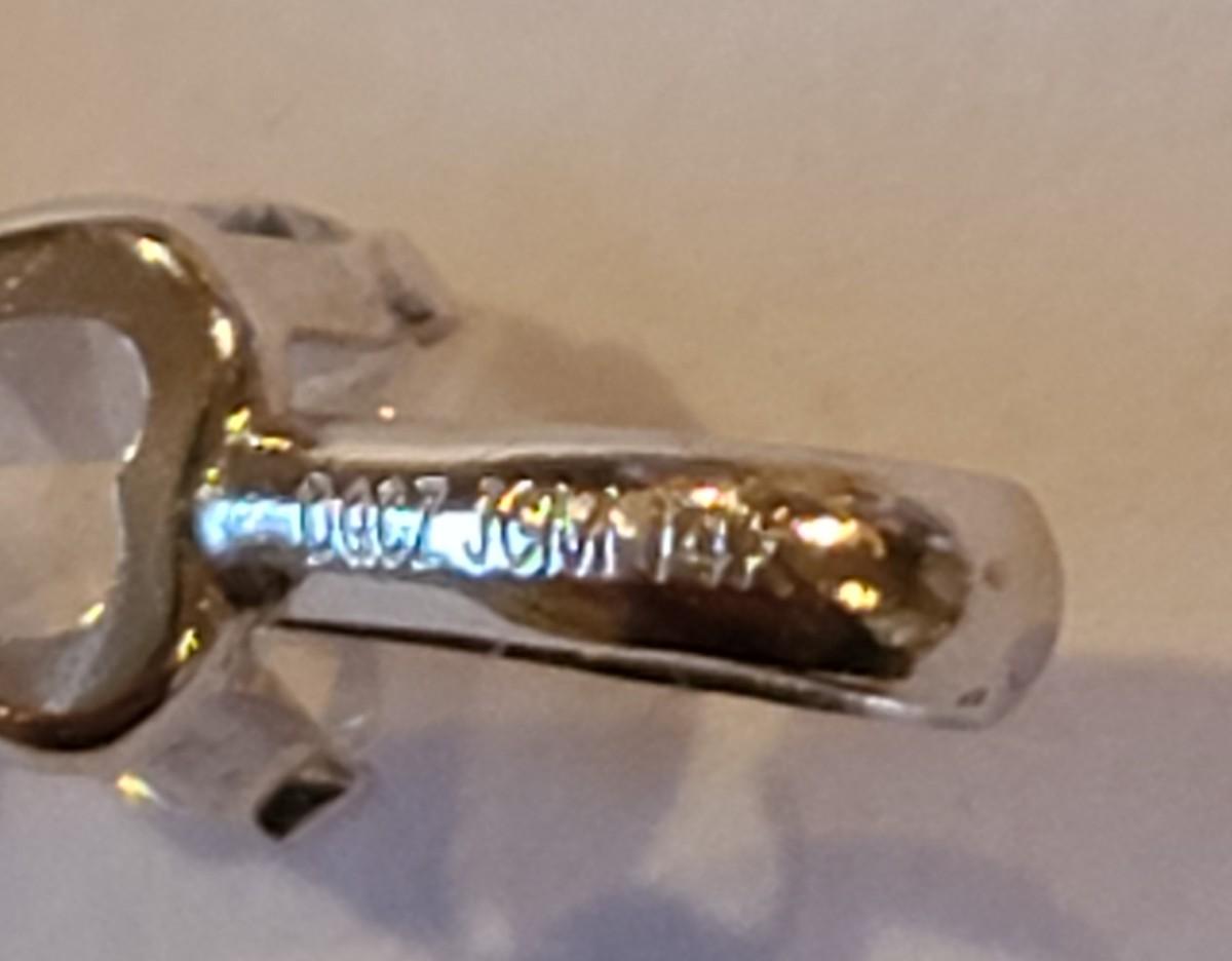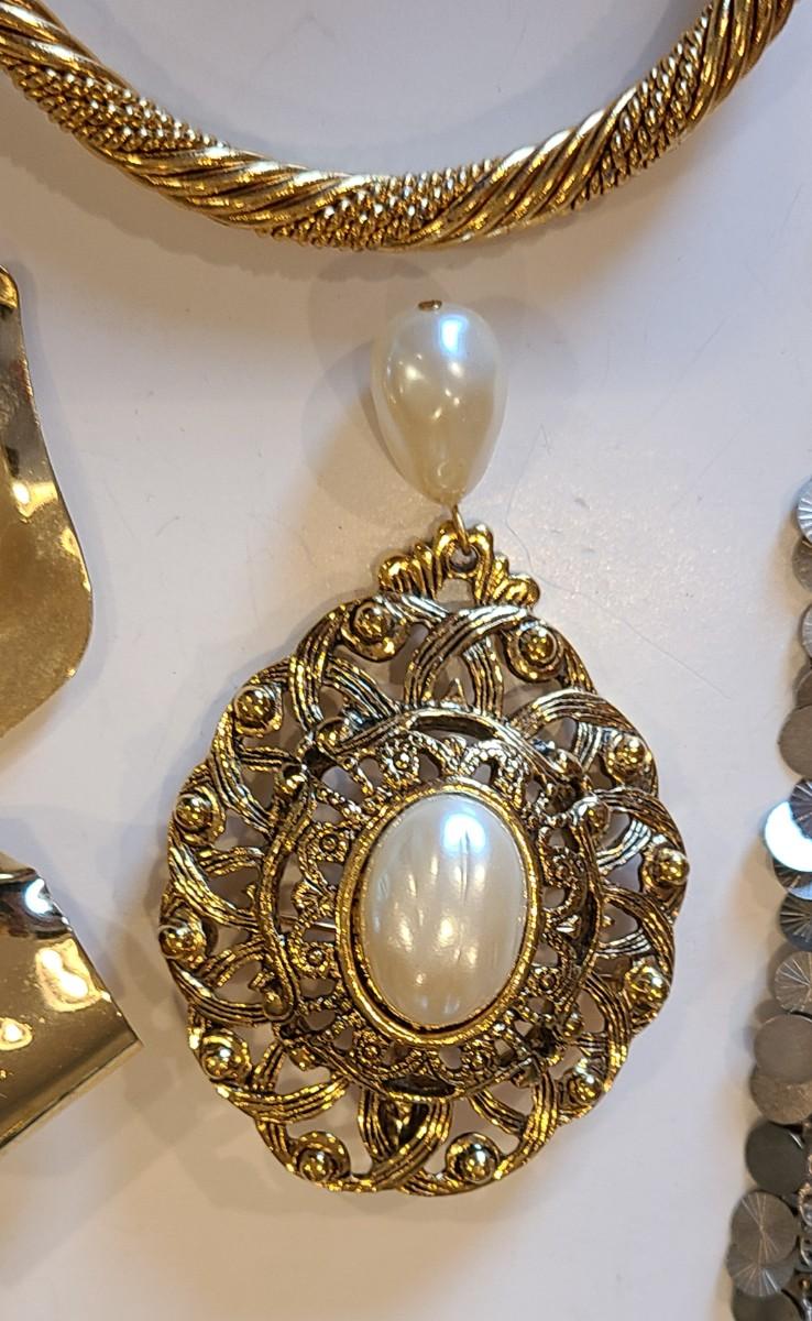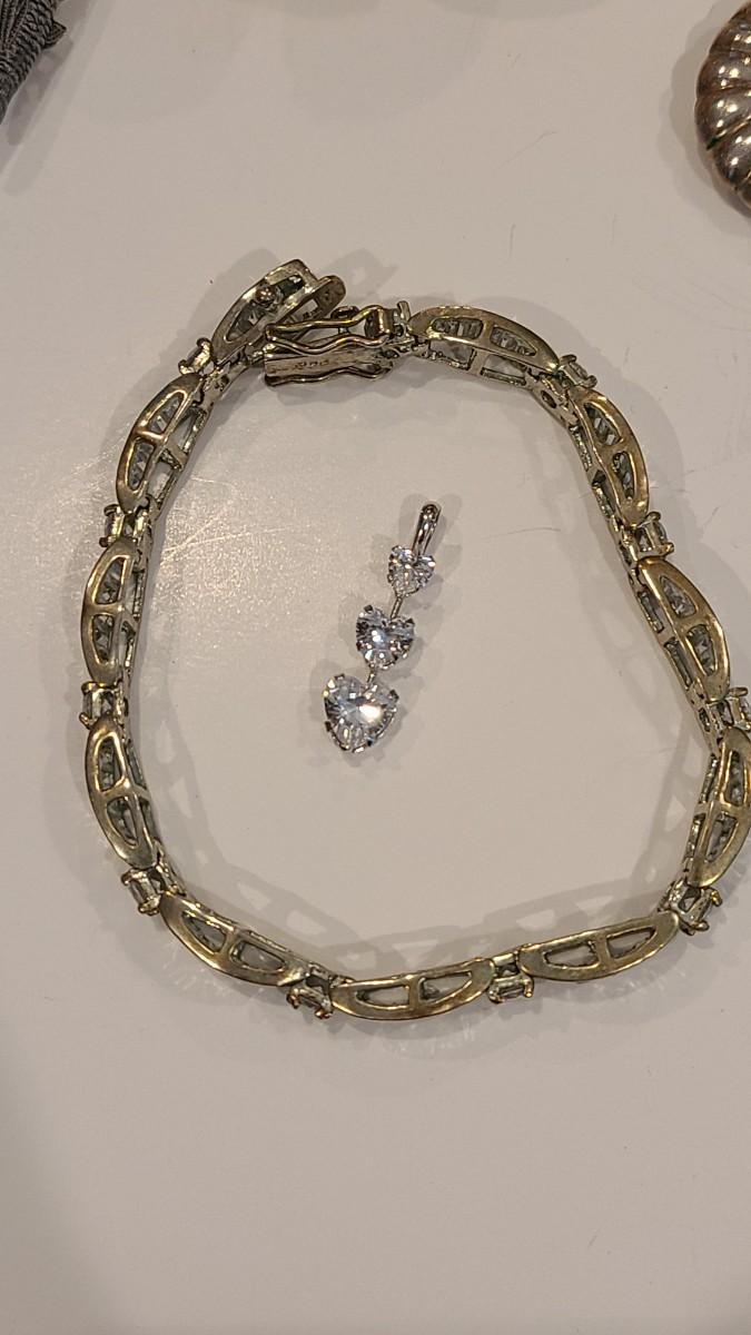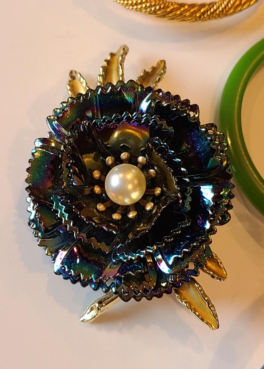 Mixed lot of jewelry including: Vintage colorful bangles, Trifari Bowl necklace and rabbit in the hat brooch, Hipanema bracelet, antique spectacles (as-is), sterling marked brooch with monogram, Kirk Steiff pewter February Violet brooch, cameo ring, signed copper ring, vintage tennis bracelet, and Jacmel Mauritius DQCZ JCM 14K White Gold 3-Tier Heart Pendant (great gift), and Scotland Yard/Ironworker lapel pins. Tried to take multiple close-ups to get makers marks. Please see all pictures for content of the lot, condition of the lot, and measurements if taken. Pictures are the best representation of the items listed and items are untested unless indicated in description. Thank you for looking and have fun bidding!