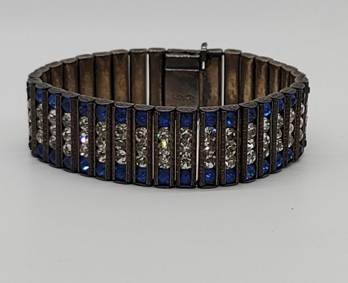 Lot J72: Stunning Antique Sterling Silver and crystal bracelet