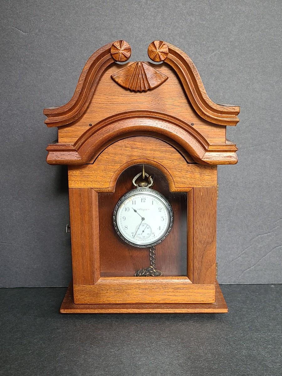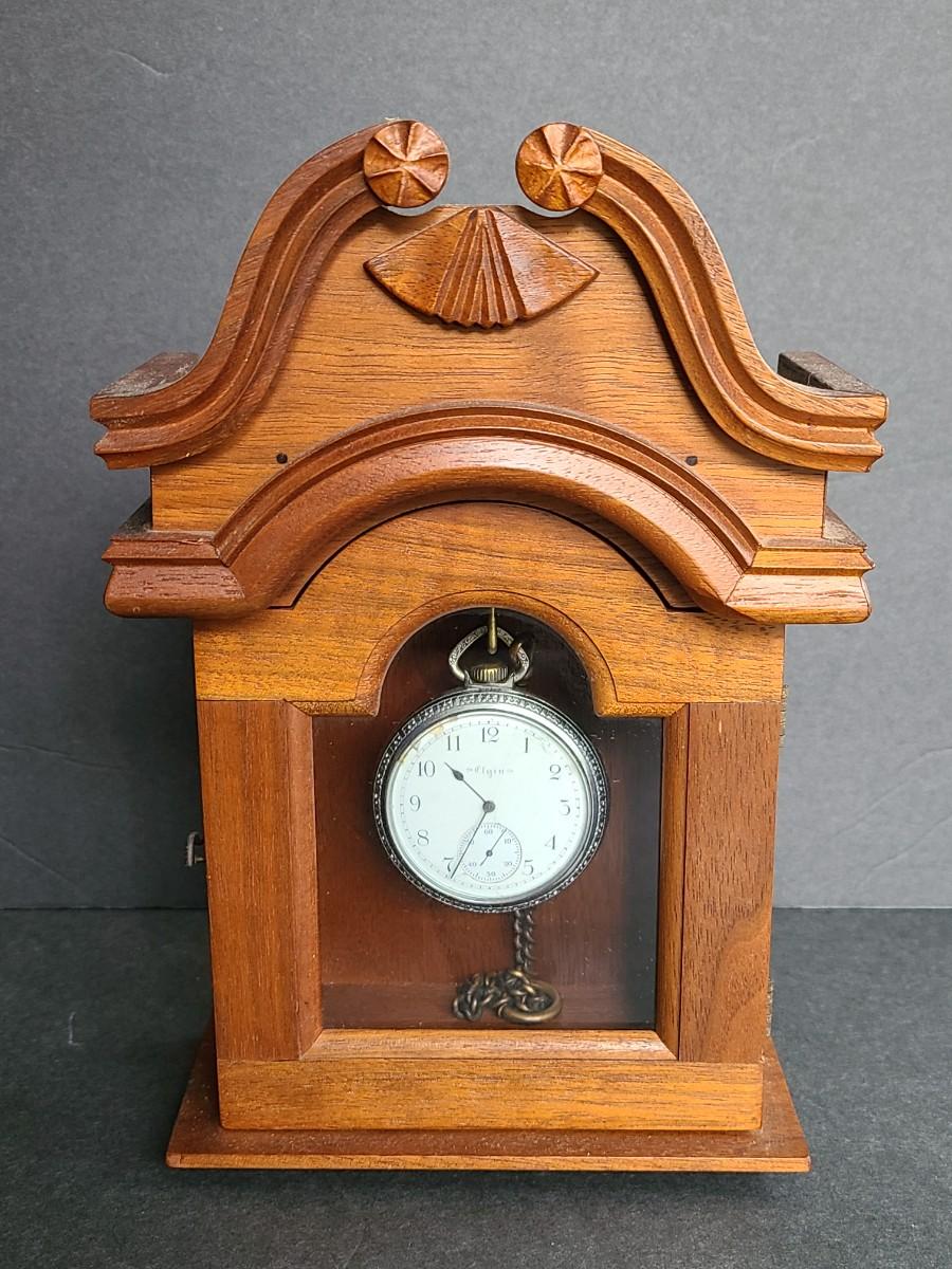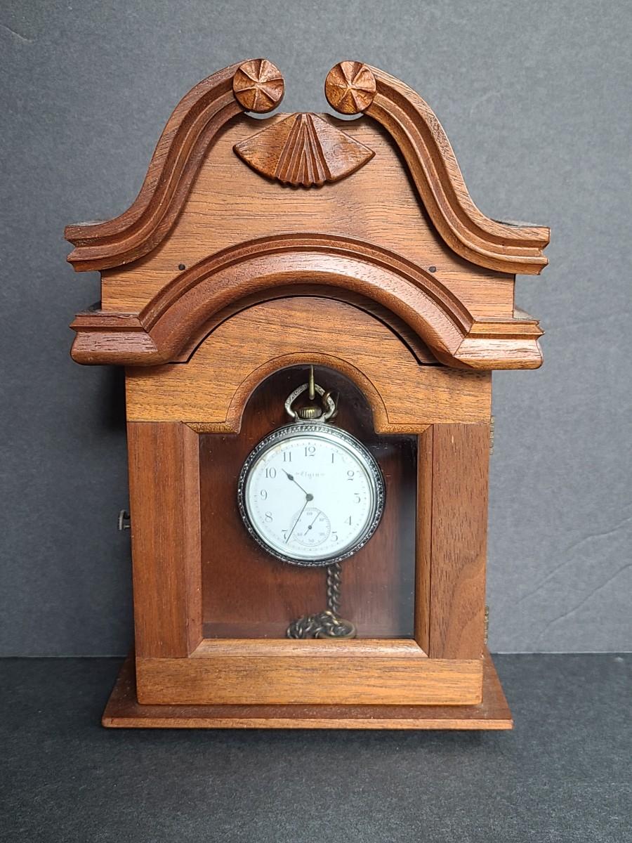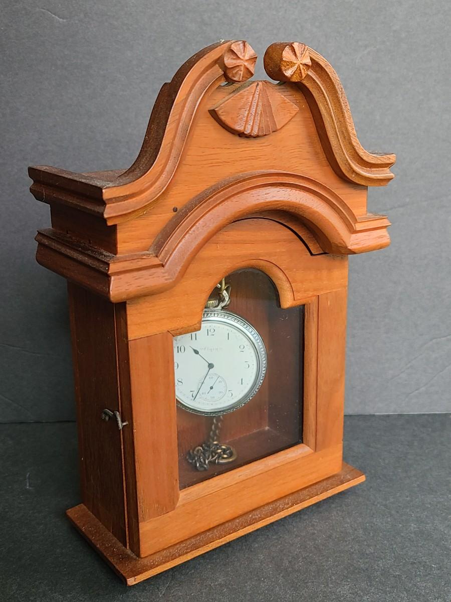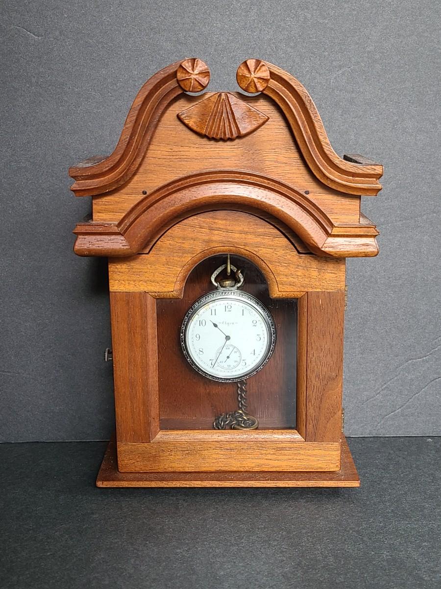 Lot J8: HTF Winterthur Miniature Walnut Pocket Watch Holder w/Elgin