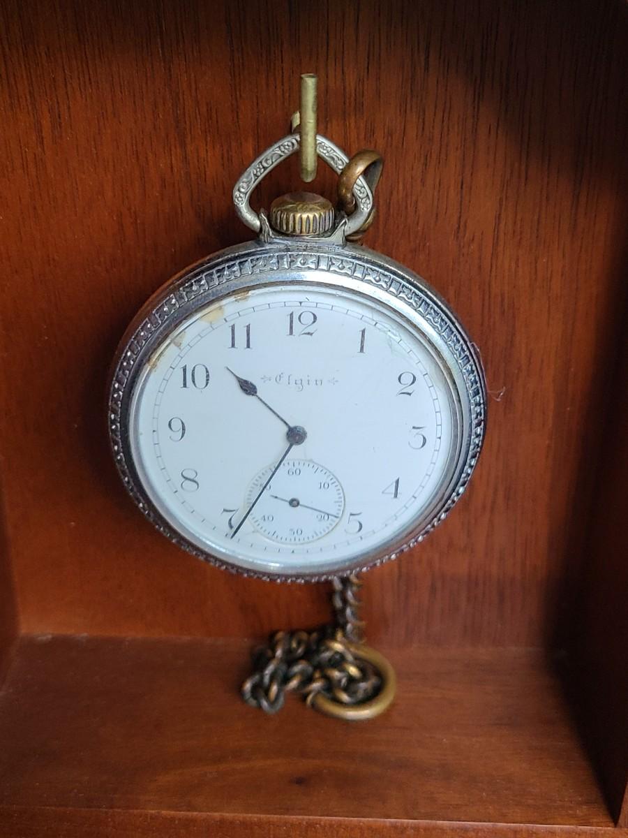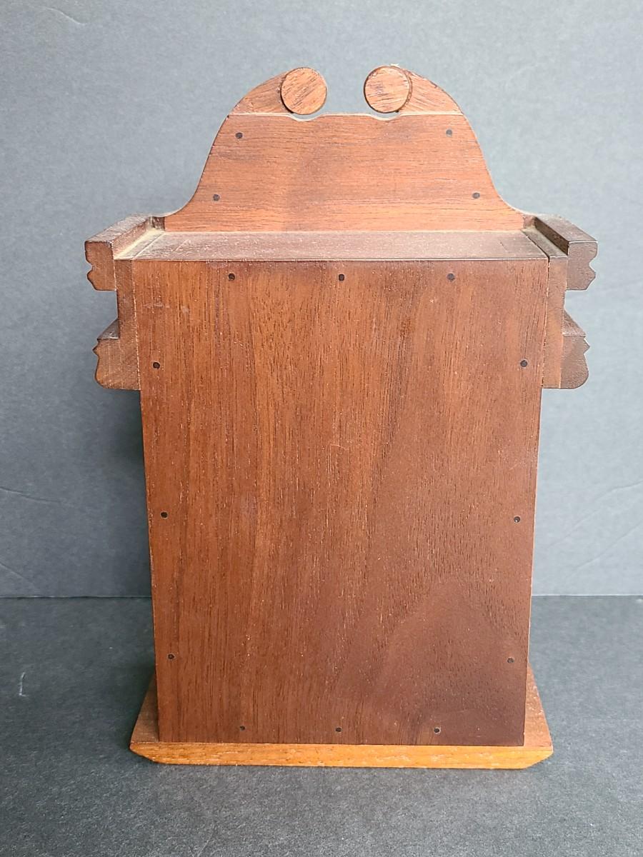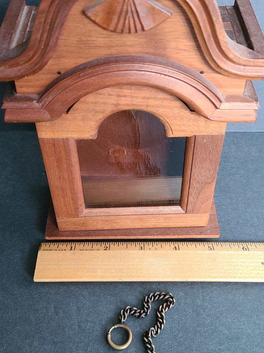 This unique piece is very hard to find. It is reproduction from the specks of a Winterthur large scale clock case, but in miniature form and from what looks to be Walnut. It is marked Winterthur Reproduction. The pocket watch inside is an Elgin the intermittantly ticks. The pictures show condition, measurements if taken, and what is included in the lot. Due to the large amount that we photograph and the time frame, we are not always able to take measurements. All items unless noted, are pre-owned and have been used. If you purchased furniture, you must bring help. We do not allow one person to carry large furniture out on their own. Bring help, tools and a truck for the safety of our client’s homes, and your personal safety. Company policy. Thank you.