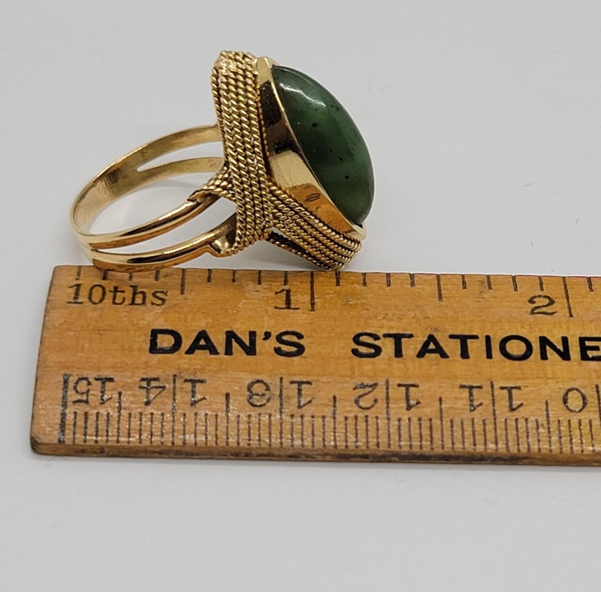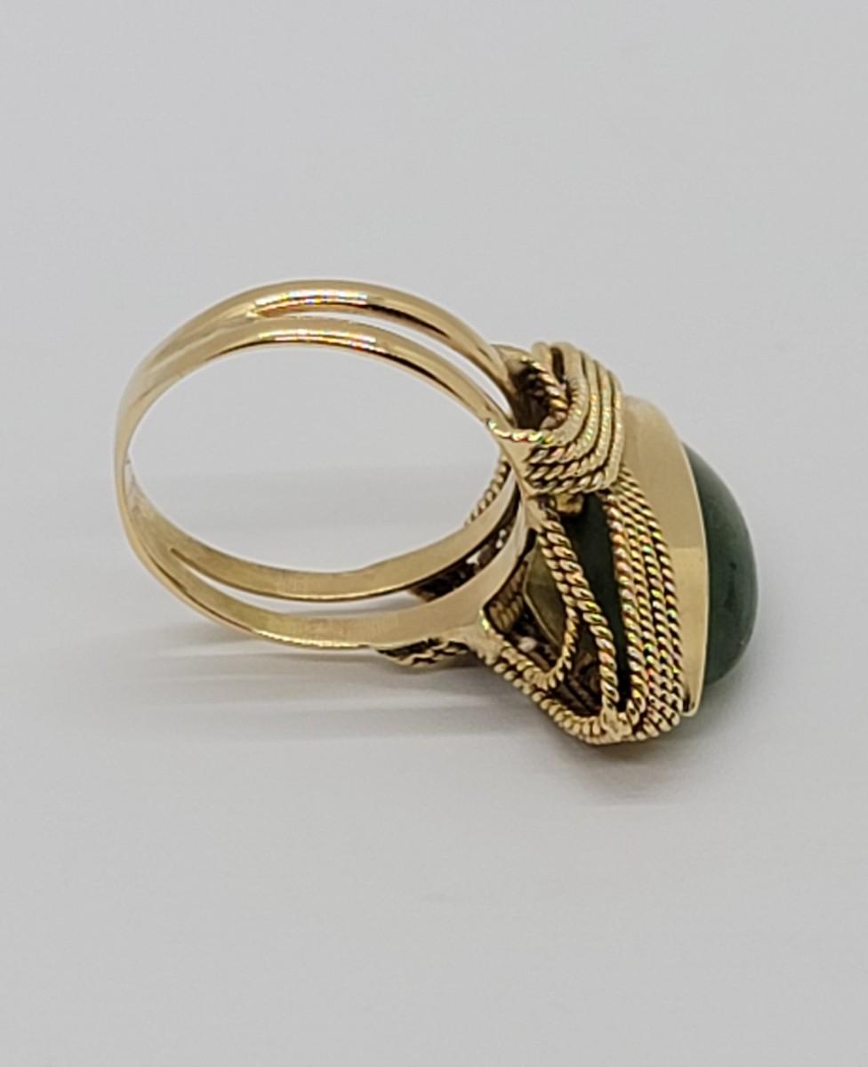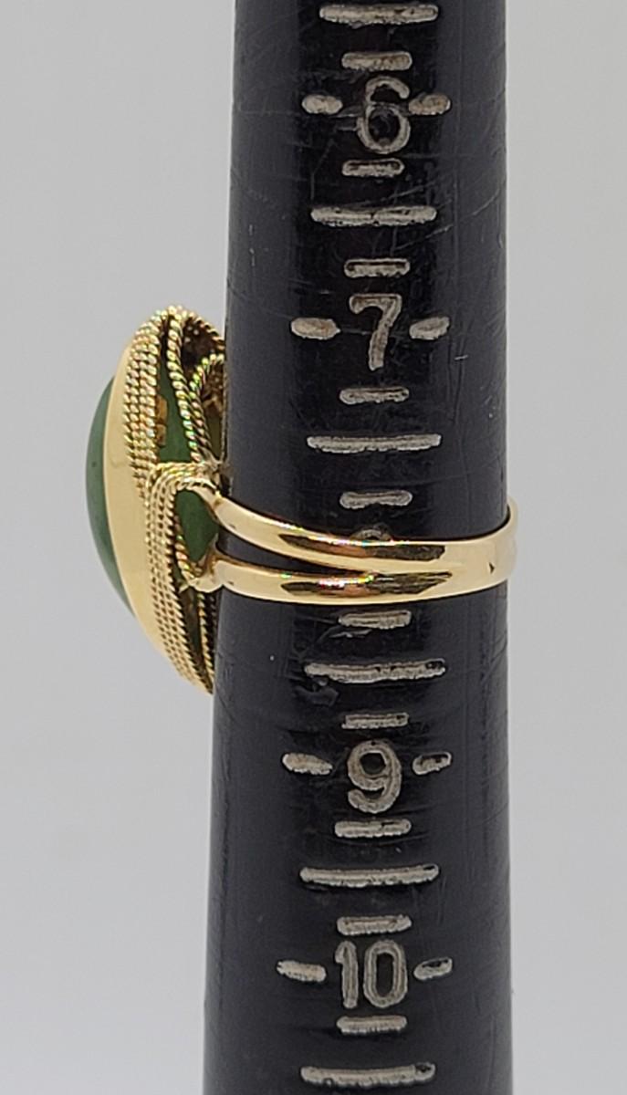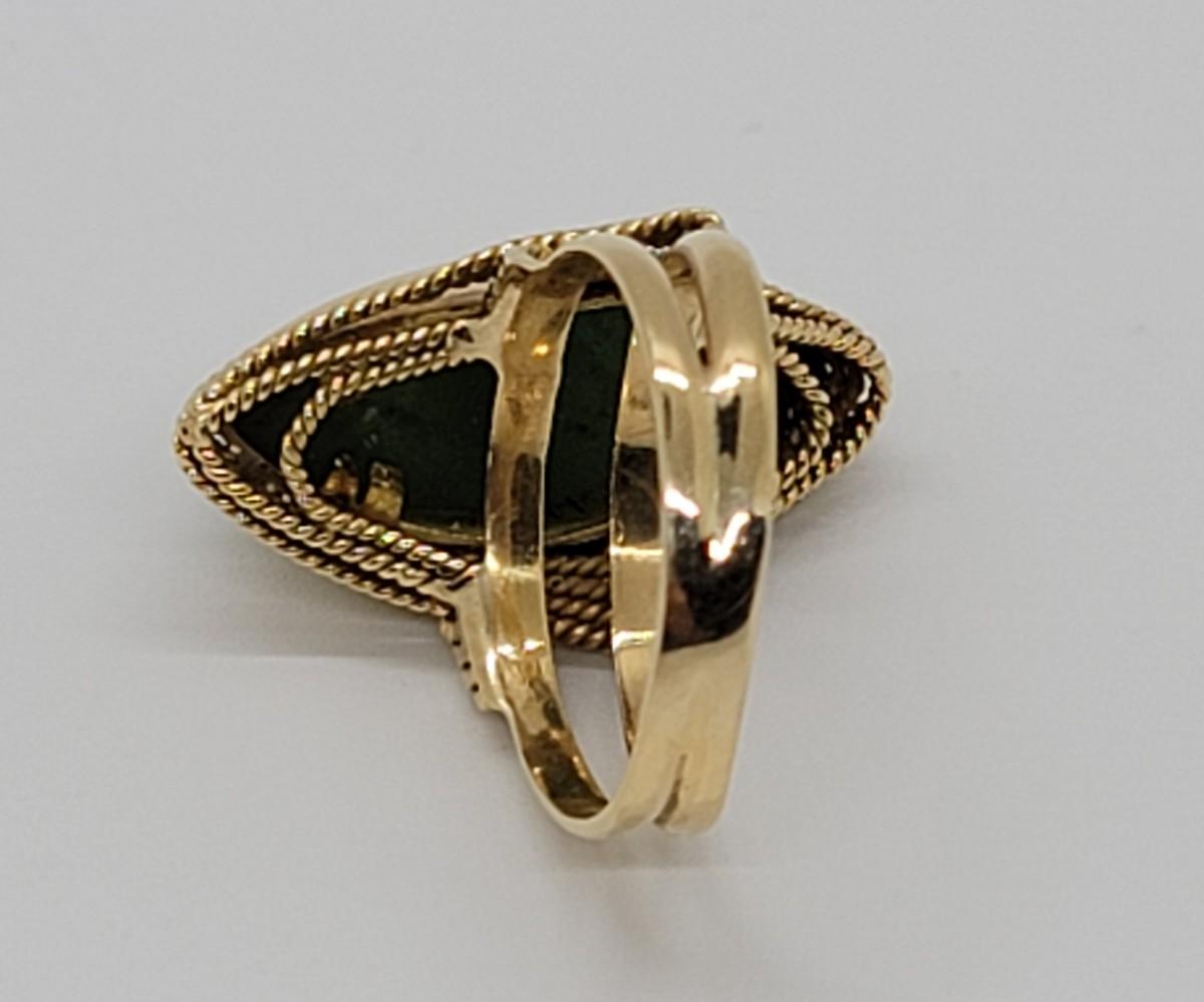 Lot J82: 14k yellow gold Marquis shaped Cabachon Green Jade Ring sz. 8