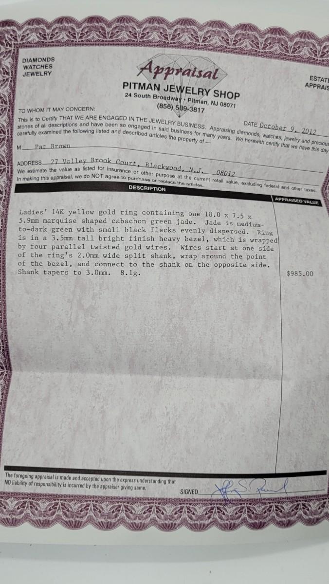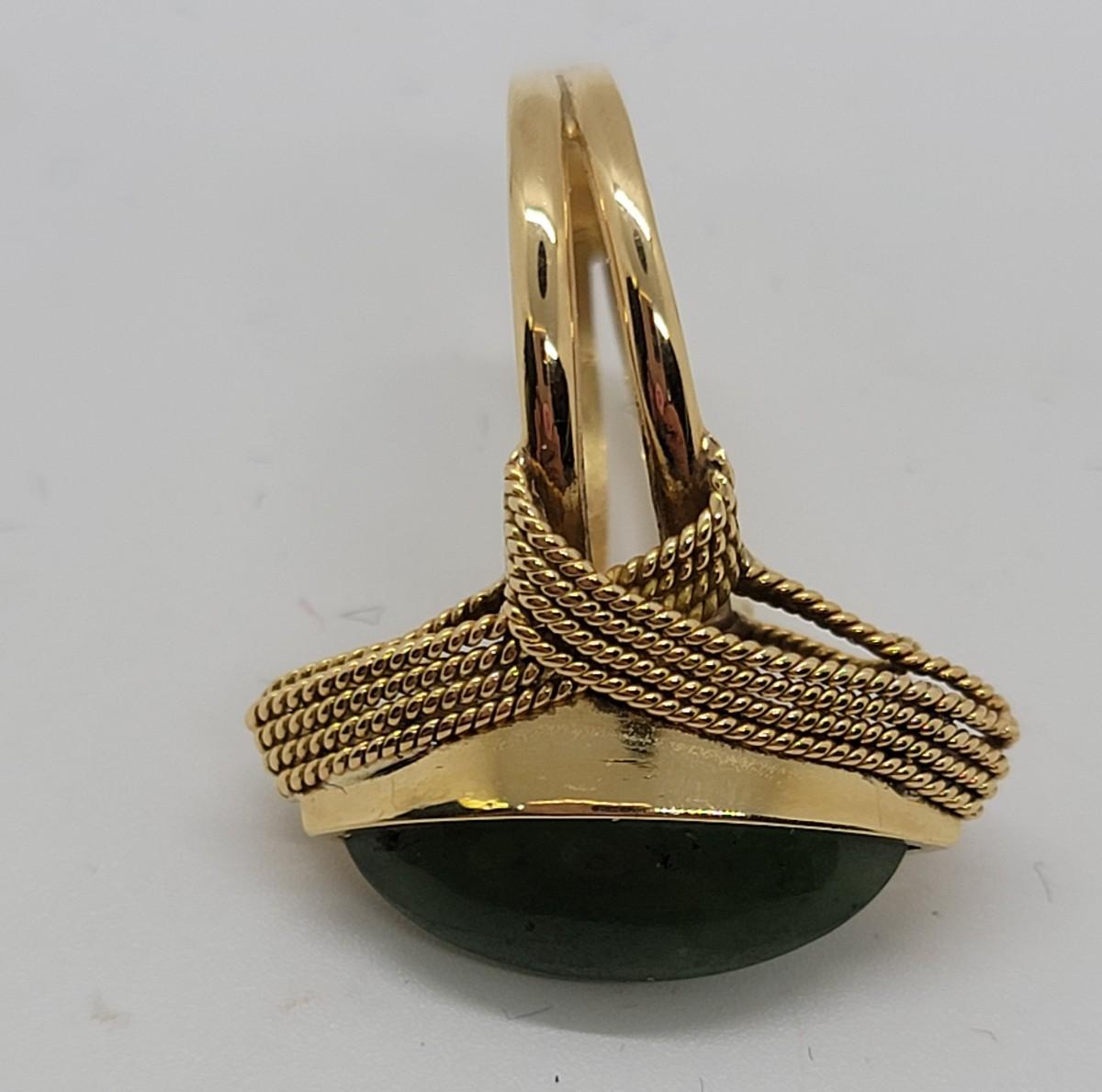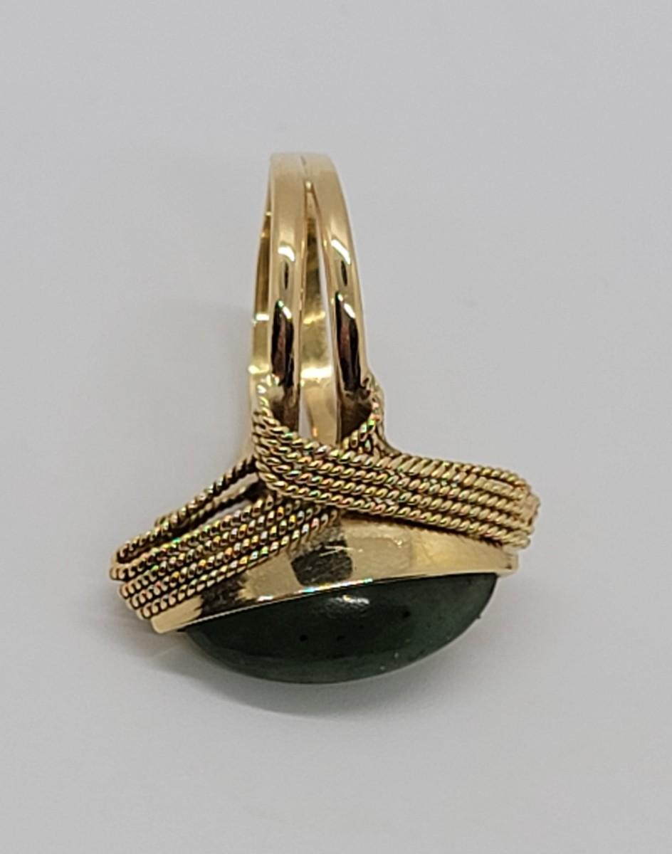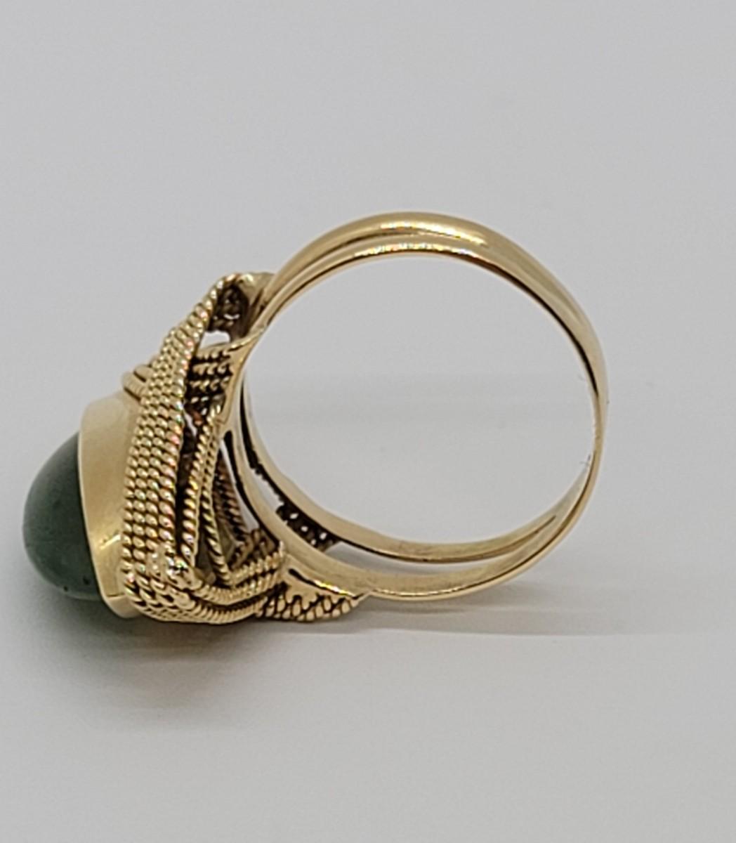 Lot J82: 14k yellow gold Marquis shaped Cabachon Green Jade Ring sz. 8