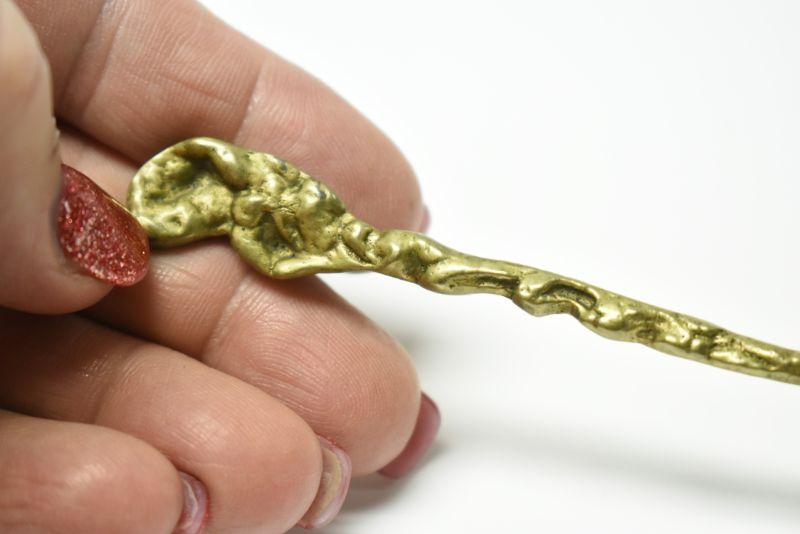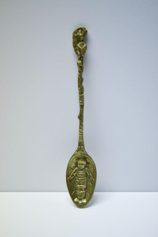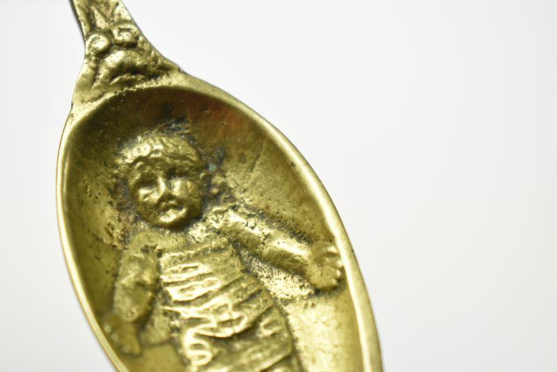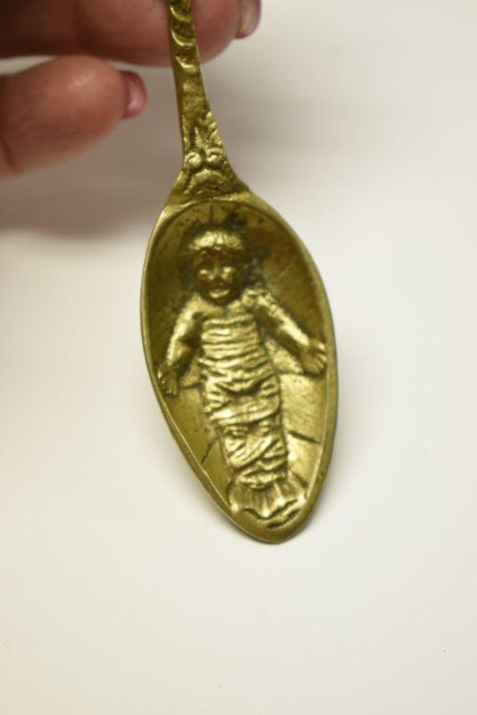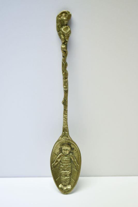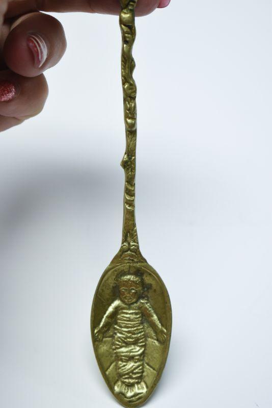 Lot J-9: Brass Spoon with Swaddled Baby (Jesus?)