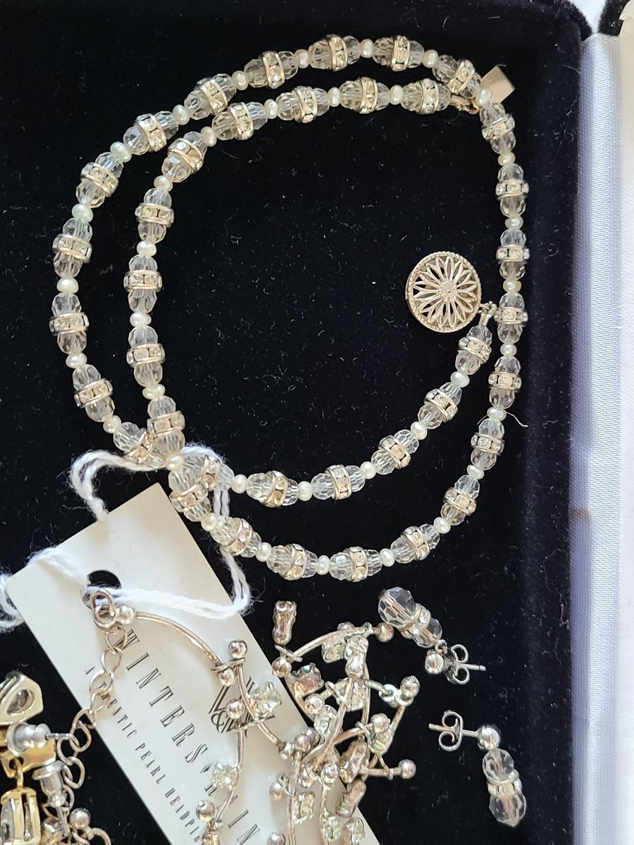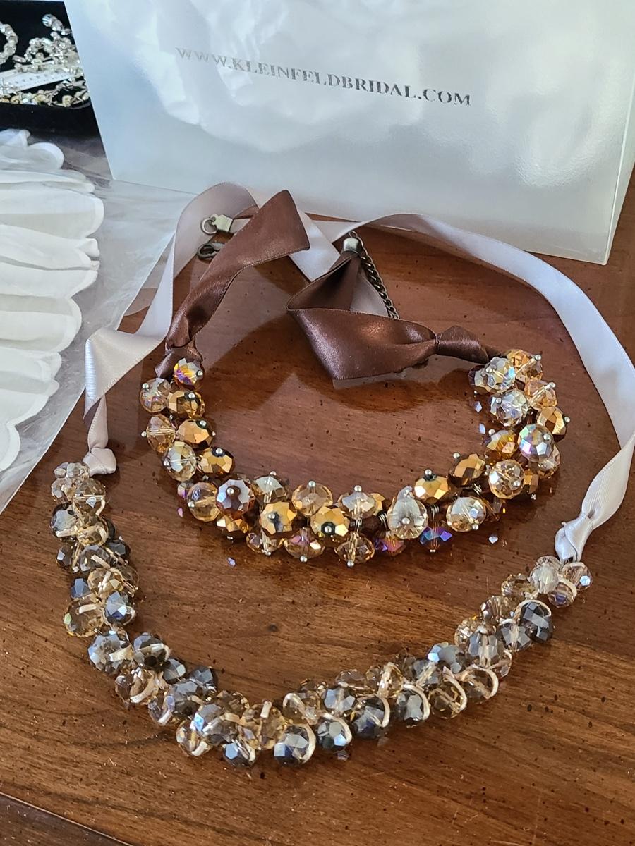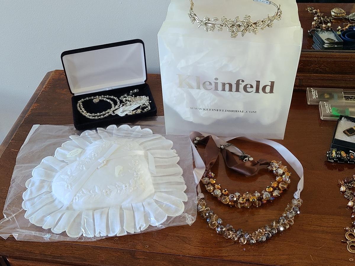 Lot J1U: Kleinfeld's Tiera, Bridal Pillow, Glass Beaded Necklaces and More