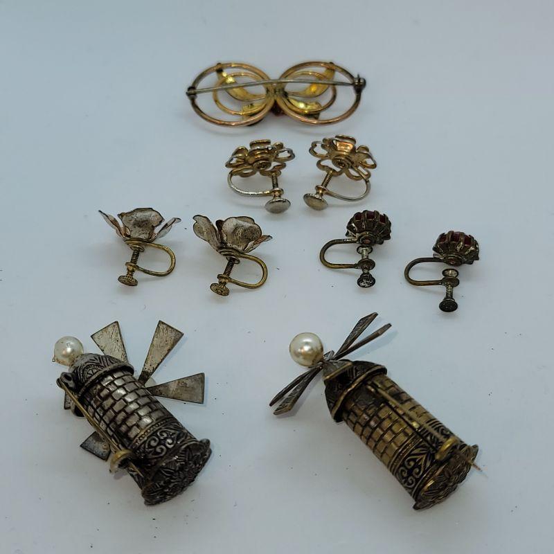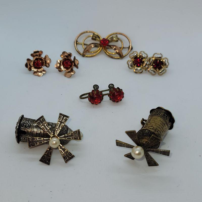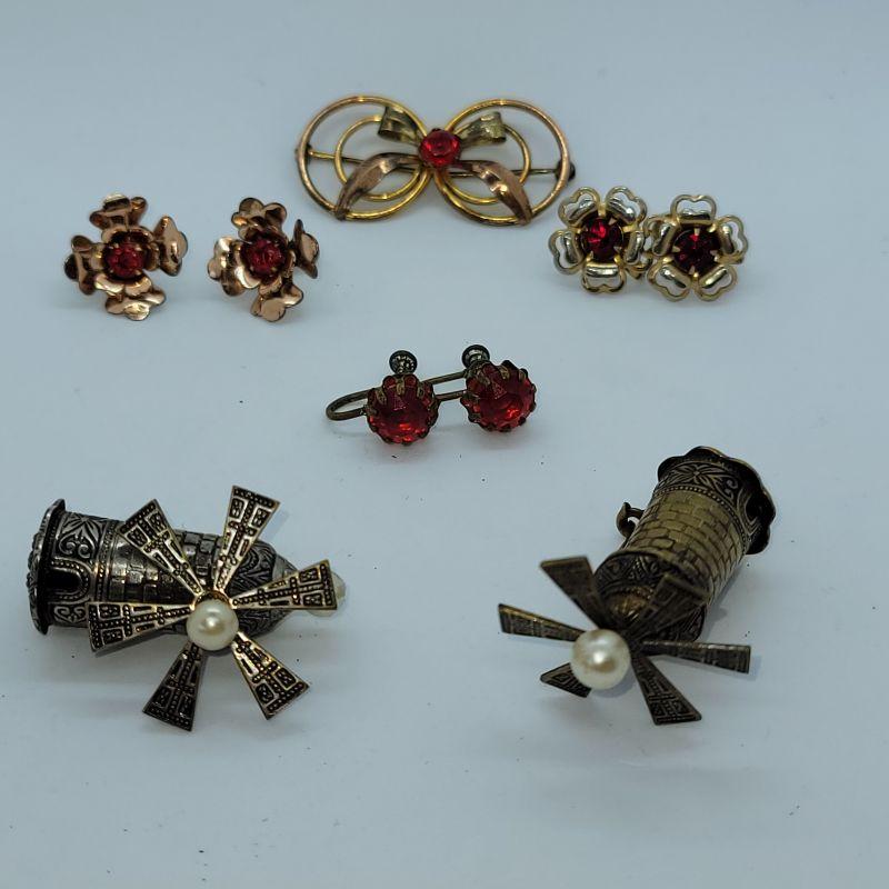Lot JMO1: 3 unique vintage brooches and 3 pair screwback earrings
