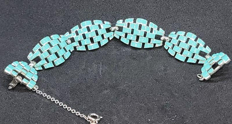 Lot JMO7: Vintage 7 " Coro Turquoise and silvertone bracelet with saftey clasp