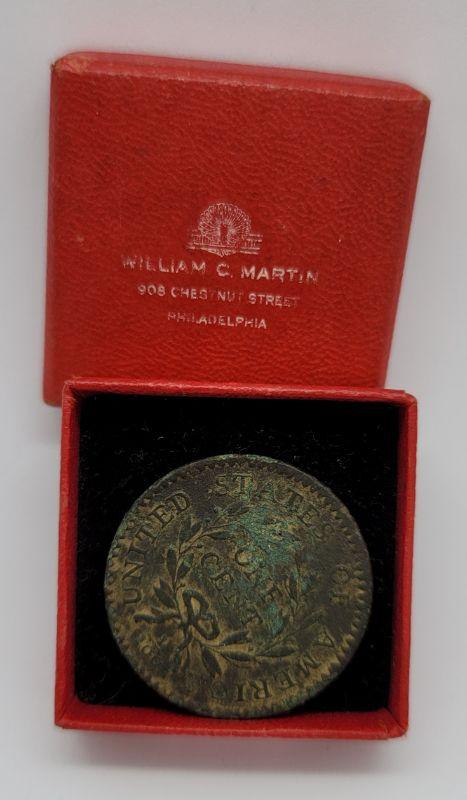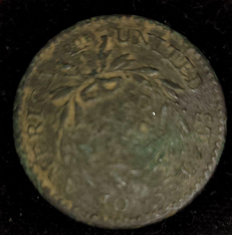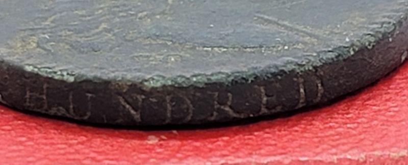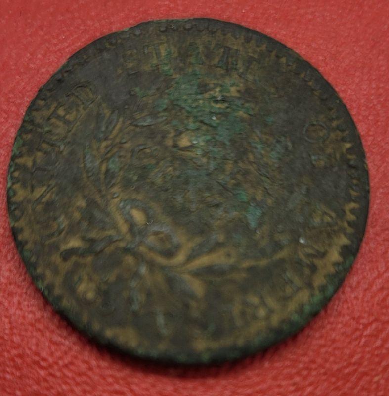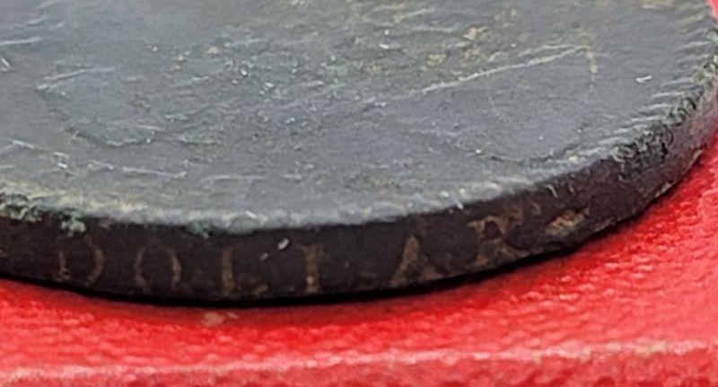 I DID NOT ATTEMPT TO CLEAN IT, THERE IS SOME VERDI GRIS ON BACK OF COIN PUTTING IT UP FOR AUCTION JUST AS IT WAS FOUND IN THE ESTATE .