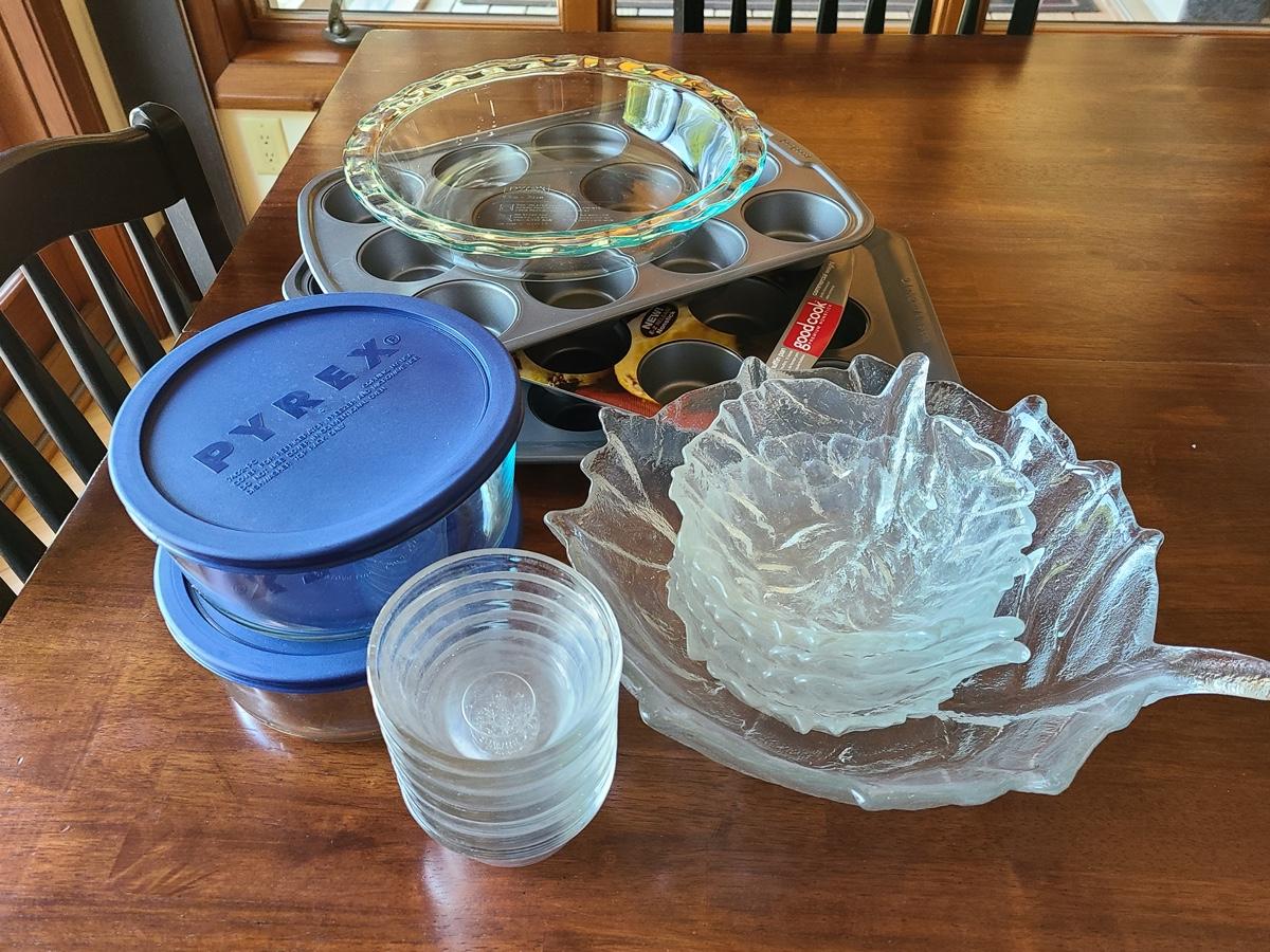 Lot K1: Pyrex Storage Bowls, Muffin Pans, Pie Plate and More