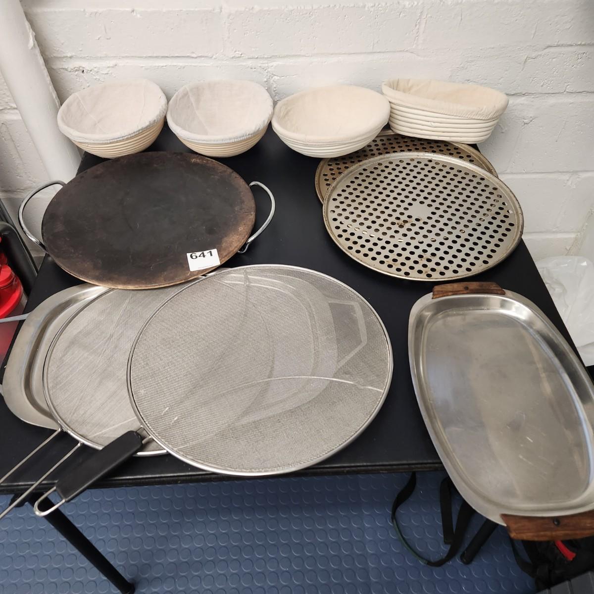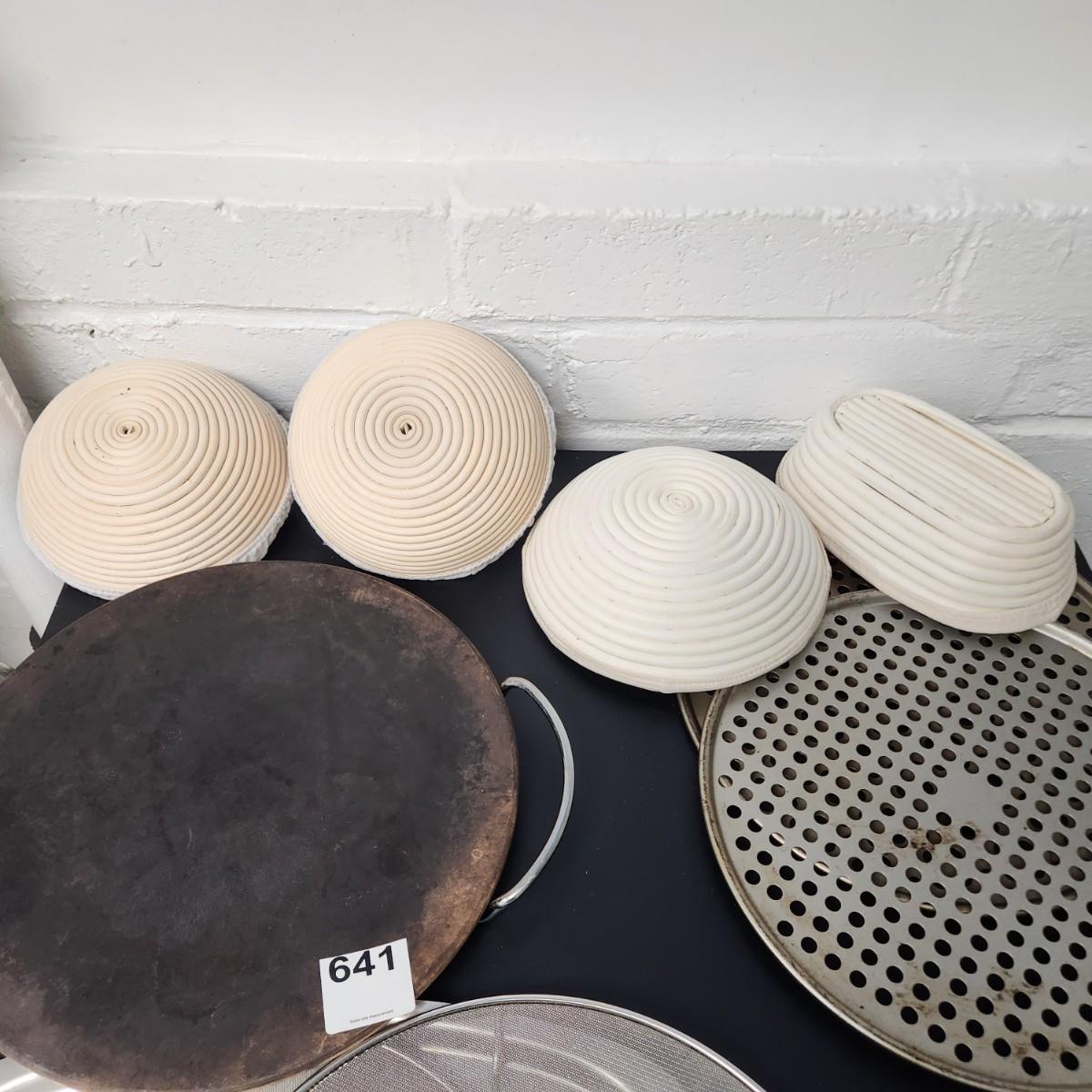Lot Kitchen Items Hoffritz 15“ Pizza Baking Stone ,4 Bread Rolls baskets and More See Pics