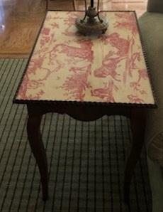 Lot L11: Red and Yellow Faux Toile Top Endtable
