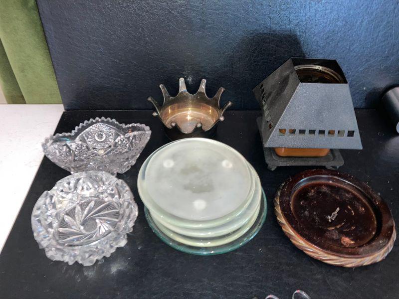 Lot L17: Misc. Home Decor/ Candle Holders/plates incl. silverplated Maitland-Smith piece.