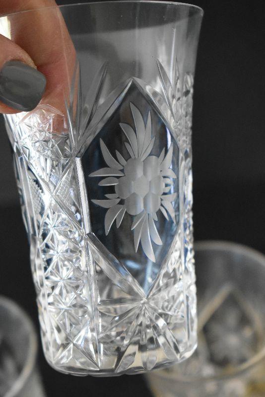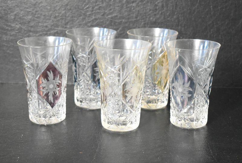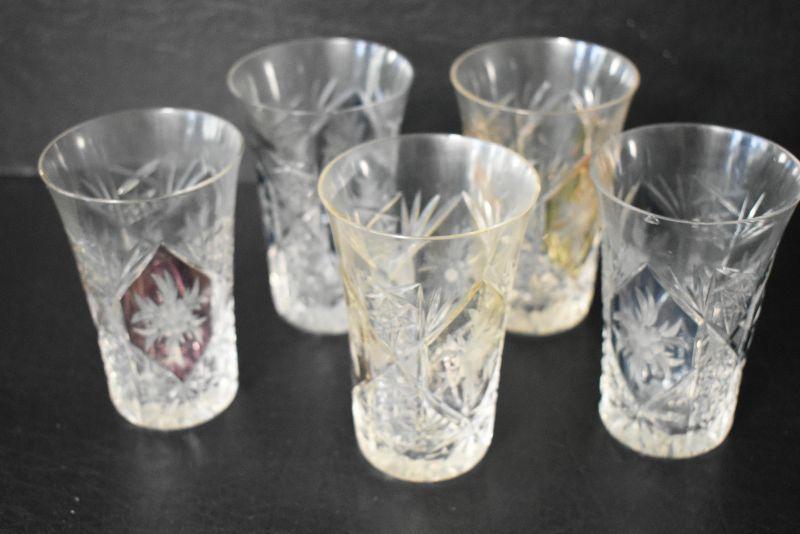 Set of 5 Vintage Cut Glass Beverage Glasses