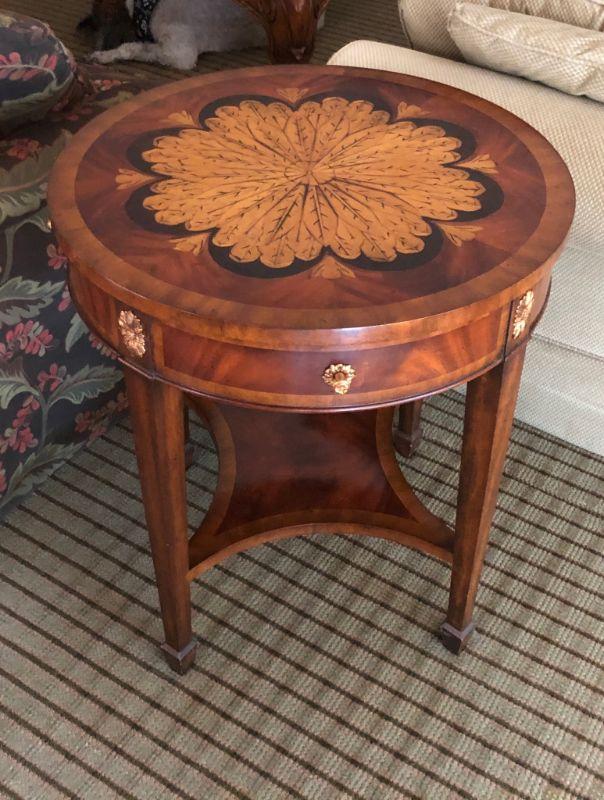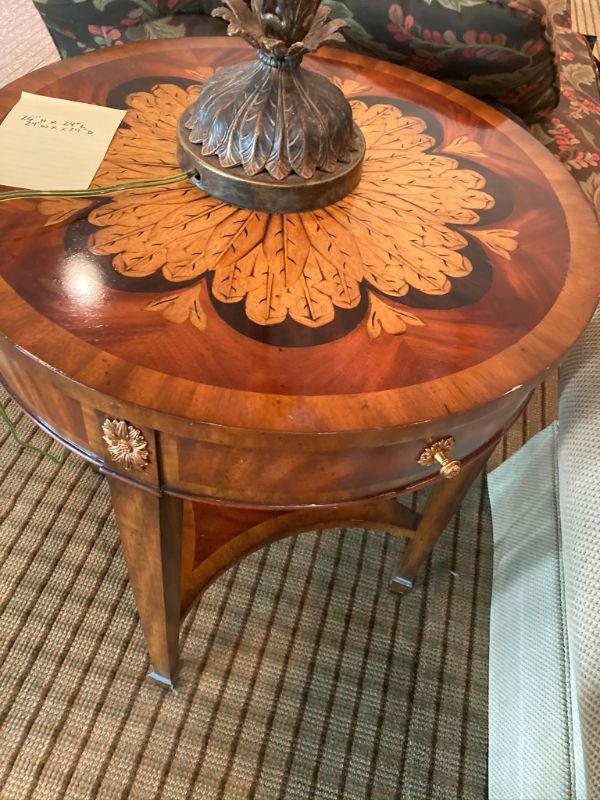 You are bidding on the beautiful table pictured. See photos for condition and sizing. Measures 24" diameter, 26" High. Good luck and happy bidding!