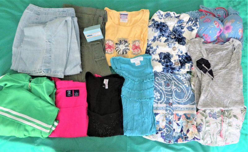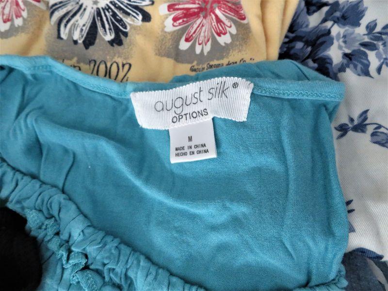misc LOT Ladies TOPS size MEDIUM Clothing (12) with August Silk, Ann Taylor Loft, Poof, pair of Vintage Bill Blass Capris misc Lot of (12)
