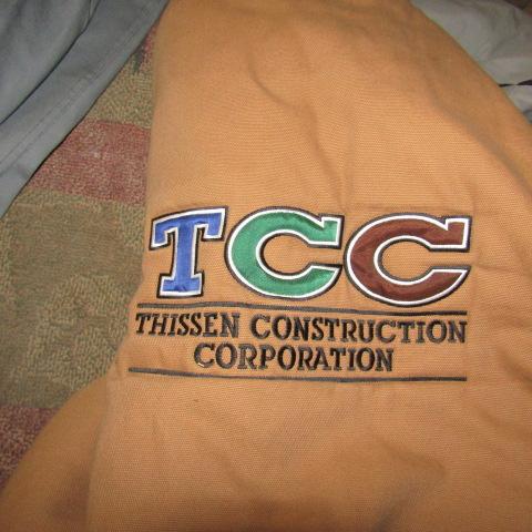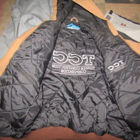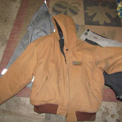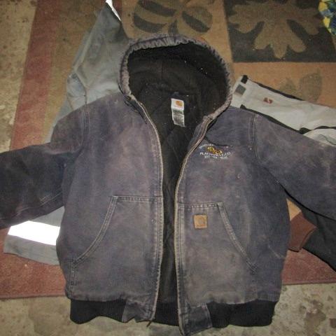 HOODED CARHART AND ANOTHER SIMILAR TO CARHART MEN'S COATS (THEY HAVE ADVERTISING AND NEED TO BE CLEANED)