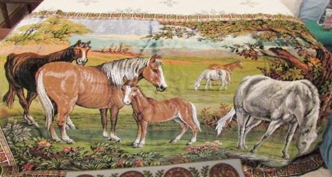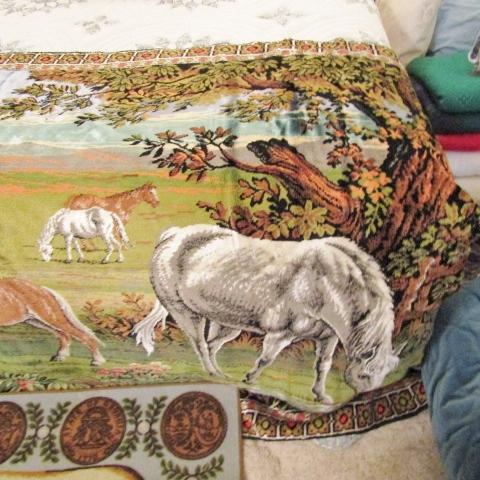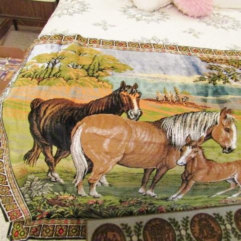 THE TAPESTRY IS LAYING ON A QUEEN SIZE BED (TO GIVE YOU AN IDEA OF ITS SIZE) VG COND