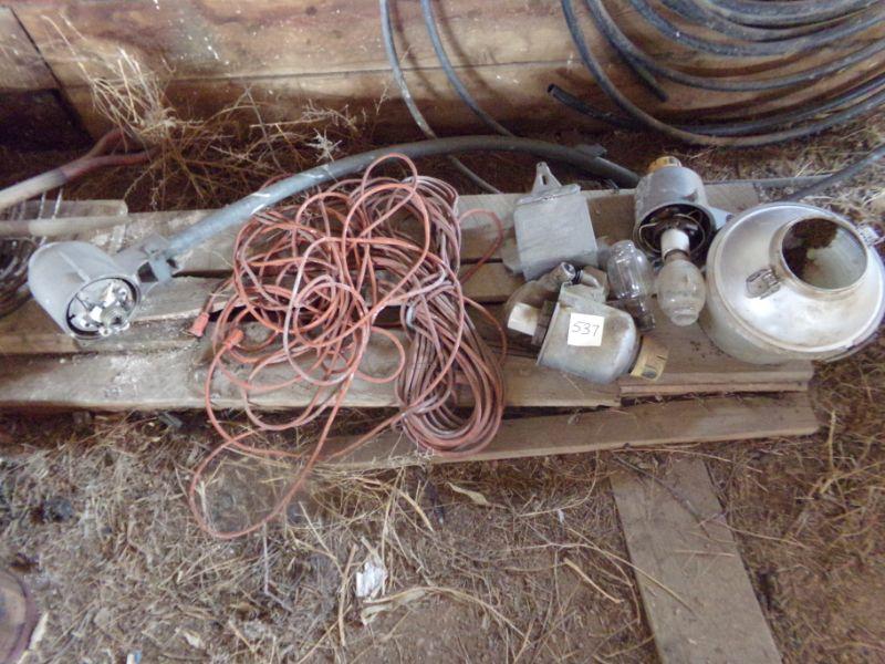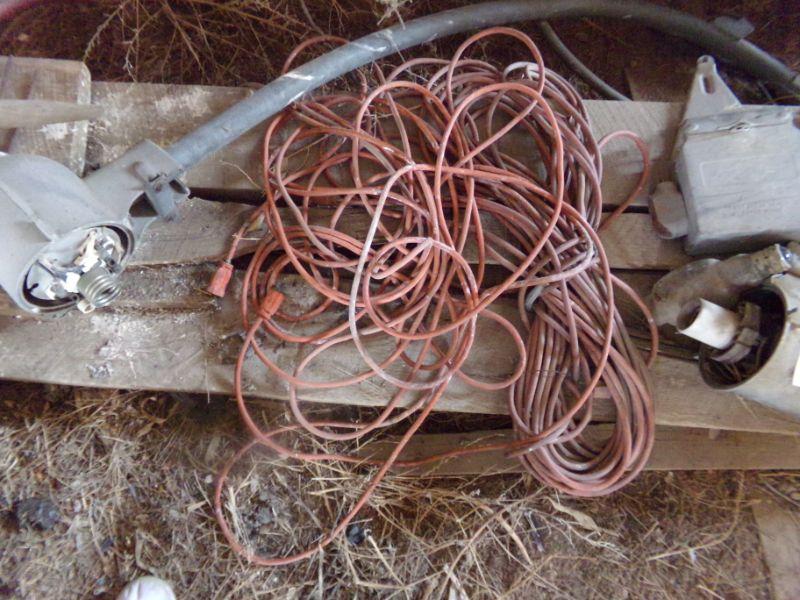 SEVERAL LIGHT POLE FIXTURES AND EXTENSION CORD.