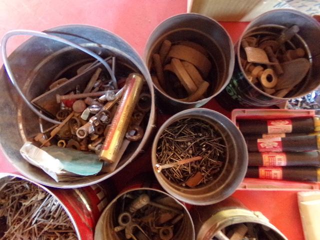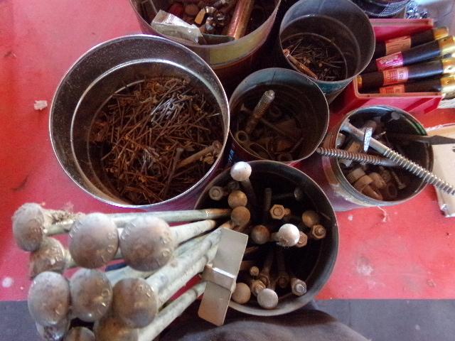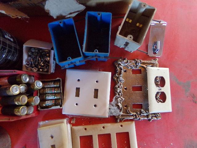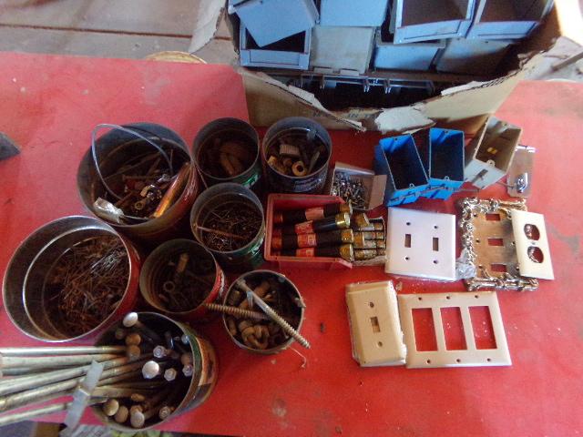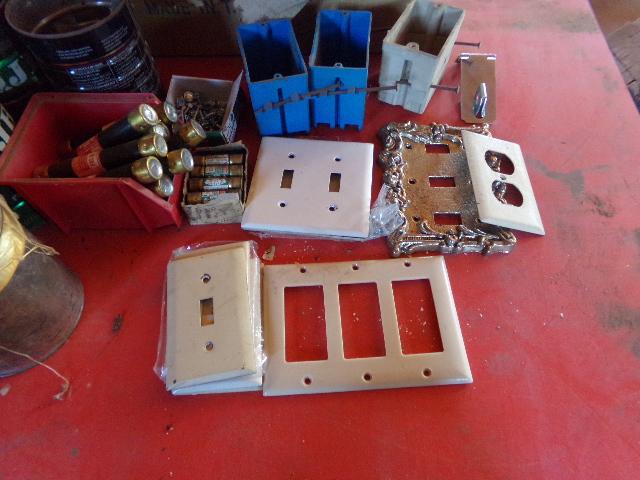 LIGHT SWITCH BOXES & COVERS, BOXES TO PUT HARDWARE IN, LONG BOLTS AND NAILS.