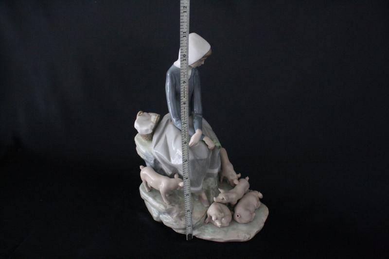 Lladro #4572 Girl with Piglets Porcelain Figurine- Rare retired Lladro figurine of a girl sitting surrounded by piglets. Height is about 12" inches. Bears signature Lladro blue tulip stamp and marked C-16-O on the bottom. In excellent condition no chips or cracks.